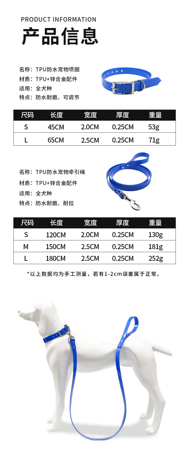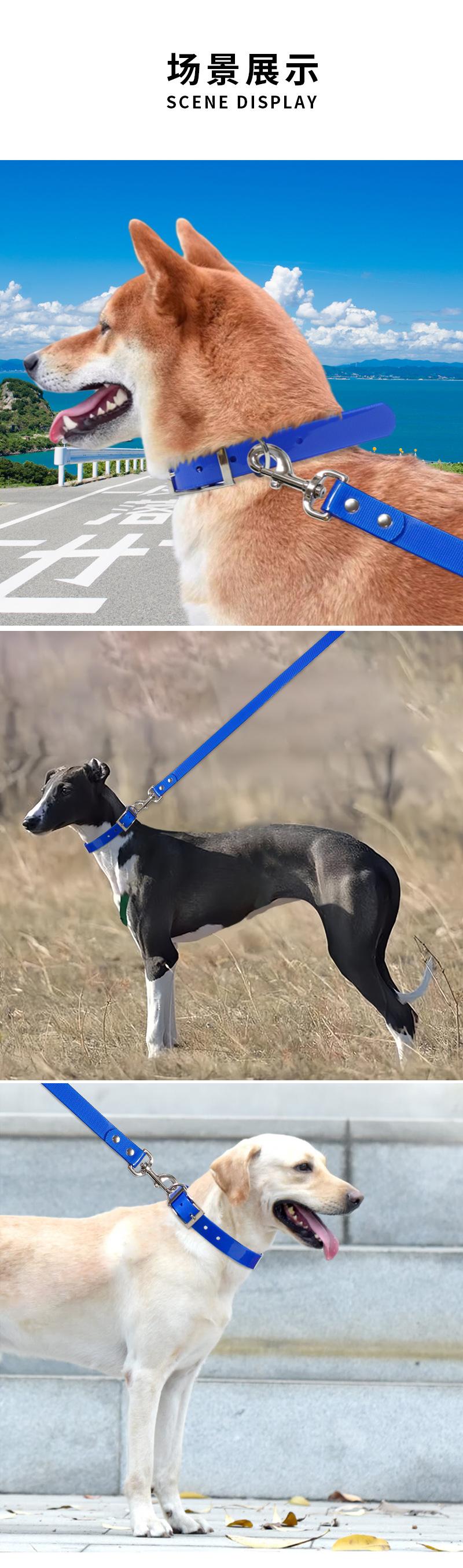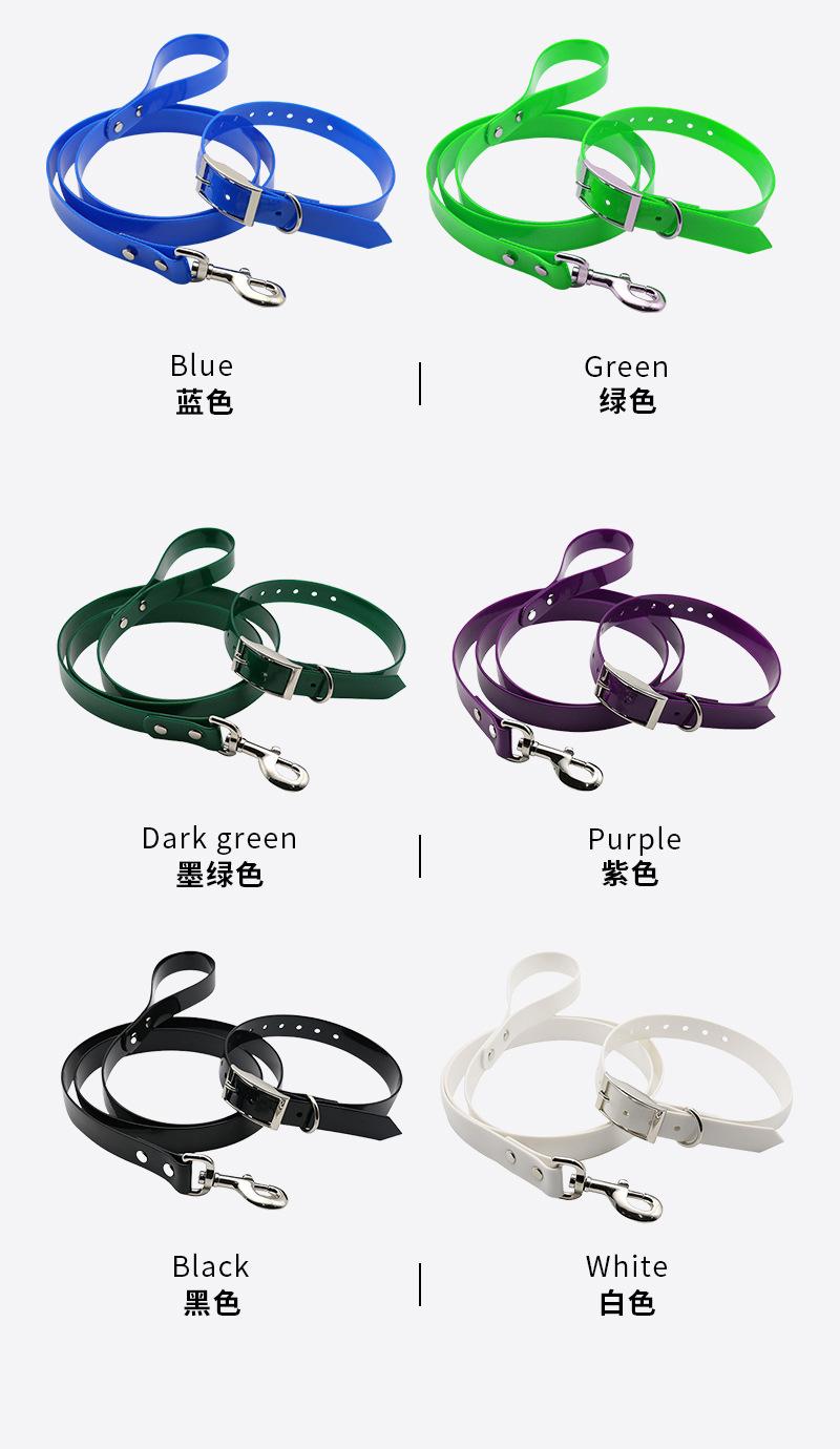 Características: Esta correa y collar son impermeables y fáciles de limpiar. Cuando están sucios, se pueden lavar directamente con agua limpia para que parezcan nuevos. La resistencia a la tracción es mayor que la de las correas de nailon ordinarias. Adopta un diseño sencillo y moderno de color sólido.