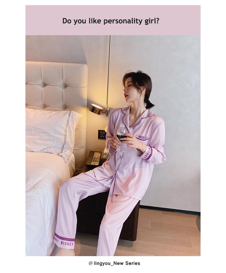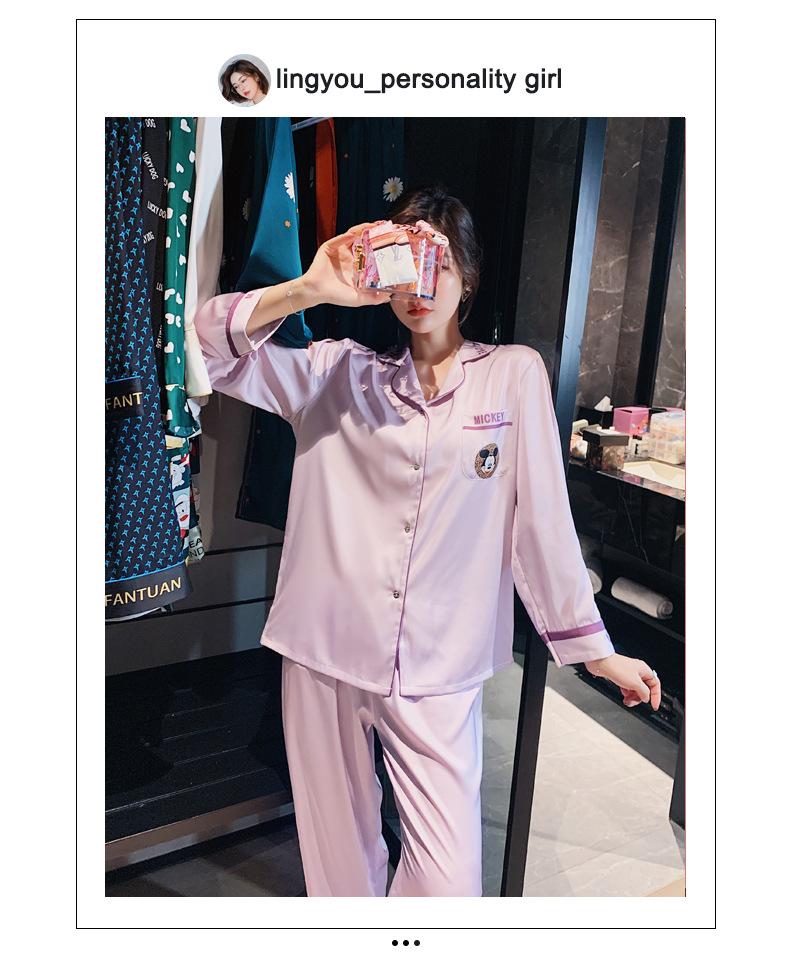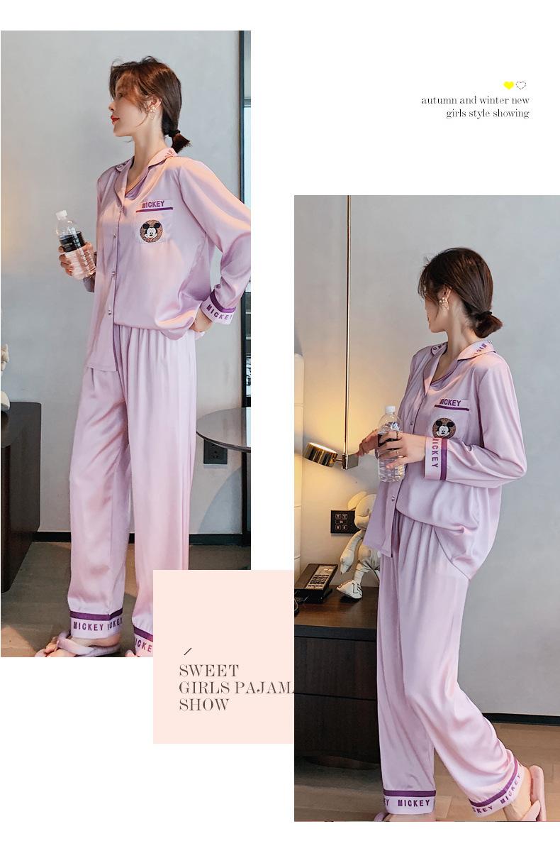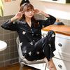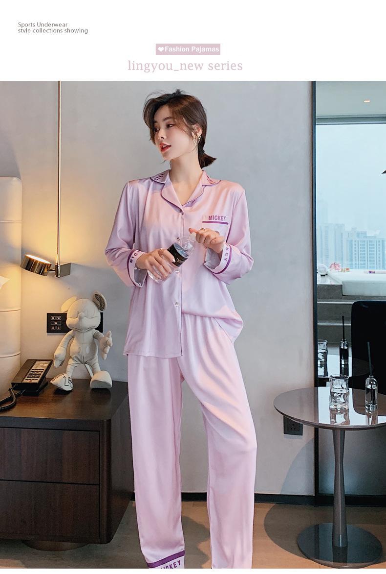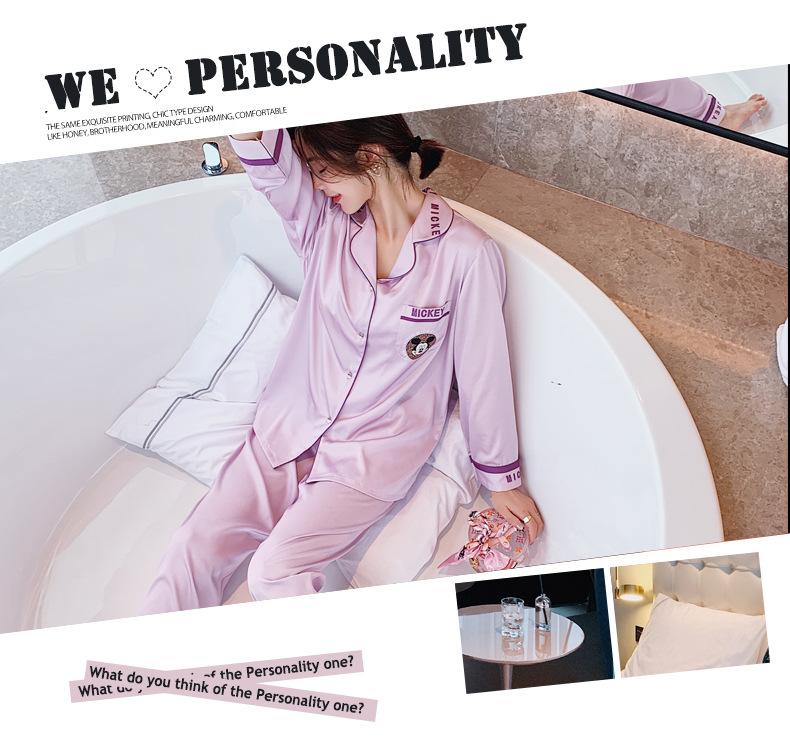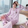 Pijamas de otoño para mujer, pantalones de manga larga, estilo coreano, conjunto de pijamas de seda helada con dibujos animados, ropa de casa de seda helada fina para el cabello