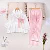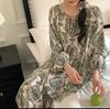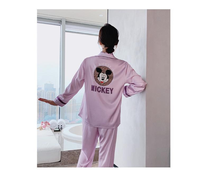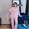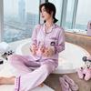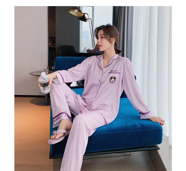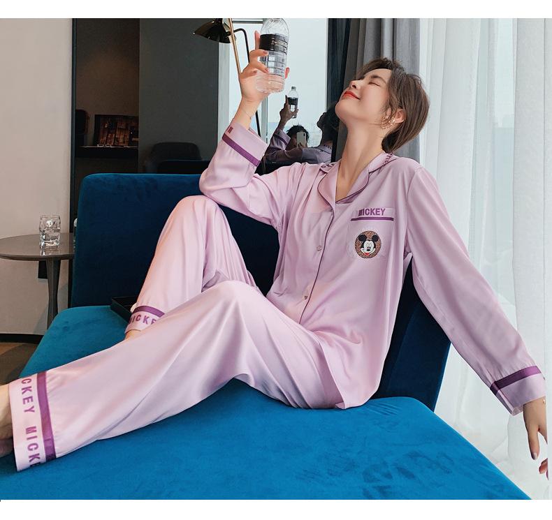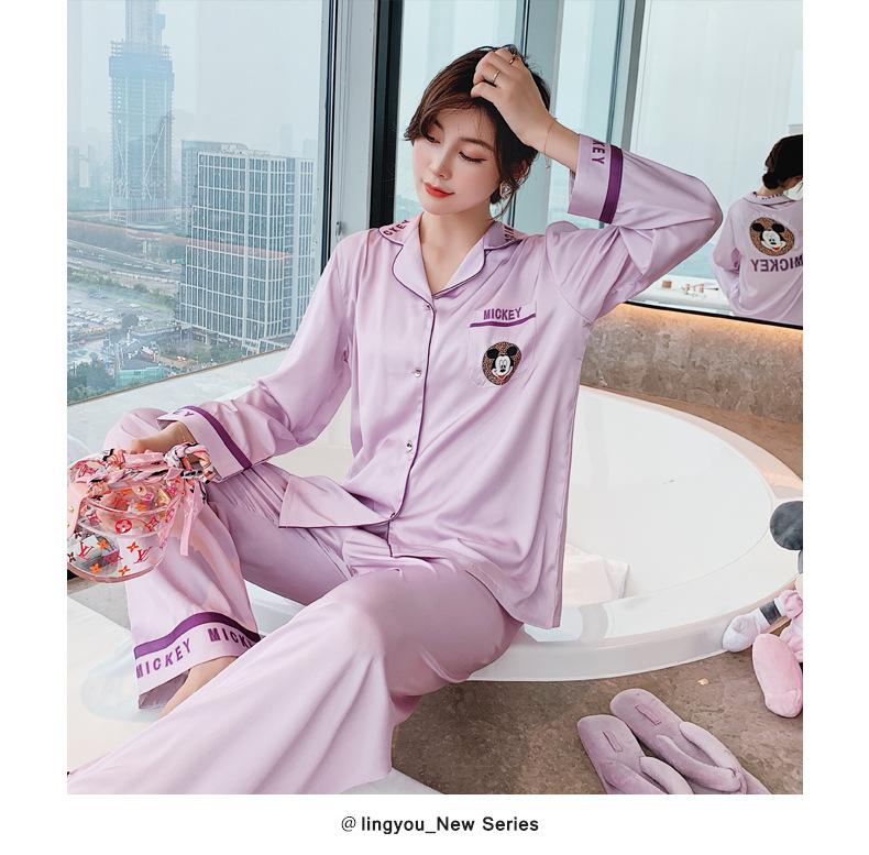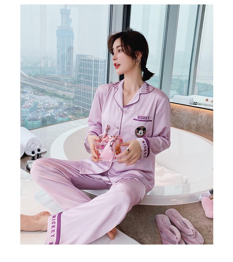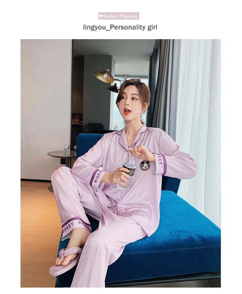 Pijamas de otoño para mujer, pantalones de manga larga, estilo coreano, conjunto de pijamas de seda helada con dibujos animados, ropa de casa de seda helada fina para el cabello