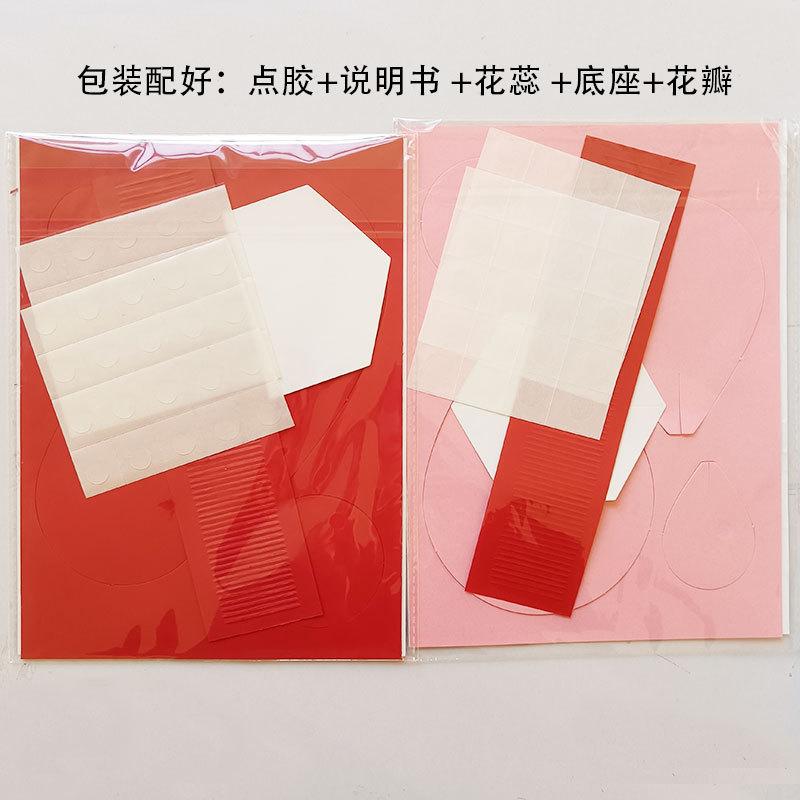 Las flores tridimensionales son todos paquetes de materiales semiacabados. Necesitas hacerlo tú mismo. Los pétalos se pegan a la base en orden, desde los pétalos grandes hasta los pétalos pequeños.