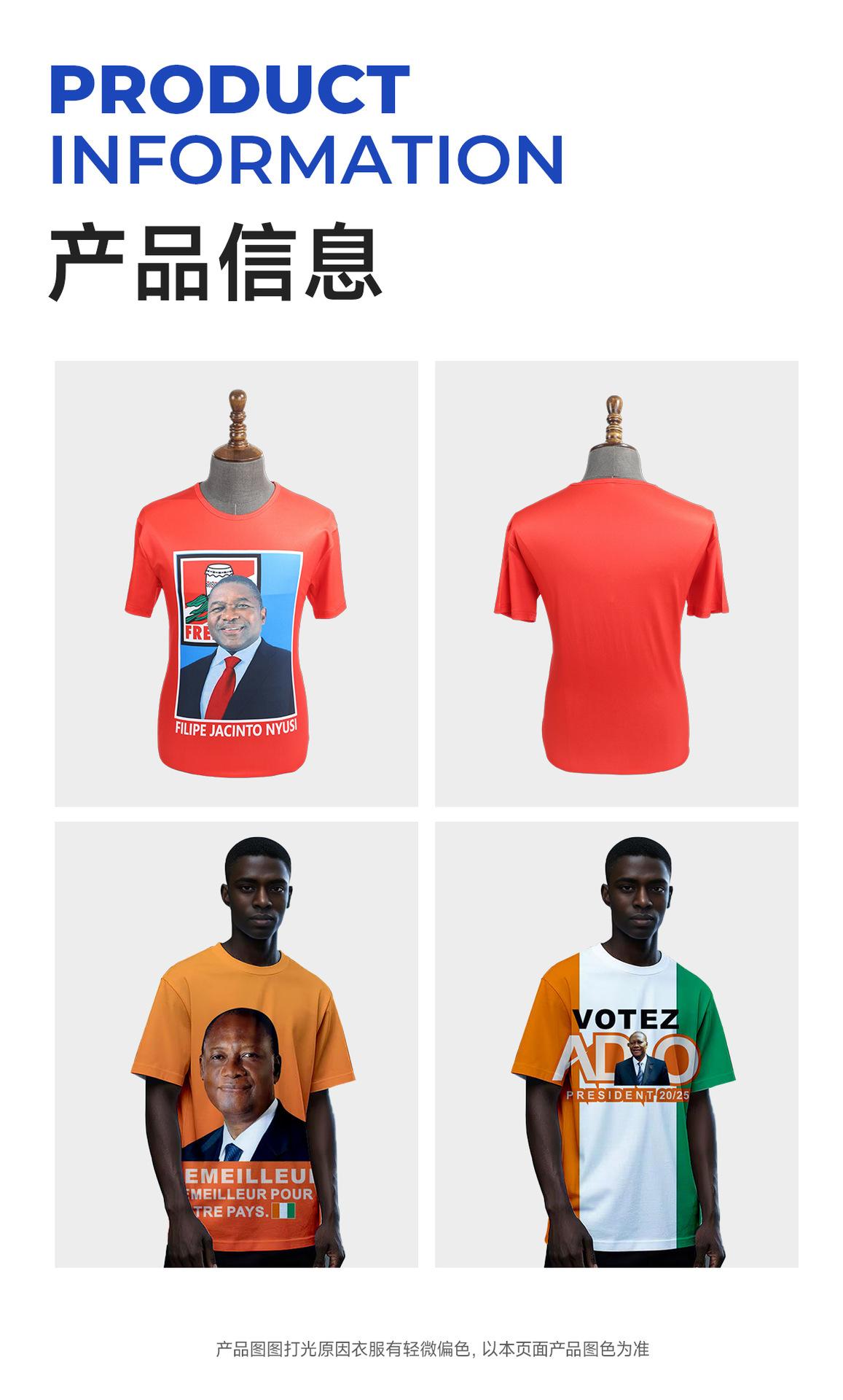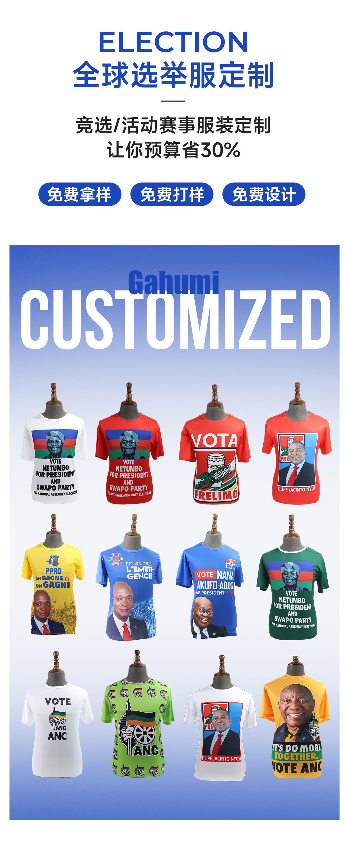 Camiseta de elección presidencial de comercio exterior, camiseta cultural de cuello redondo, camiseta publicitaria, personalizada, de poliéster, seda, desechable, de manga corta