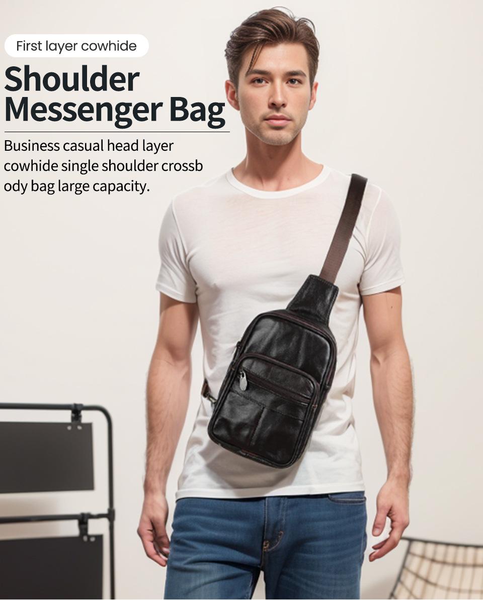 Bolso de hombro de cuero para hombre, nuevo, transfronterizo, bolso de mensajero multifuncional de gran capacidad, bolso de mano retro de piel de vaca para hombre
