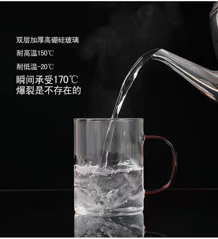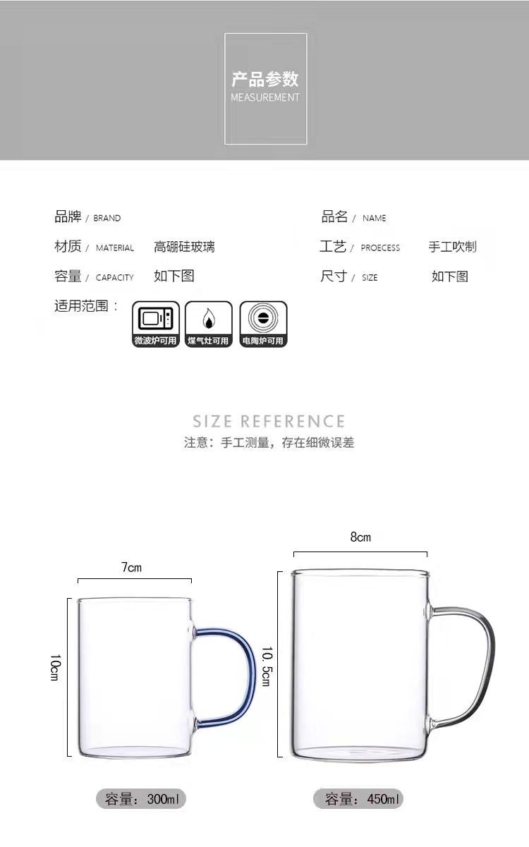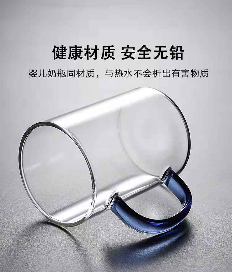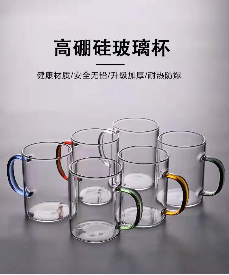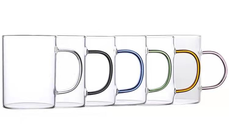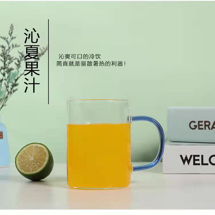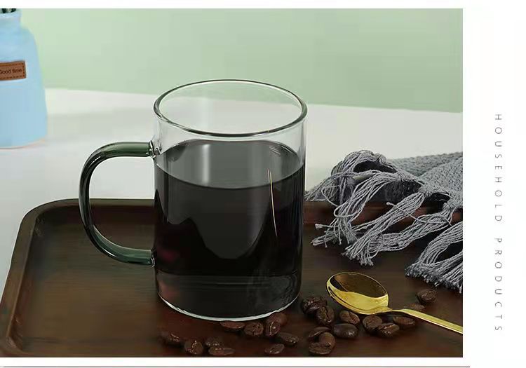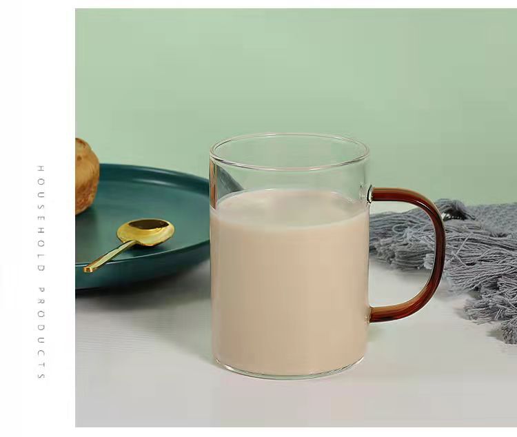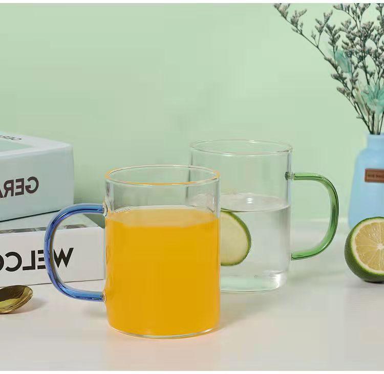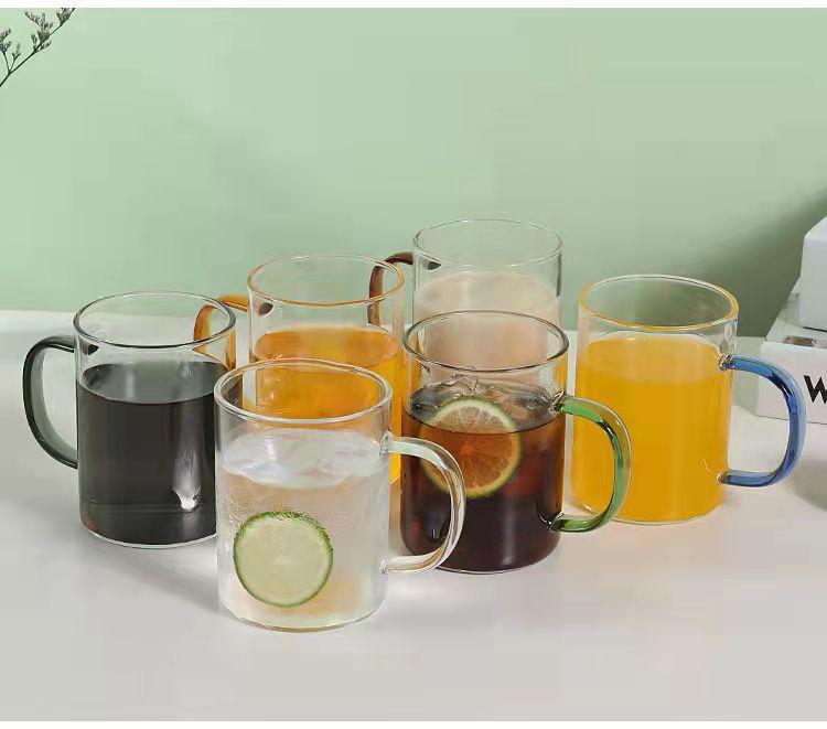 Suministro de fábrica Taza de té de vidrio para el hogar Mango resistente al calor Taza de vidrio transparente para beber Taza de café con leche
