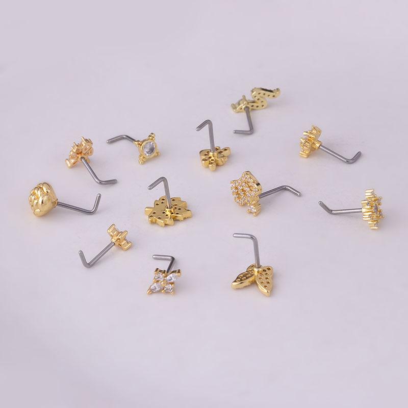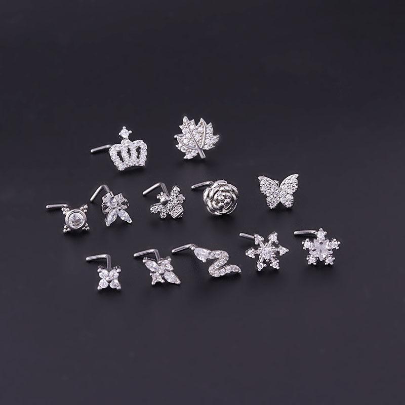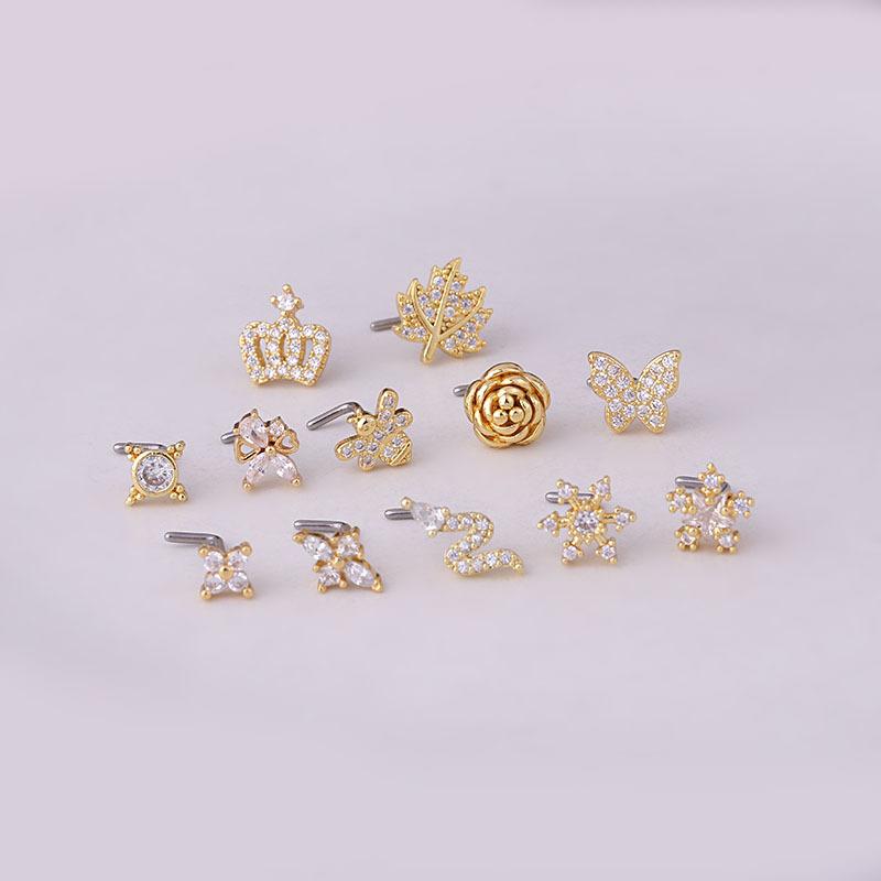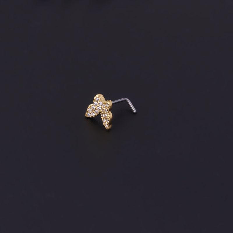 nombre del producto | Perno nasal de acero titanio 20G con varilla roscada, microincrustado de circonita, corona de mariposa, moda nueva popular, comercio exterior europeo y americano, adornos para piercing nasal |