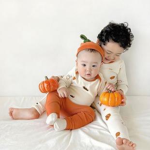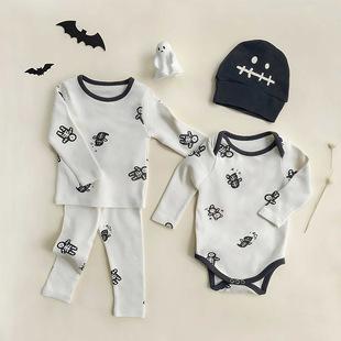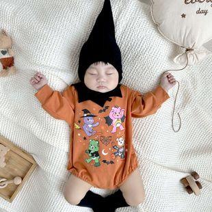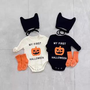 Conjunto de Mameluco para Bebé Estilo Coreano de Otoño 25 ins Estampado de Calabaza Mameluco para Bebé Tema de Halloween Body