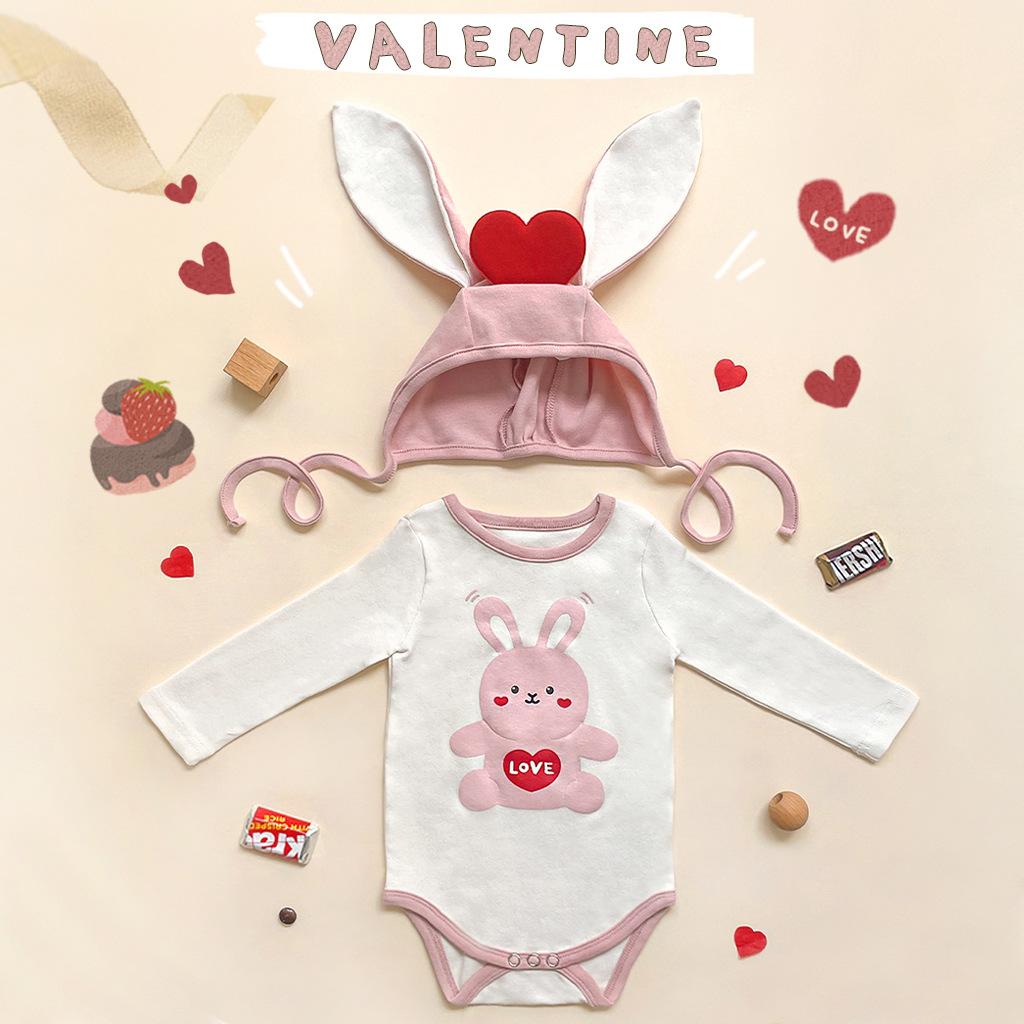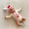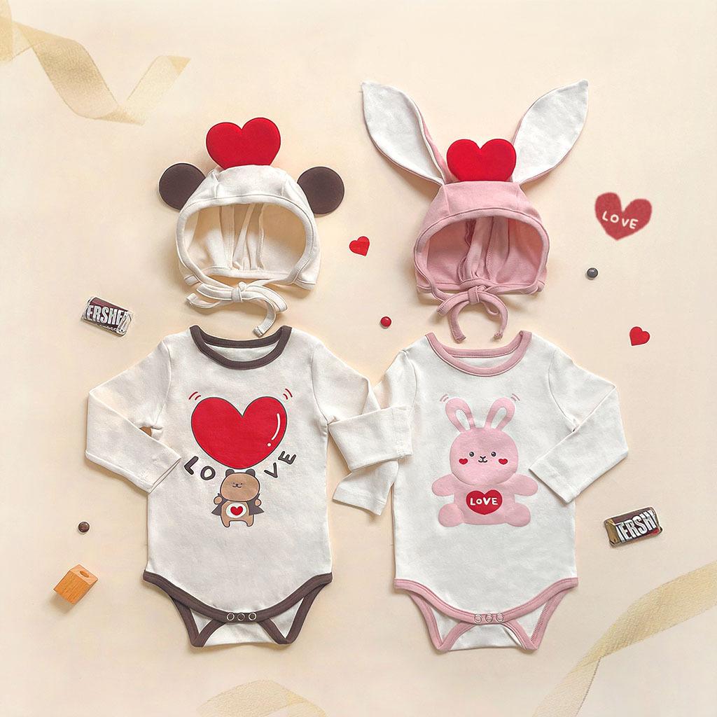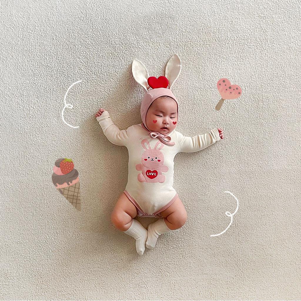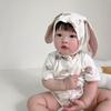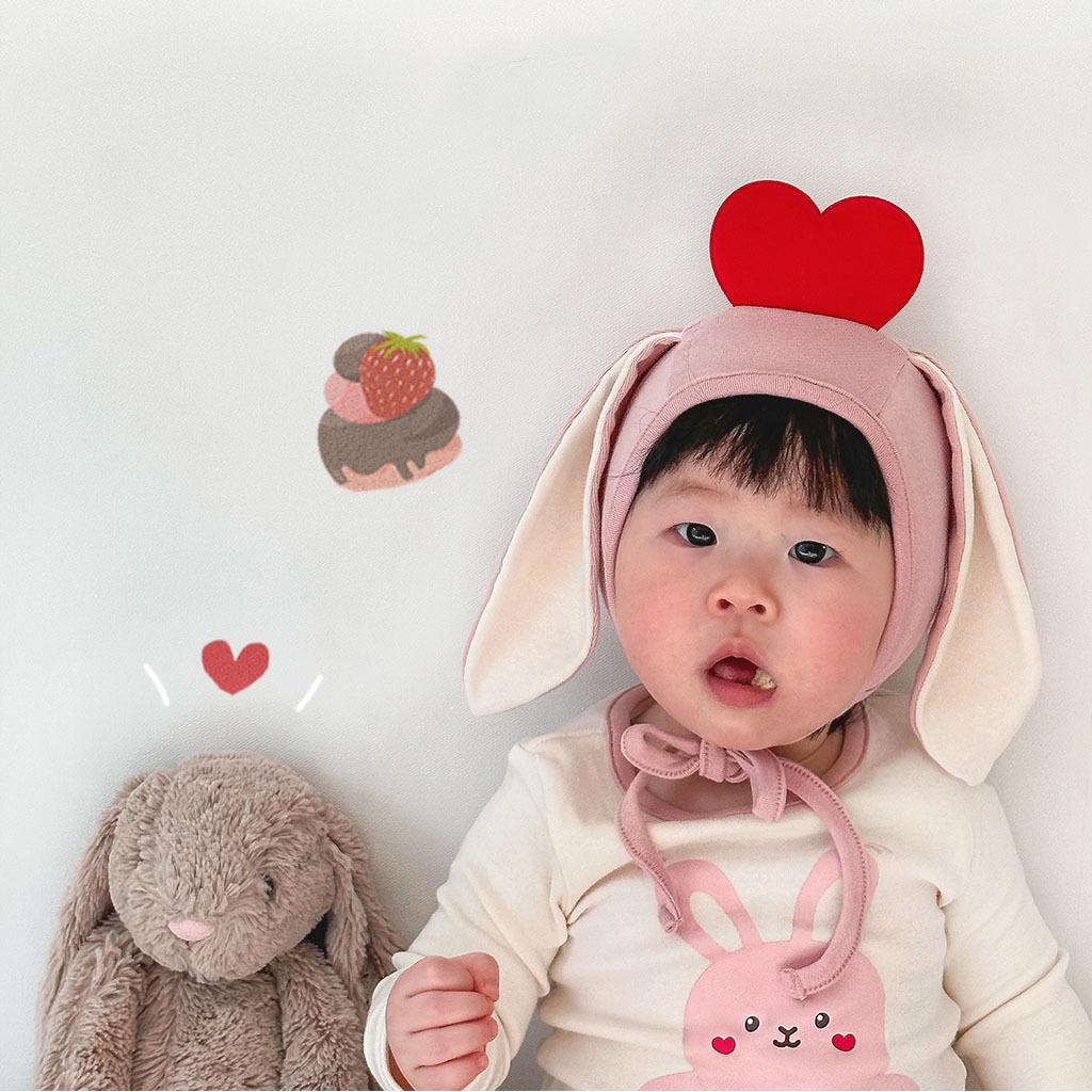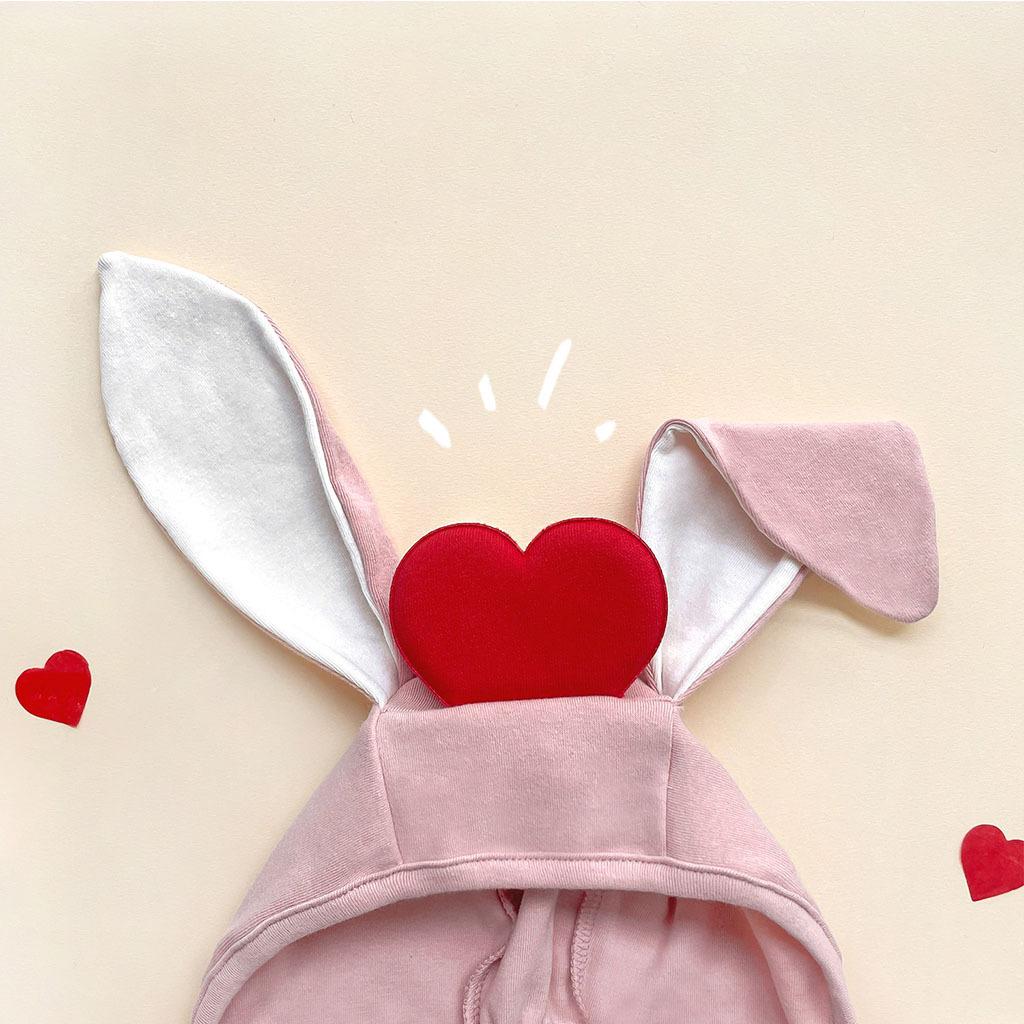 Mono para Niños Estilo Coreano Nuevo de Primavera 2025 Traje con Capucha Estilo Ins Estampado de Corazón y Conejito Ropa de Pedos de Bolsa