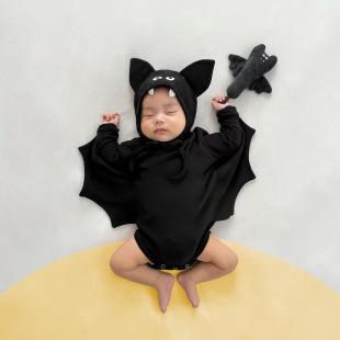 mameluco de bebé de Halloween estilo ins primavera 2025 mameluco de bebé para exterior diseño de murciélago conjunto de mameluco