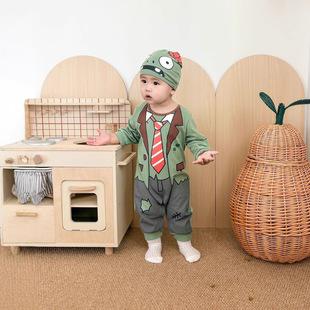 Conjunto de Mameluco de Manga Larga Estilo Coreano de Otoño Ropa ins Halloween Disfraz de Pequeño Zombie Mameluco Body para Bebé con Capucha