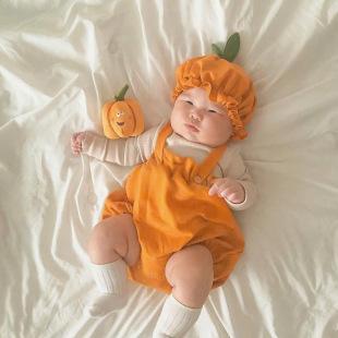 25 Otoño Estilo Coreano Overol Infantil ins Forma de Calabaza de Halloween Set de Mameluco para Bebé Salida Festiva Onesie