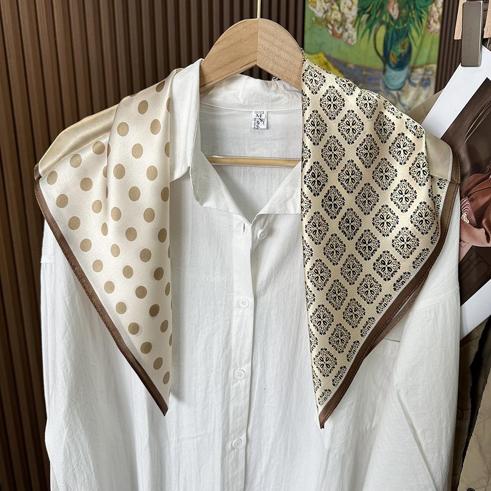 Bufanda de seda 100% con estampado de moda de cuatro cuadrados para mujer, alta gama, primavera, nueva, blanca, 70 cm, bufanda cuadrada, venta al por mayor