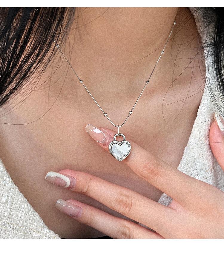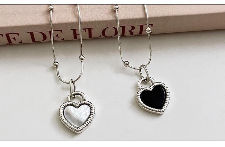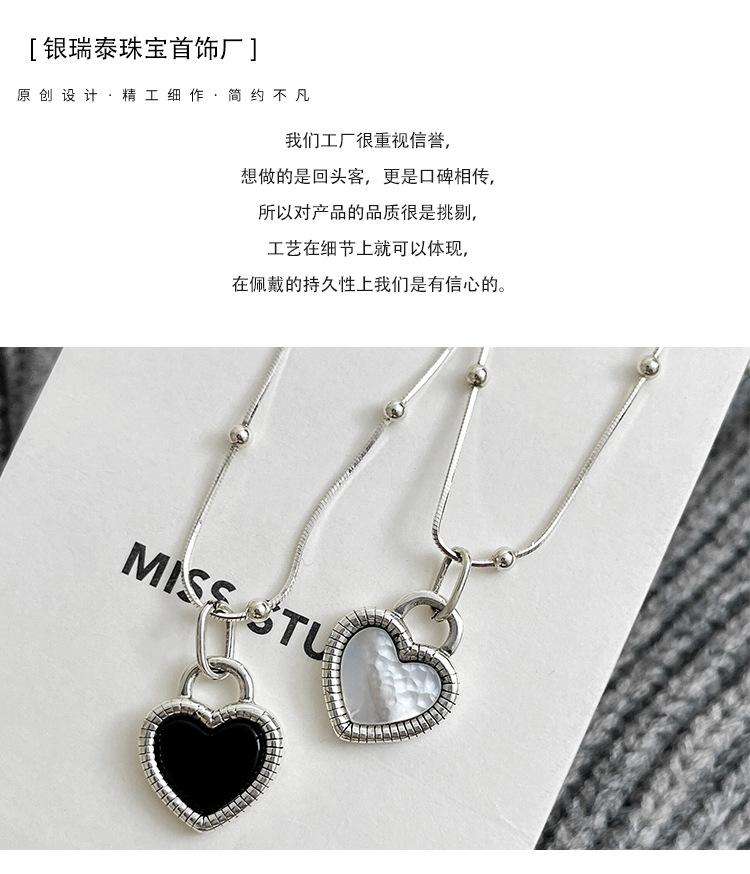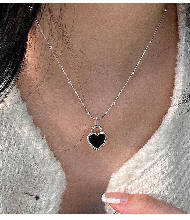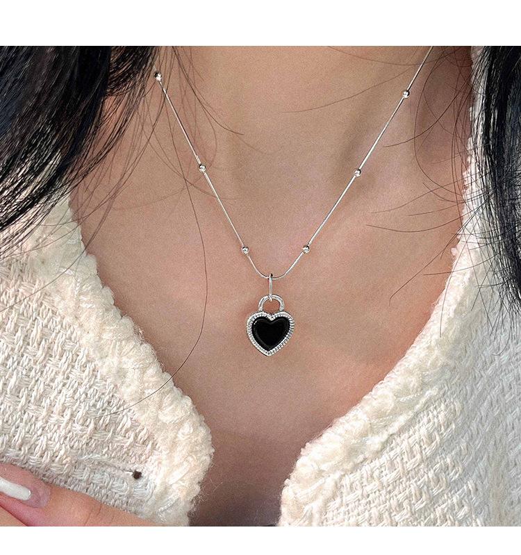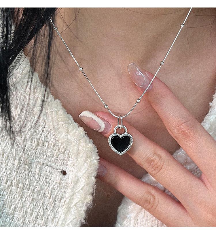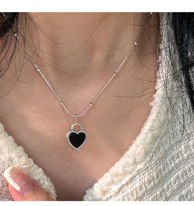 Collar de plata de ley Ruitai S925 con ágata negra y corazón para mujer, estilo coreano, verano 2022, cadena de clavícula de alta calidad y a la moda.
