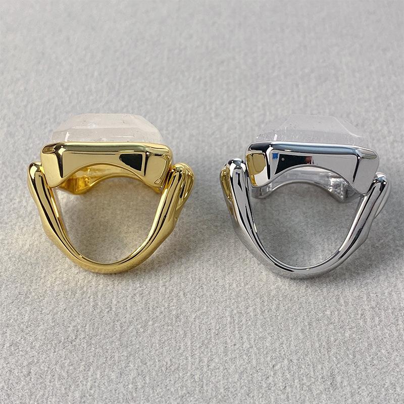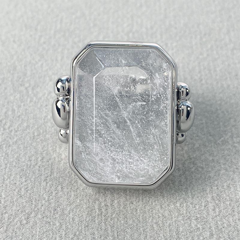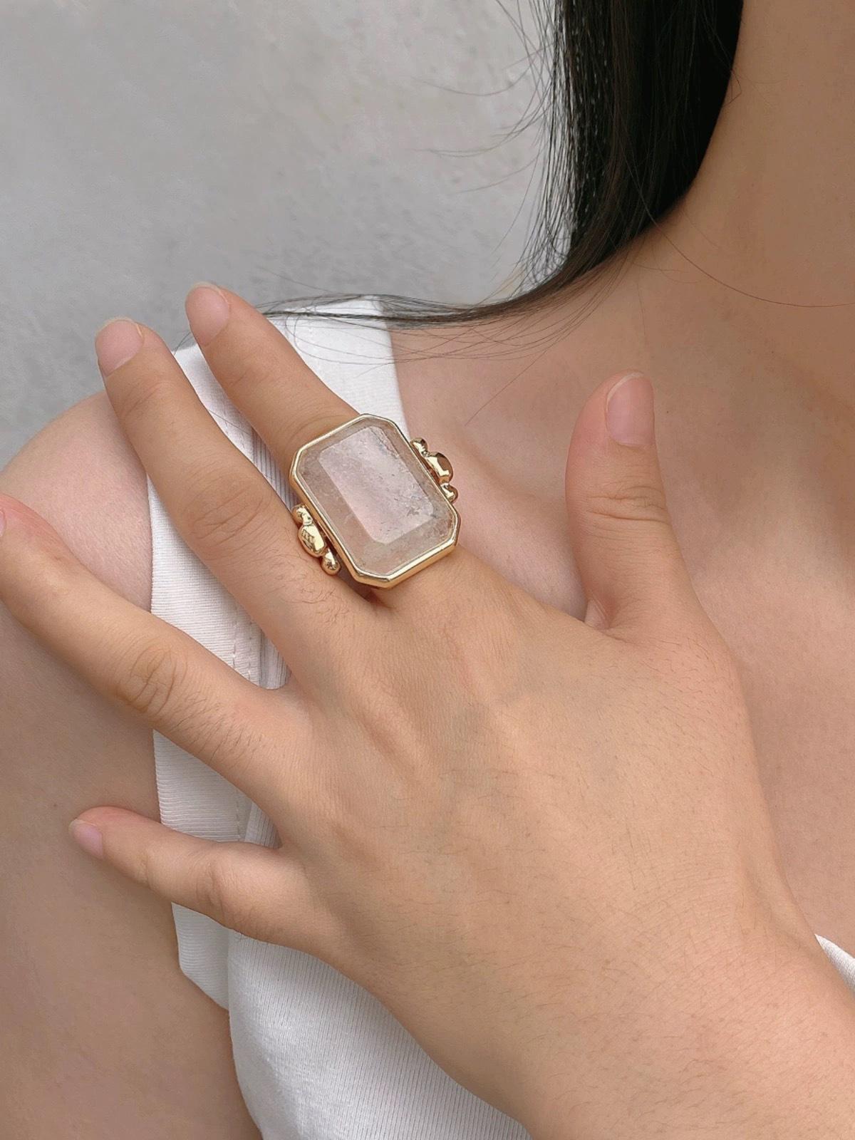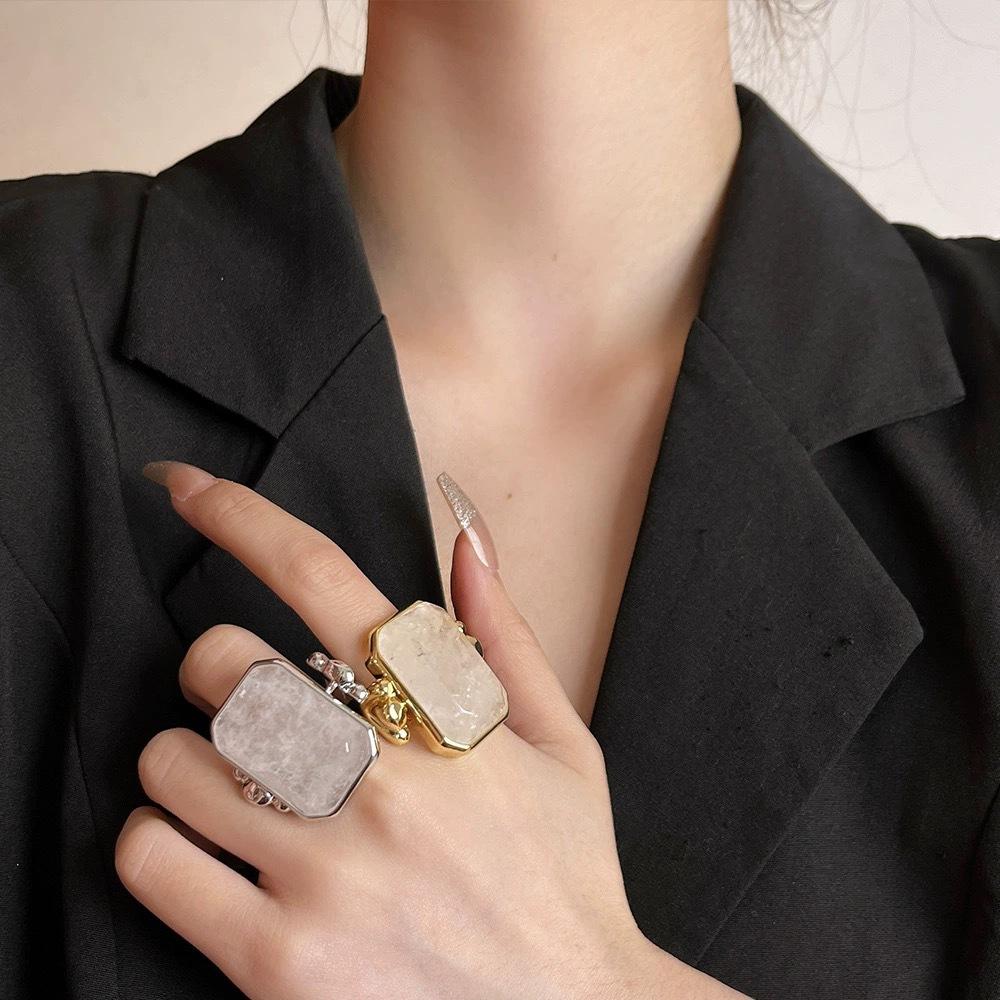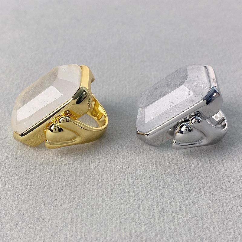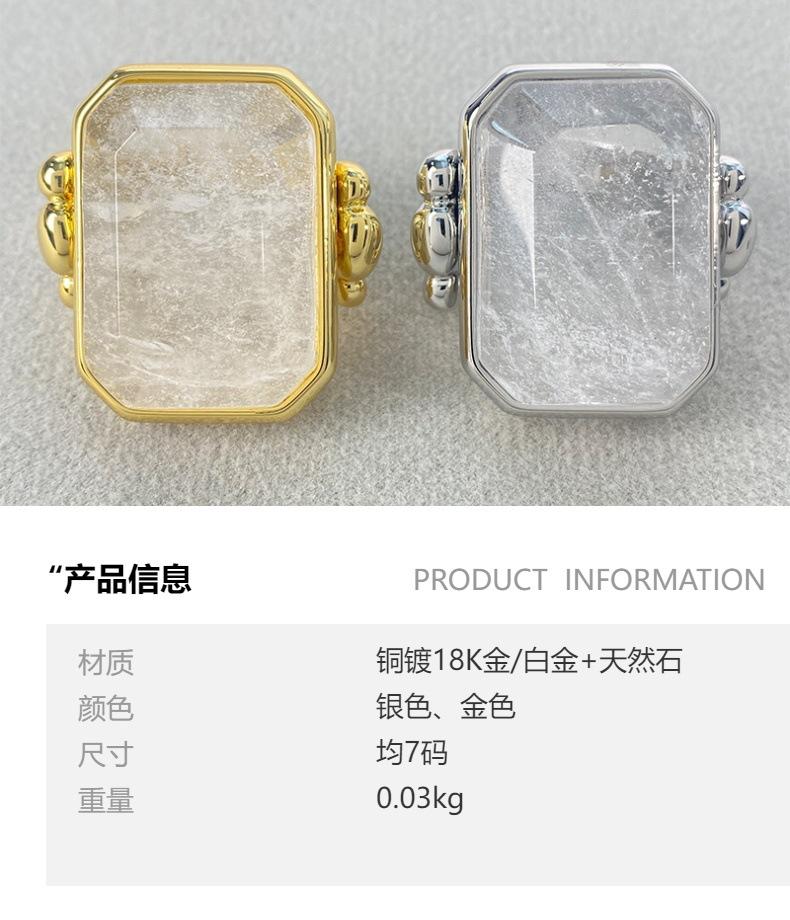 Anillo de Cristal de Piedra Natural Cuadrado de Moda Vintage Francés Personalidad Exagerada Chapado en Oro al Vacío Sensación de Alta Gama