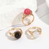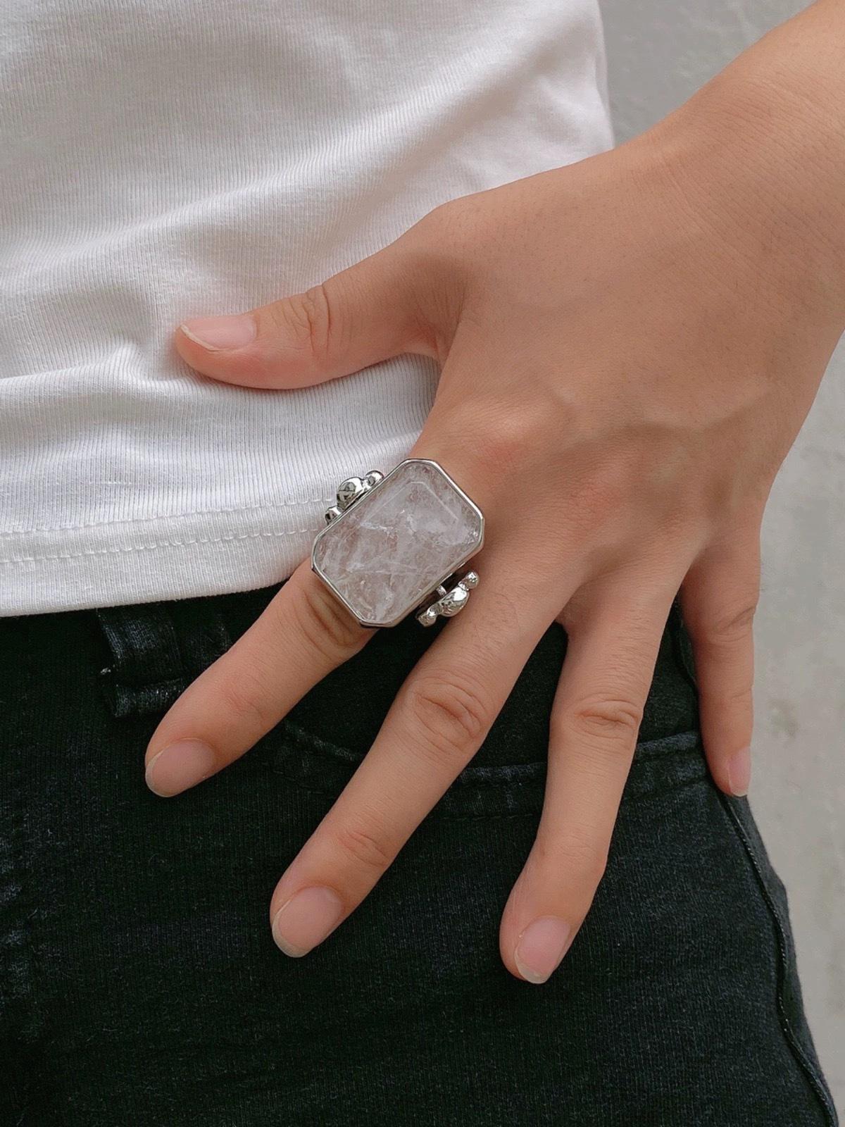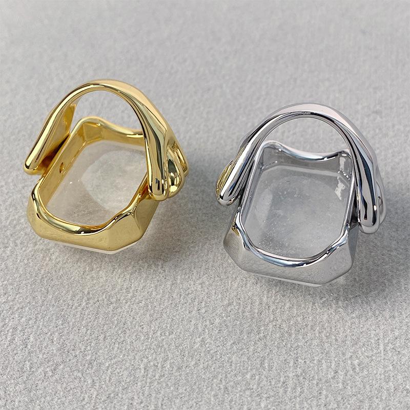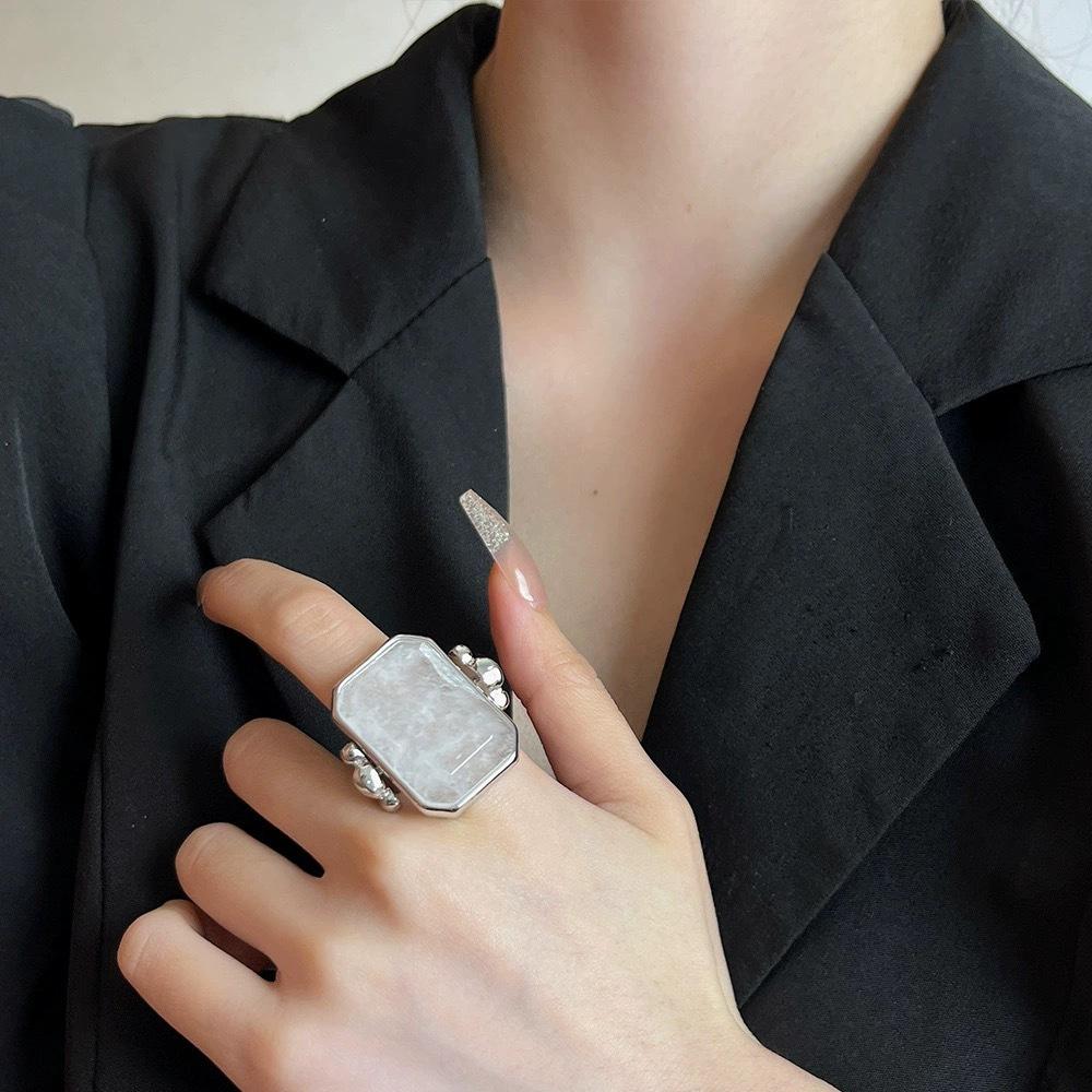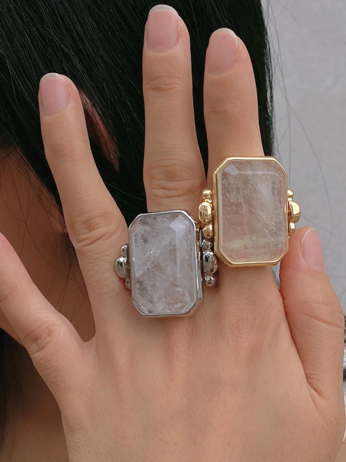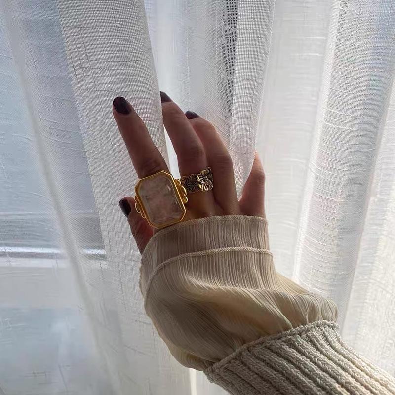 Anillo de Cristal de Piedra Natural Cuadrado de Moda Vintage Francés Personalidad Exagerada Chapado en Oro al Vacío Sensación de Alta Gama
