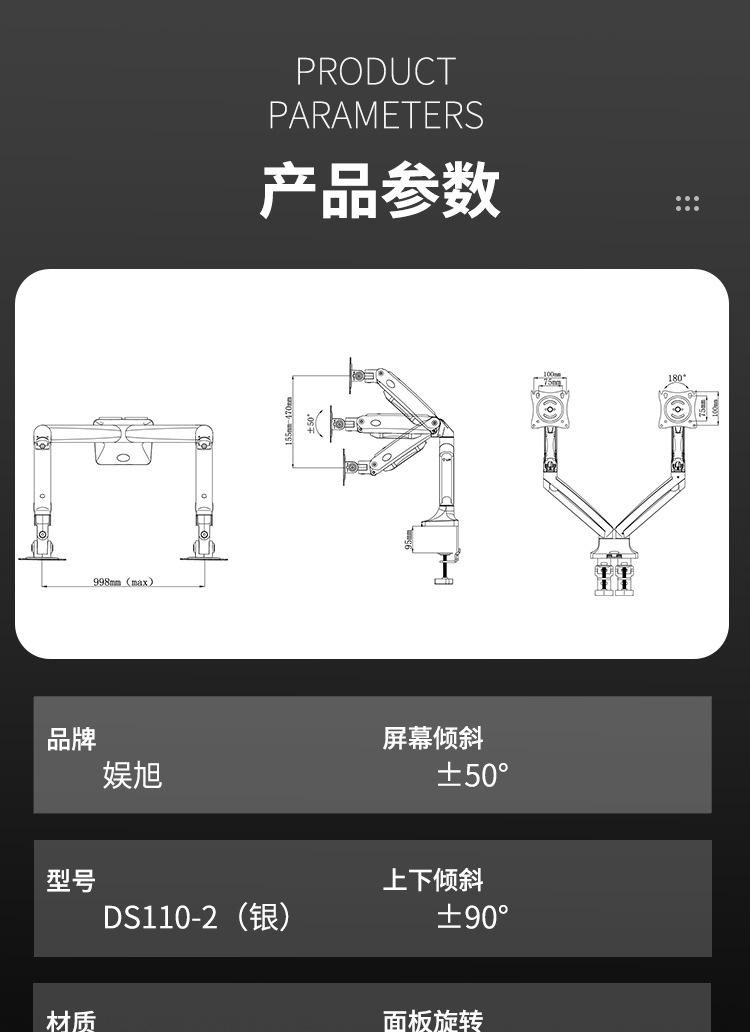 Soporte para computadora con pantalla brazo soporte de doble pantalla brazo mecánico pantalla de visualización pantalla grande giratorio elevable doble pantalla 32 pulgadas Vesa