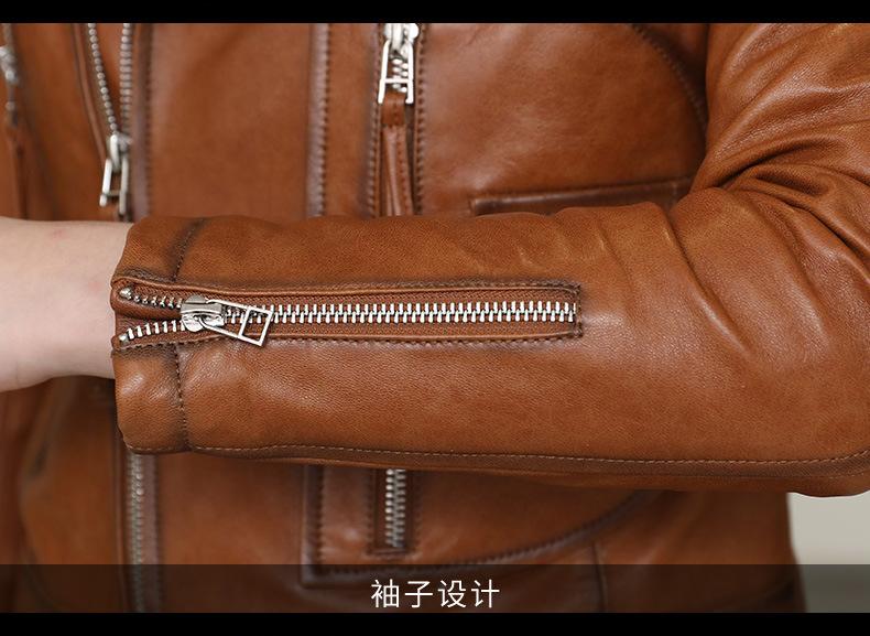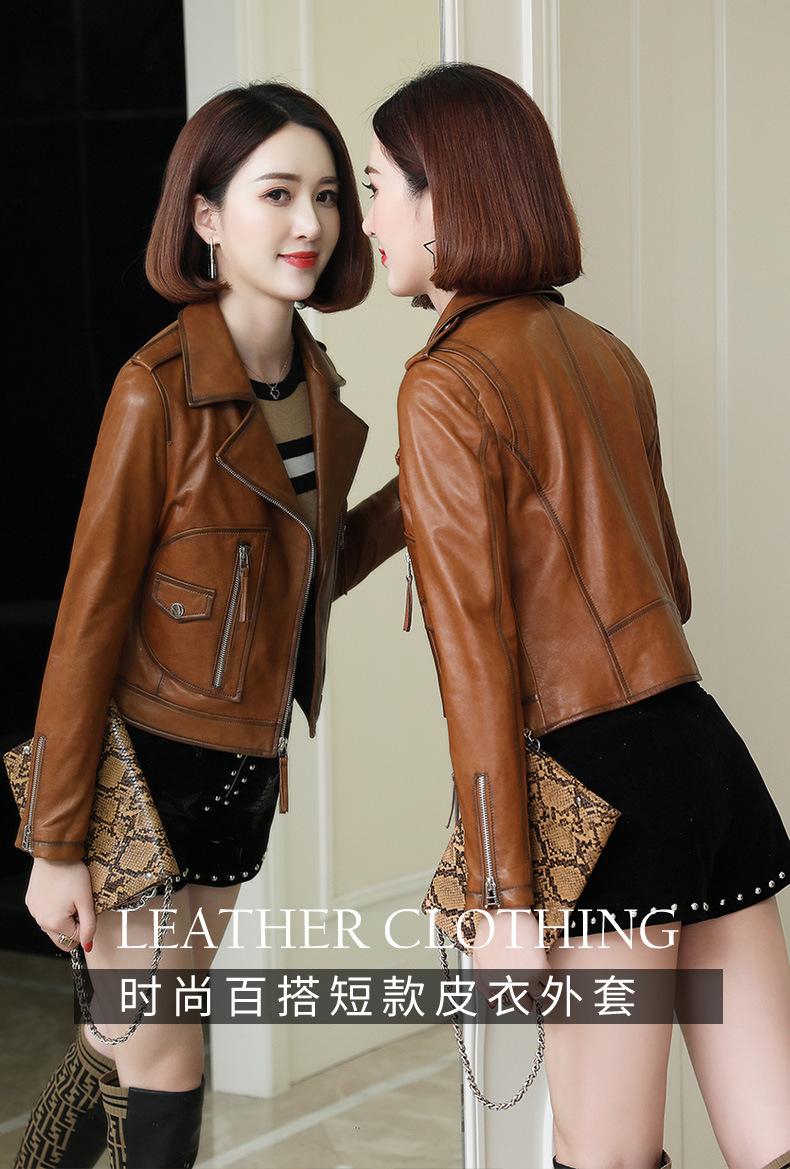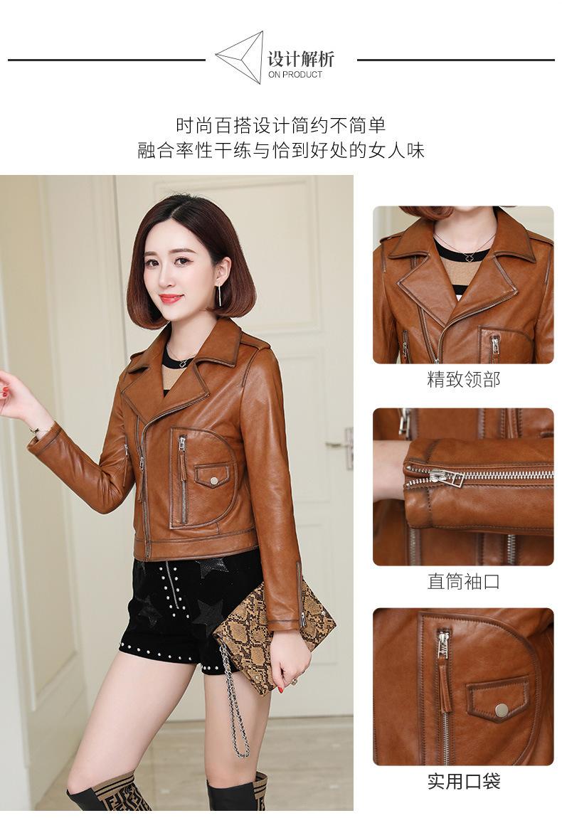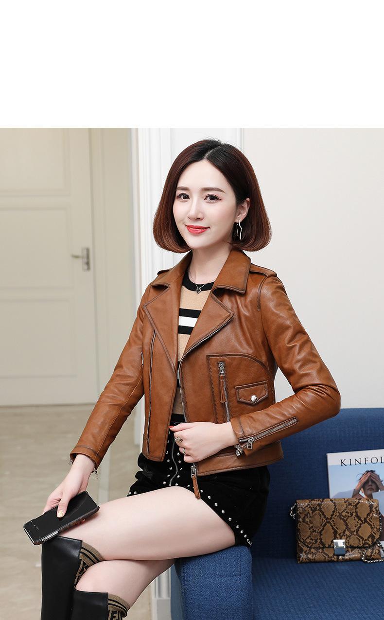 Abrigo de piel de oveja para mujer, primavera y otoño de 2025, nuevo abrigo de cuero genuino, ajustado, corto, informal, para motocicleta.