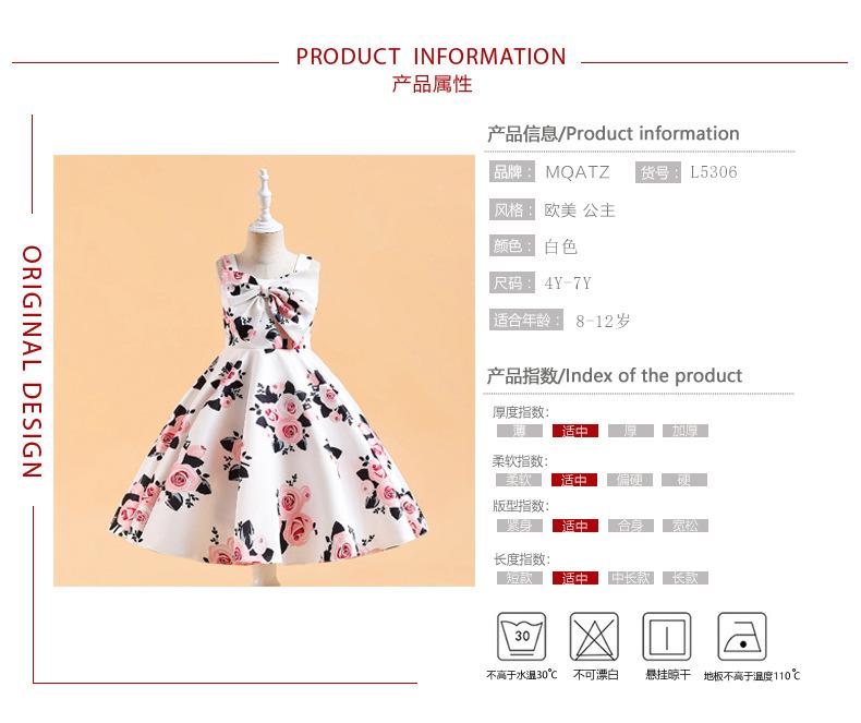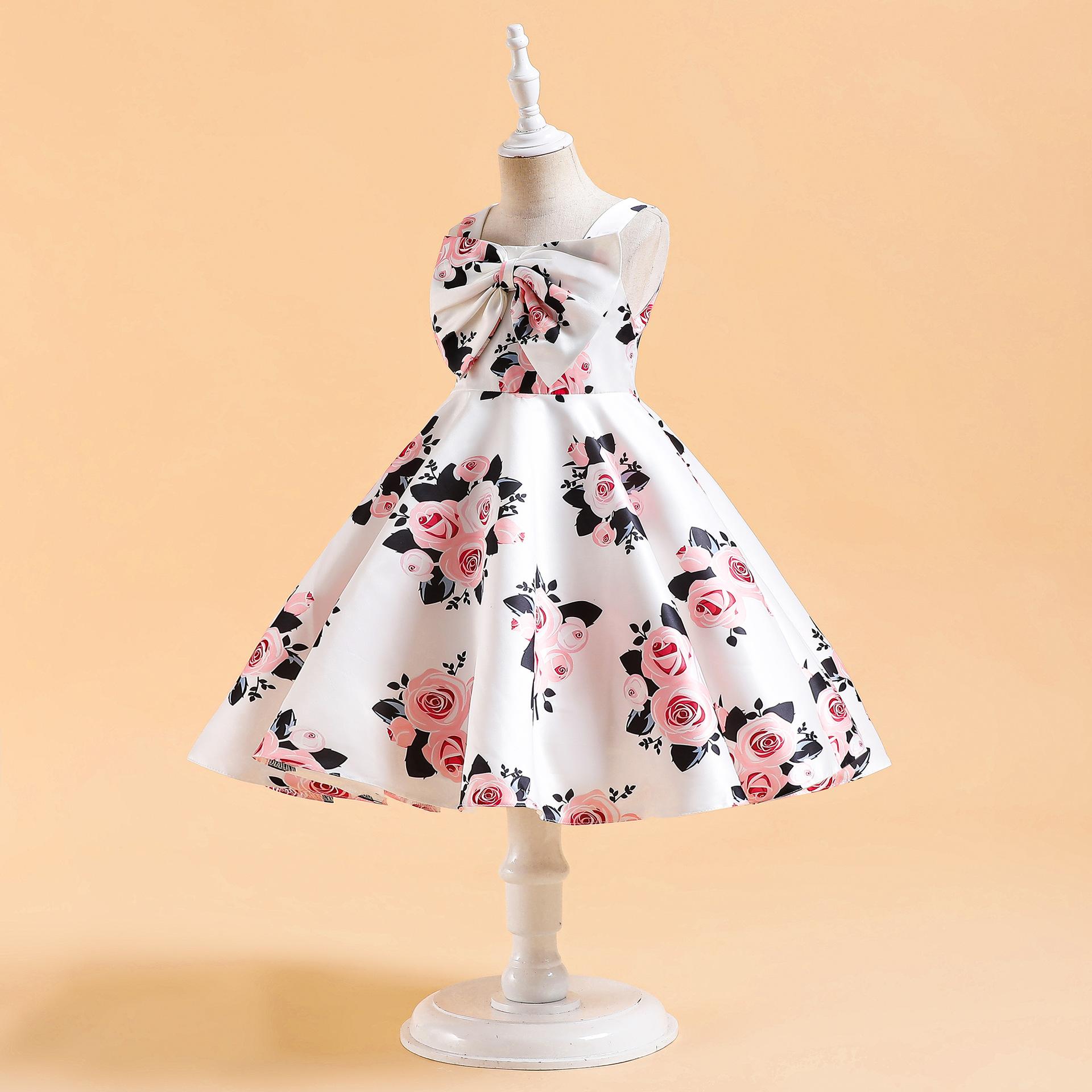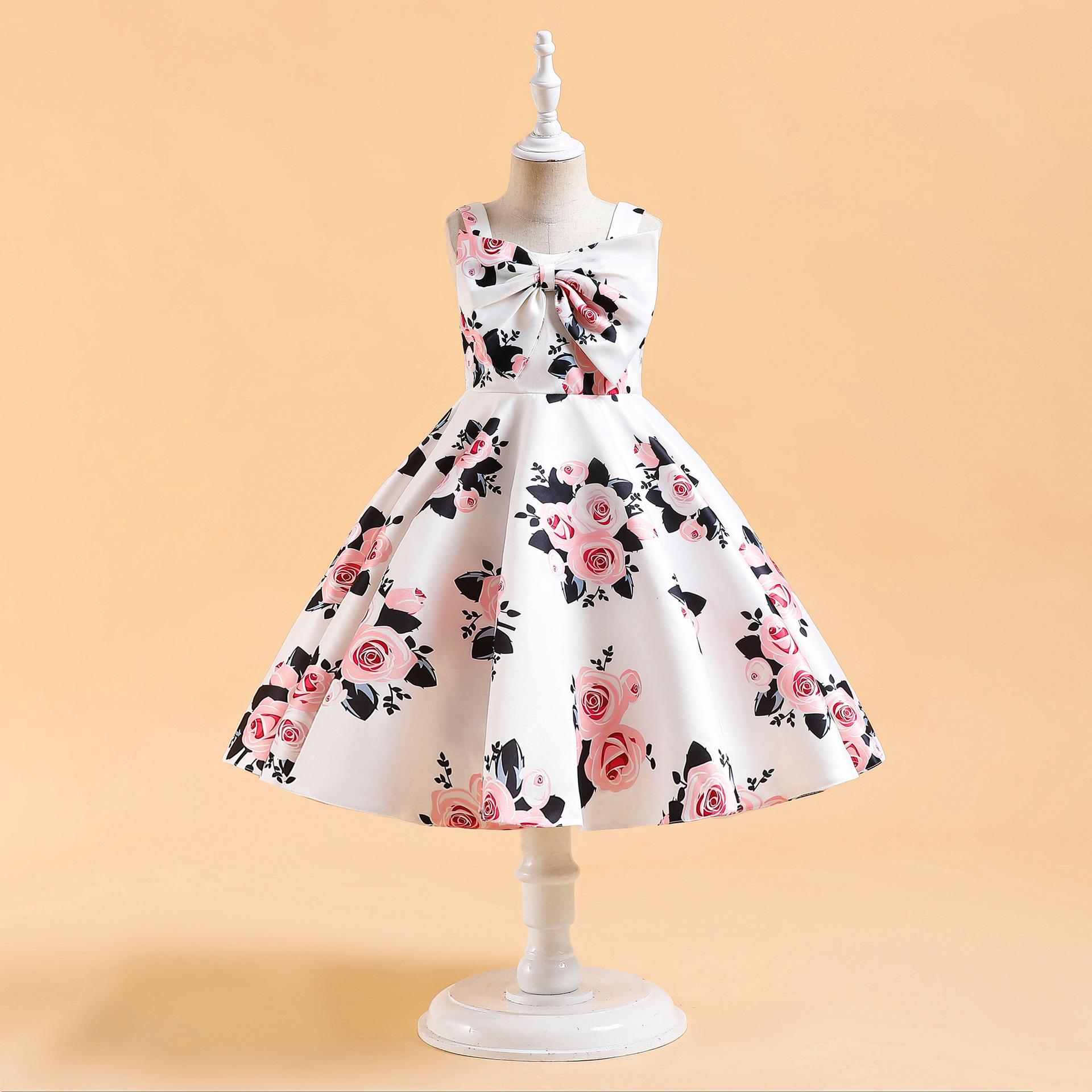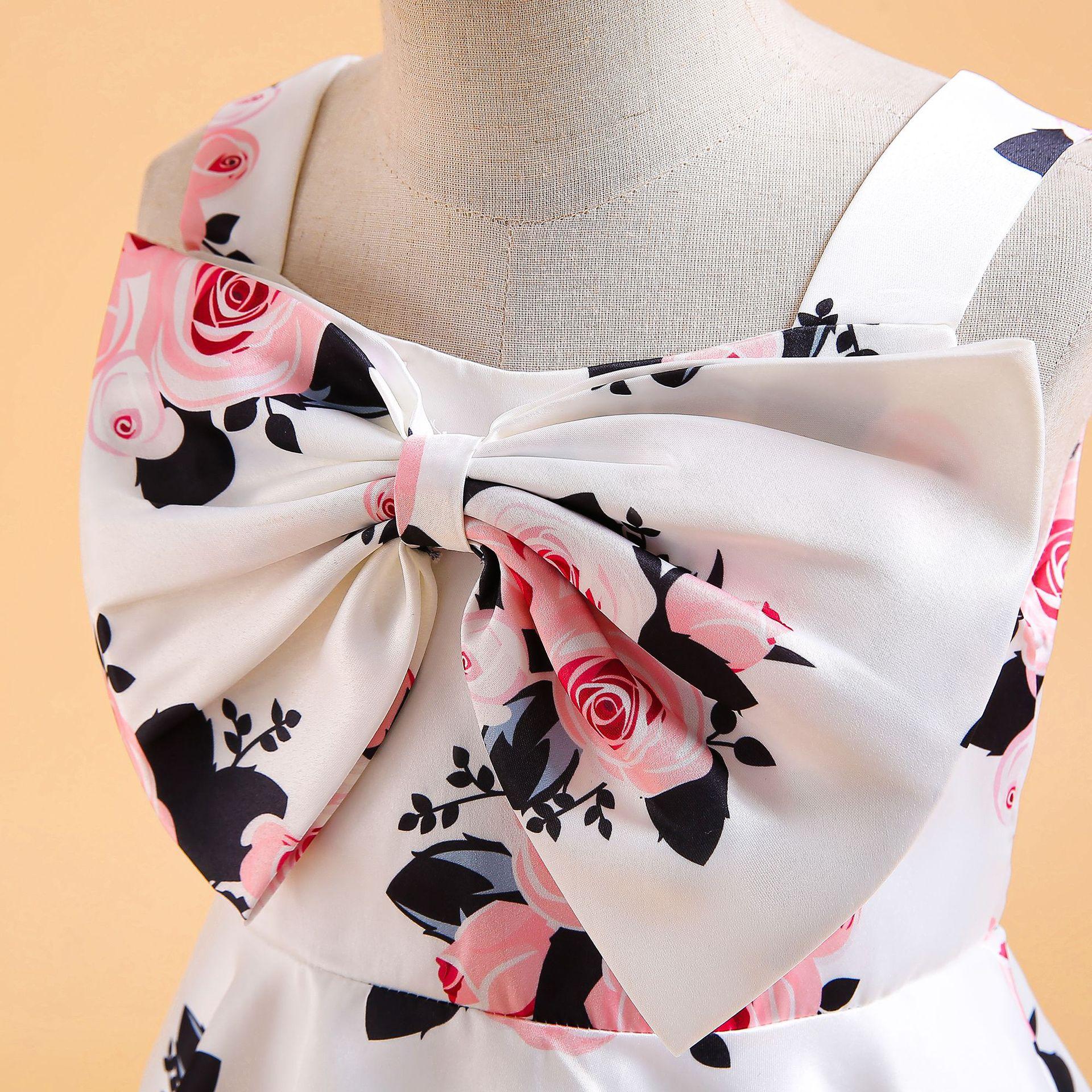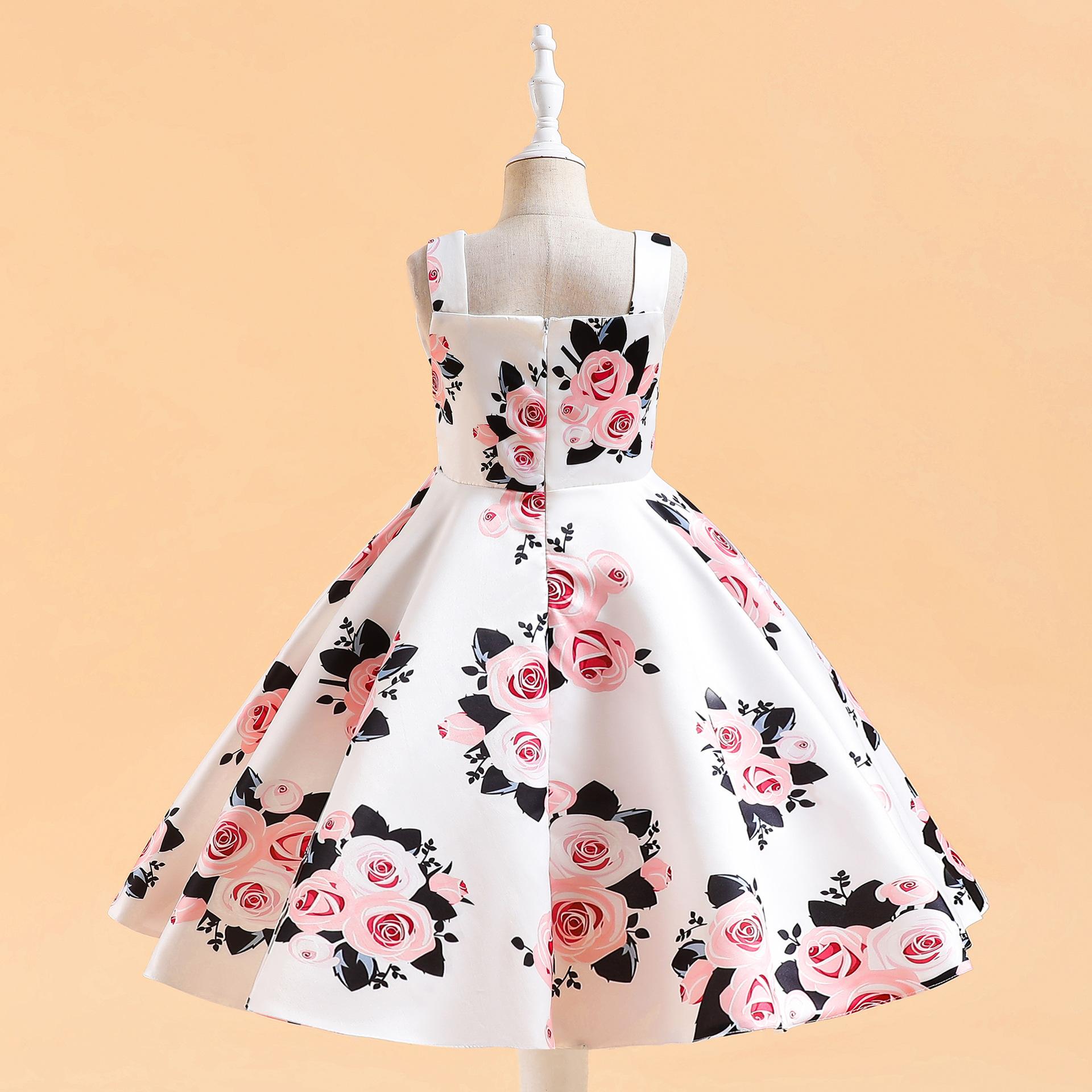Vestido de Princesa para Niñas Nuevo Transfronterizo de Amazon Estampado de Lazo Pastoral Vestido Falda Sobre la Rodilla Vestido de Pasarela para Mujeres