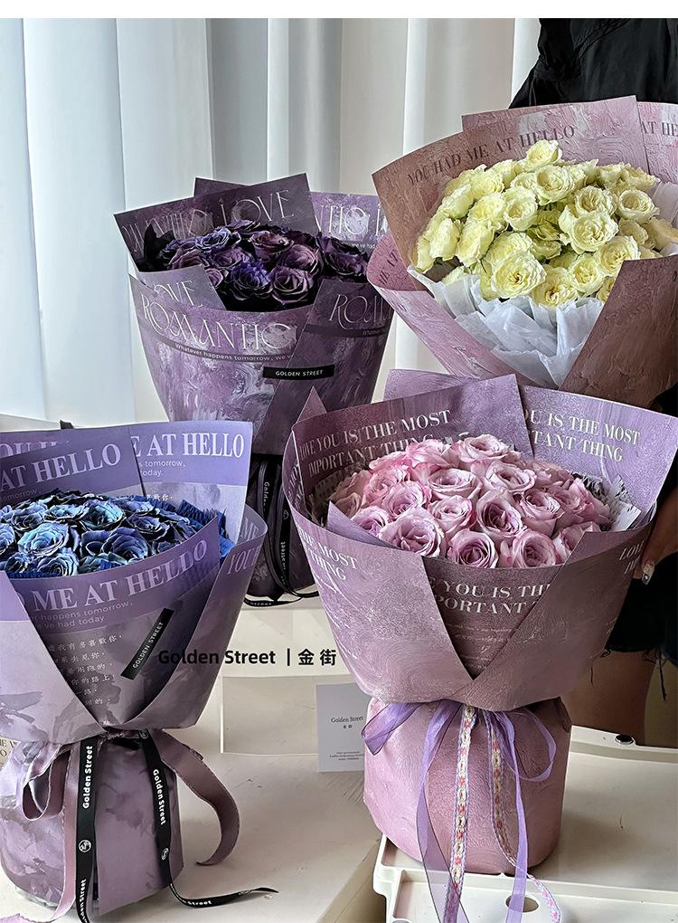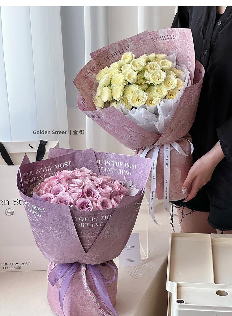 Ramo personalizado al por mayor papel Kraft florería material floral para regalo pintura al óleo pasta ciruela negra papel para envolver flores