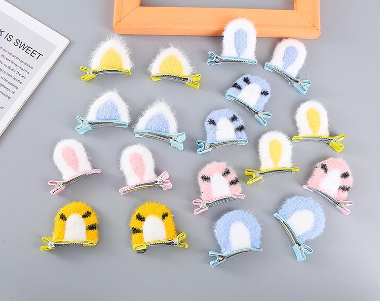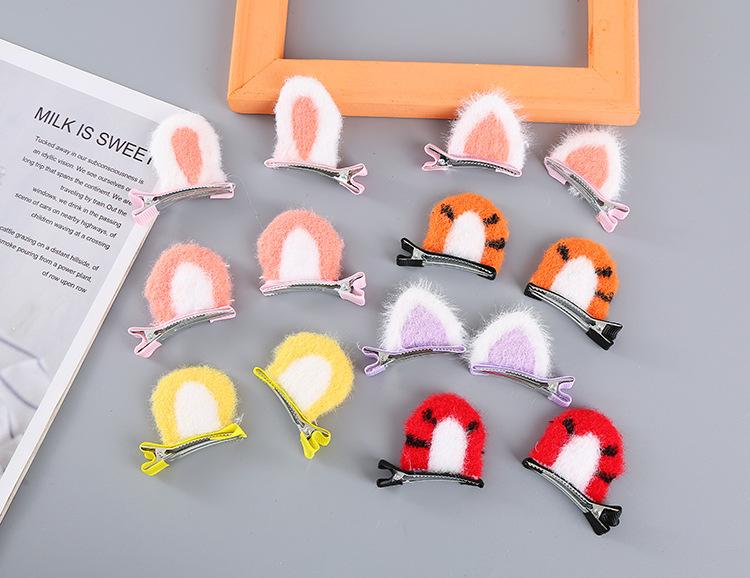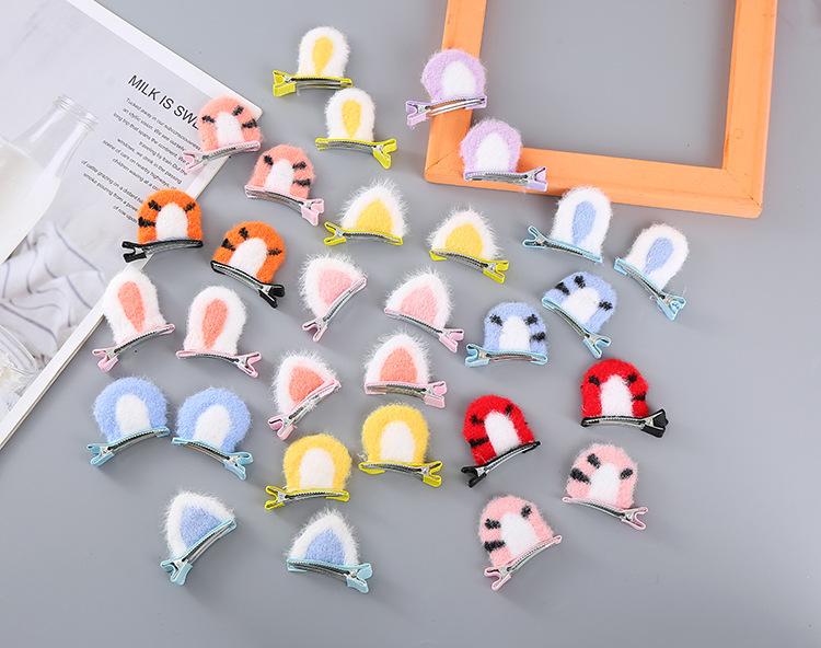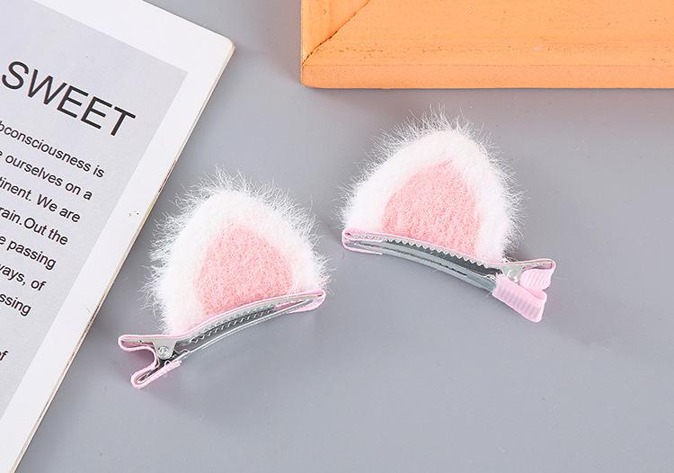 Pinza para el pelo con orejas de gato de peluche de estilo coreano para niños, linda caricatura tridimensional, pinza para el pelo para niña pequeña, accesorios para el cabello