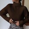 Suéter rojo de otoño e invierno 2023, suéter coreano de cuello alto con temperamento de color sólido, suéter suelto de manga larga para mujer