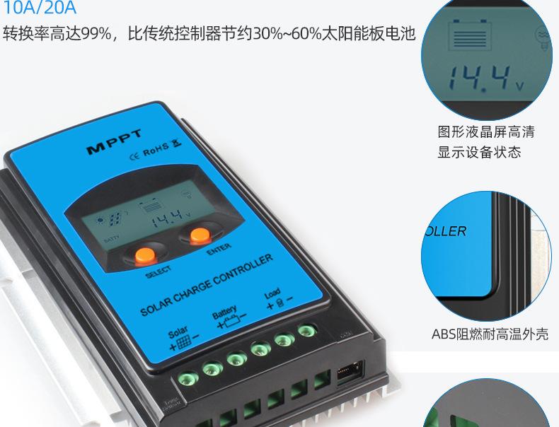 Controlador solar MPPT personalizado de 20 A, con identificación automática, 12 V/24 V, venta al por mayor