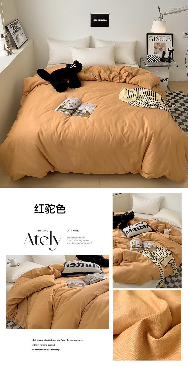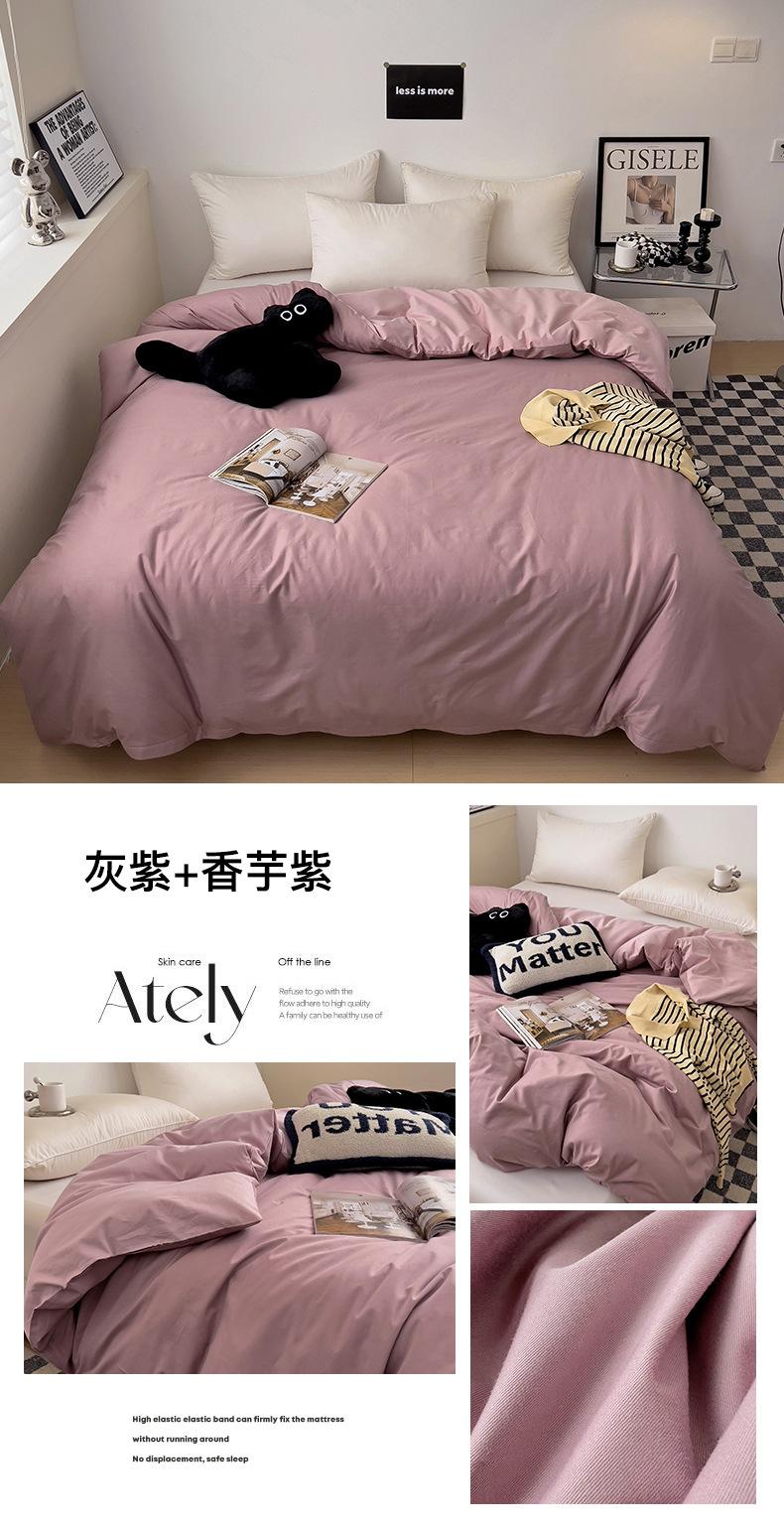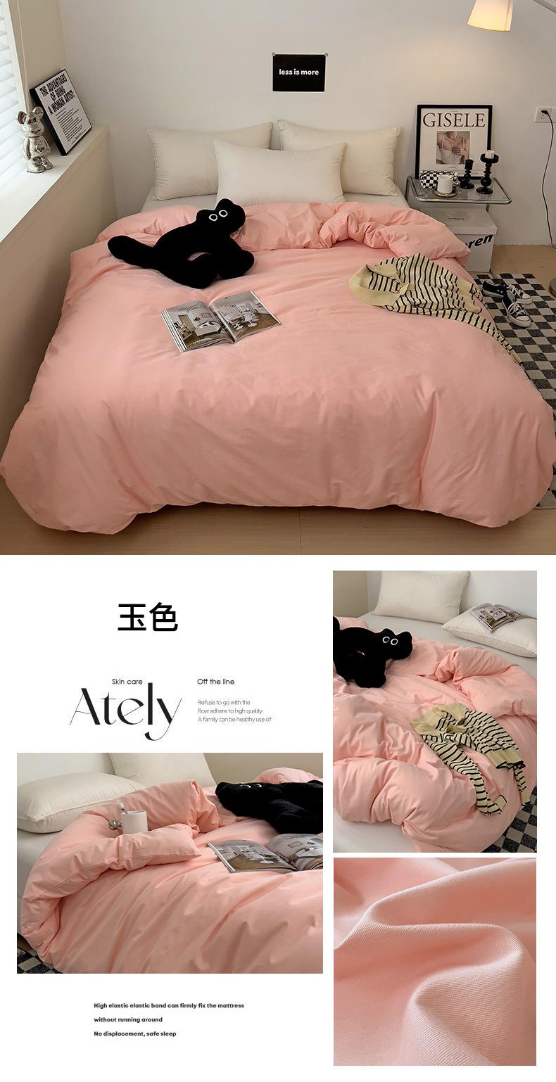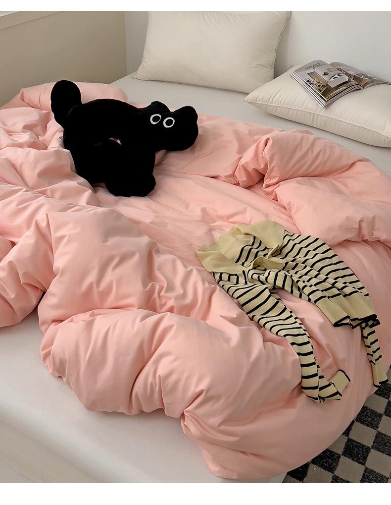 Juego de Cuatro Piezas de Algodón Puro de Color Sólido Nuevo de las Cuatro Estaciones para Dormir Desnudo, Ropa de Cama Popular Funda Nórdica de Algodón Puro, Categoría a Grado Materno e Infantil