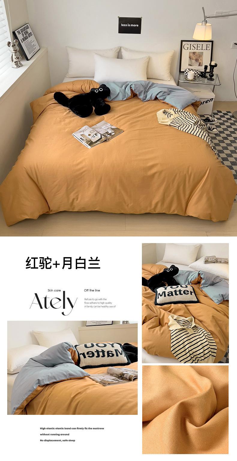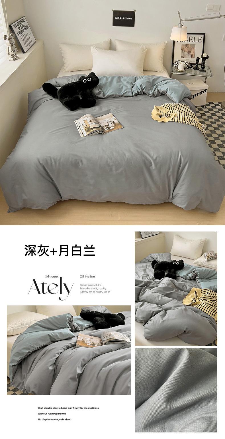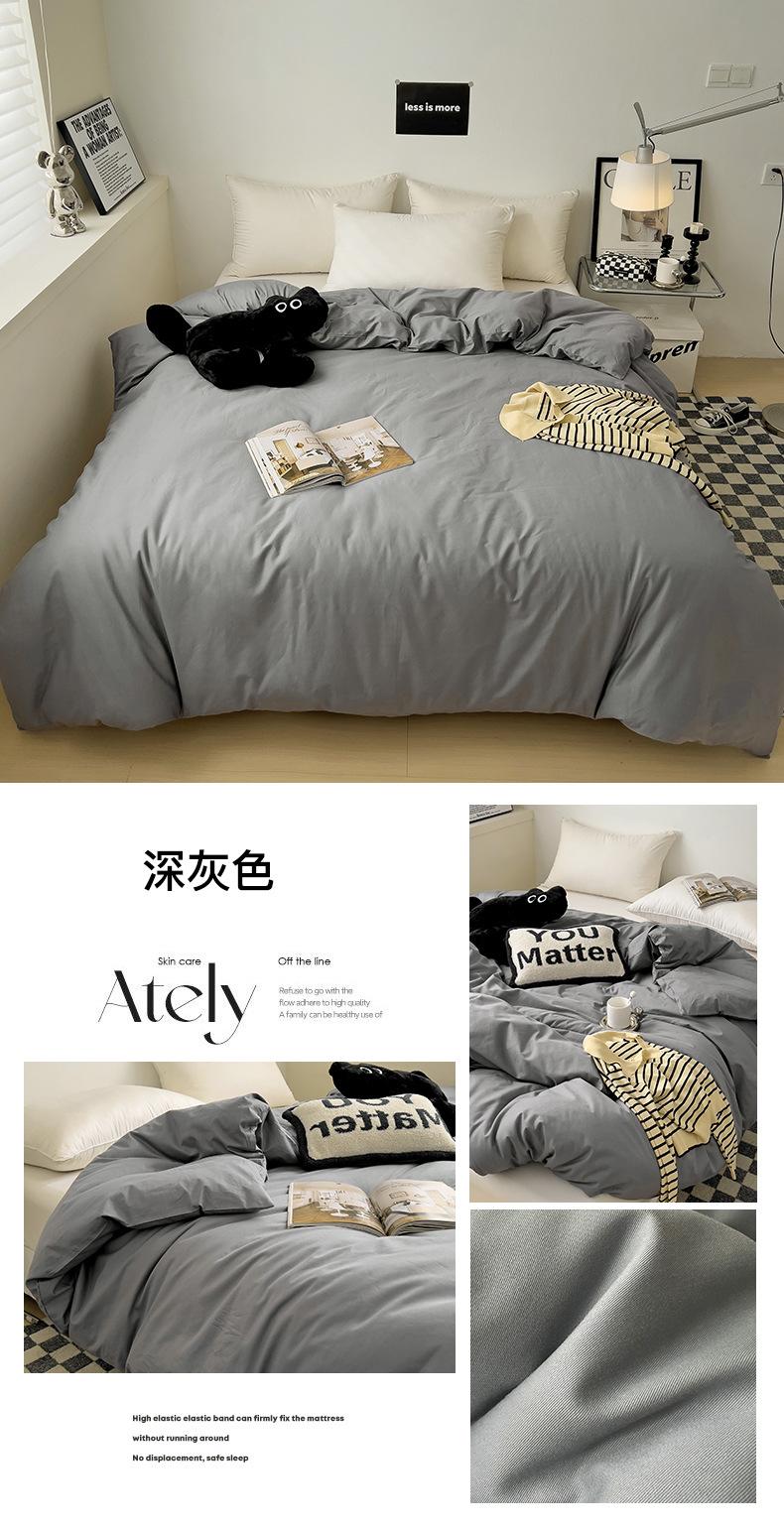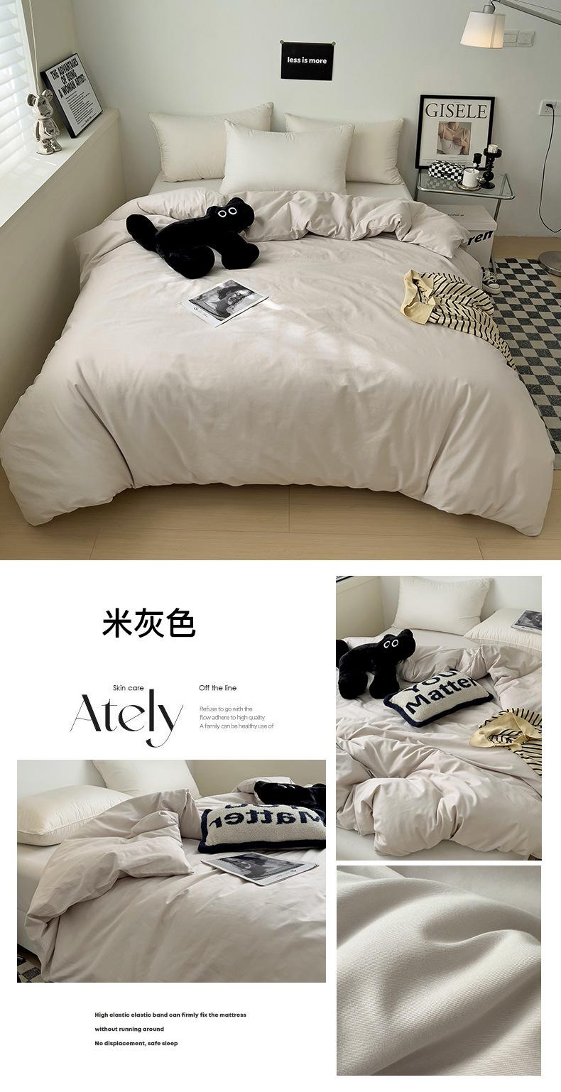 Juego de Cuatro Piezas de Algodón Puro de Color Sólido Nuevo de las Cuatro Estaciones para Dormir Desnudo, Ropa de Cama Popular Funda Nórdica de Algodón Puro, Categoría a Grado Materno e Infantil