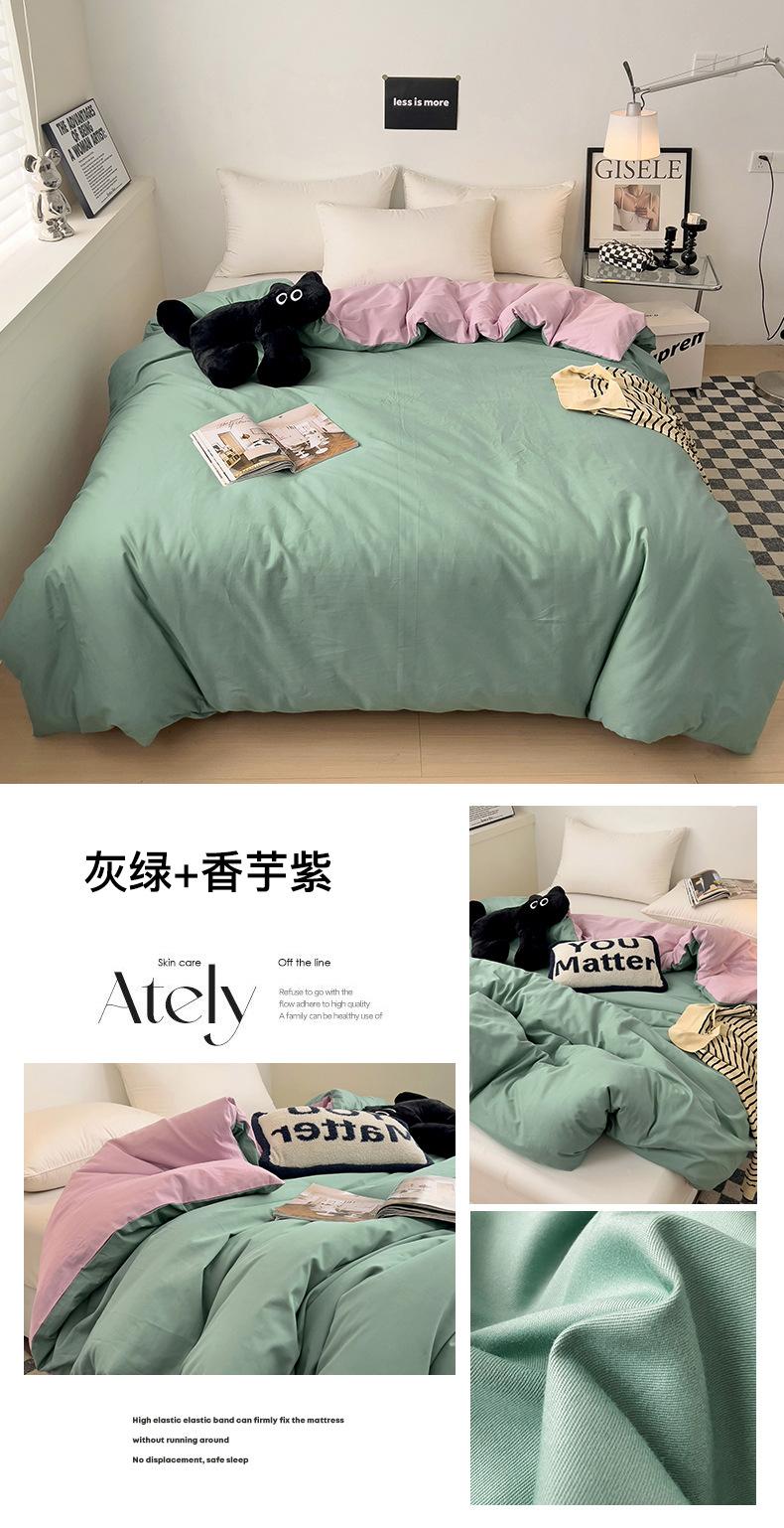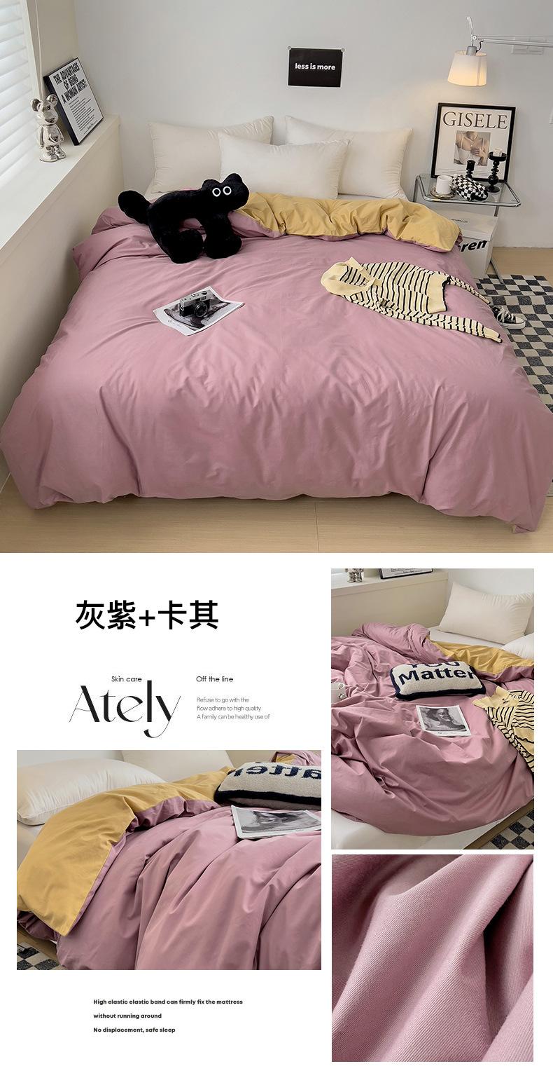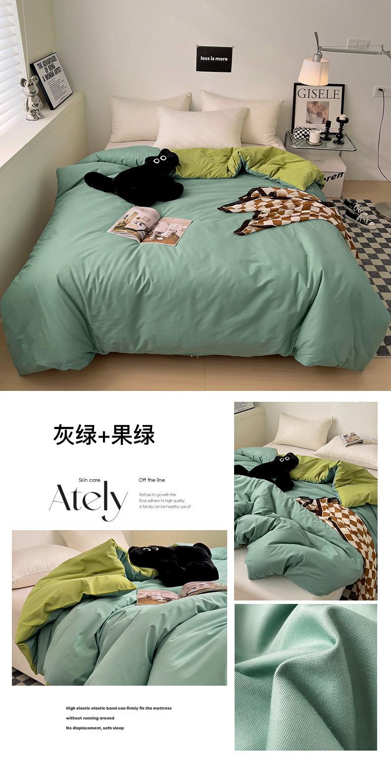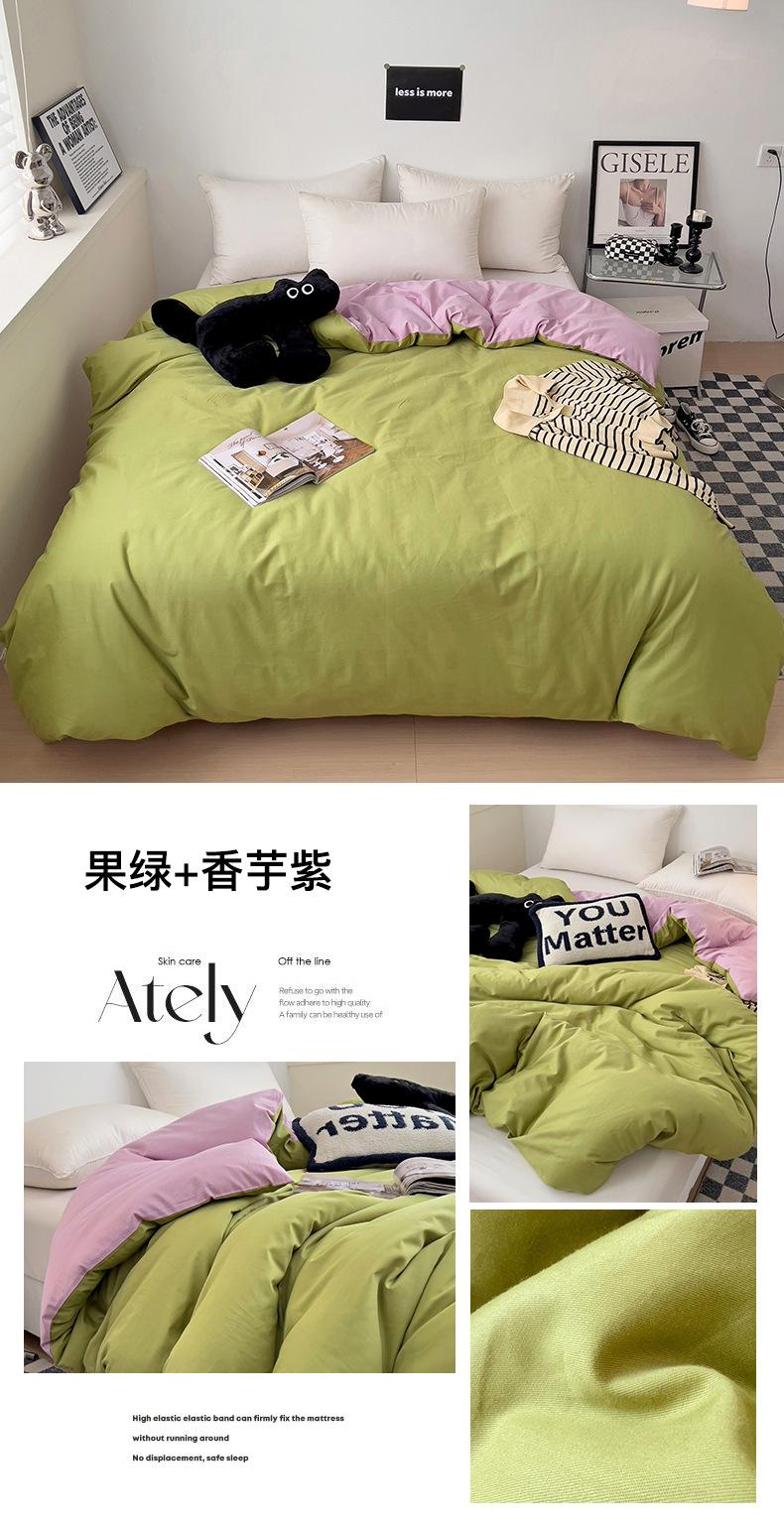 Juego de Cuatro Piezas de Algodón Puro de Color Sólido Nuevo de las Cuatro Estaciones para Dormir Desnudo, Ropa de Cama Popular Funda Nórdica de Algodón Puro, Categoría a Grado Materno e Infantil