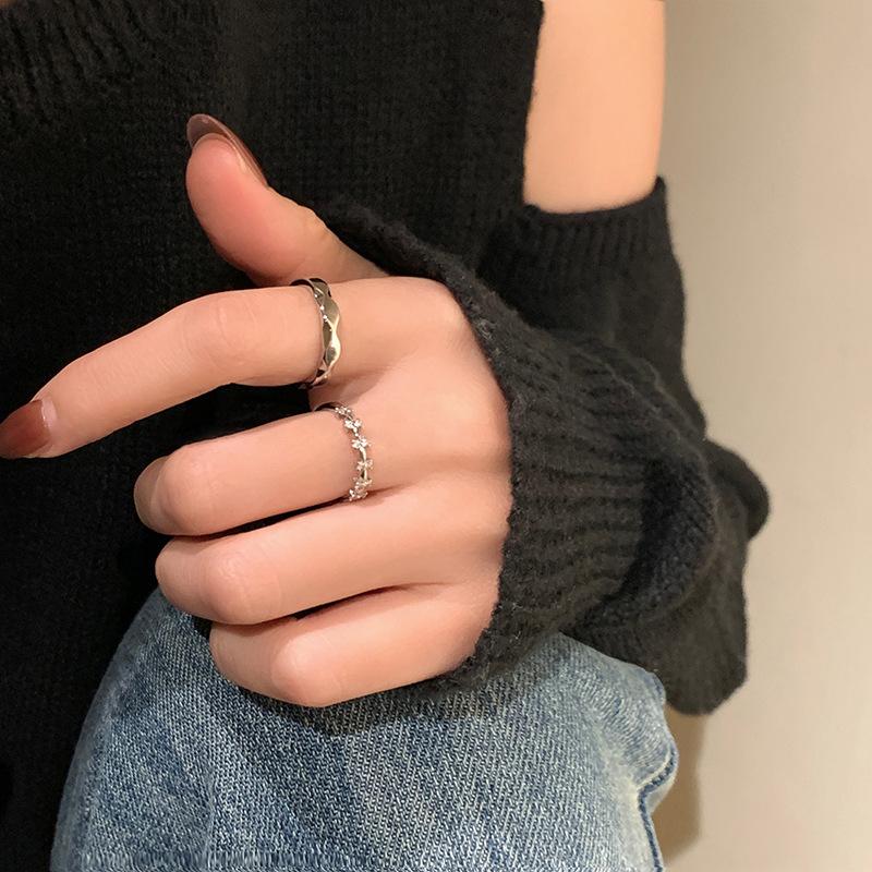 Anillo de circonita con lazo de estilo sencillo y moderno para mujer, ligero, de lujo, ajustable, para dieta, anillo distintivo de nicho.