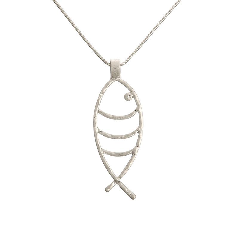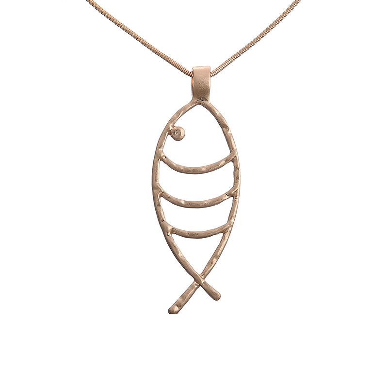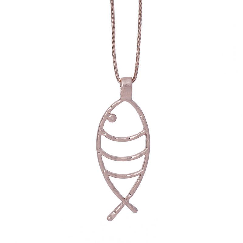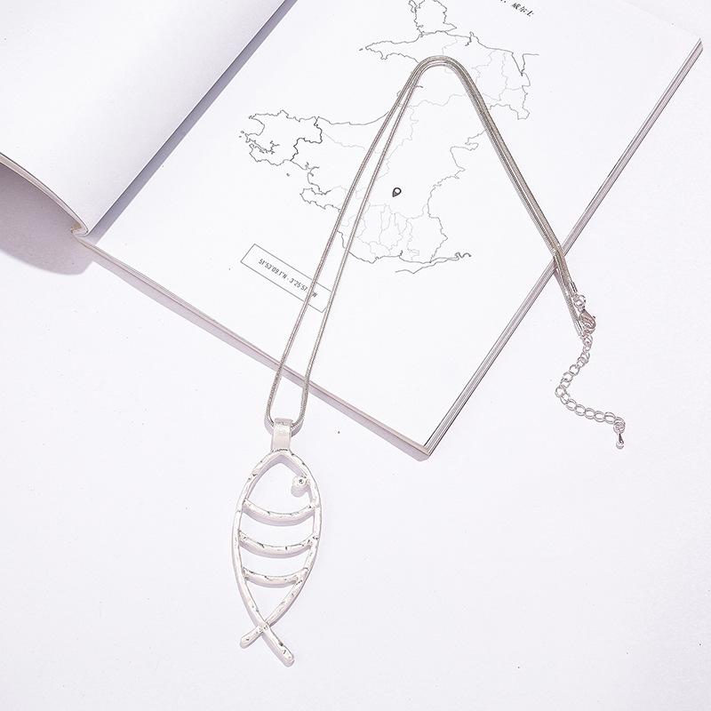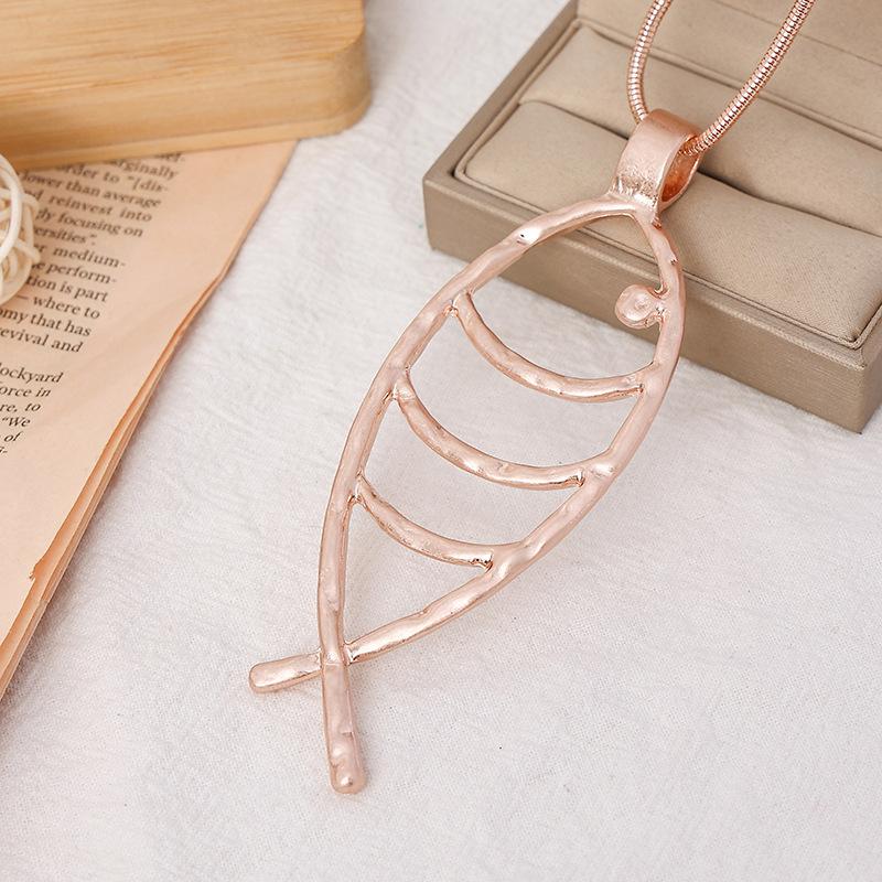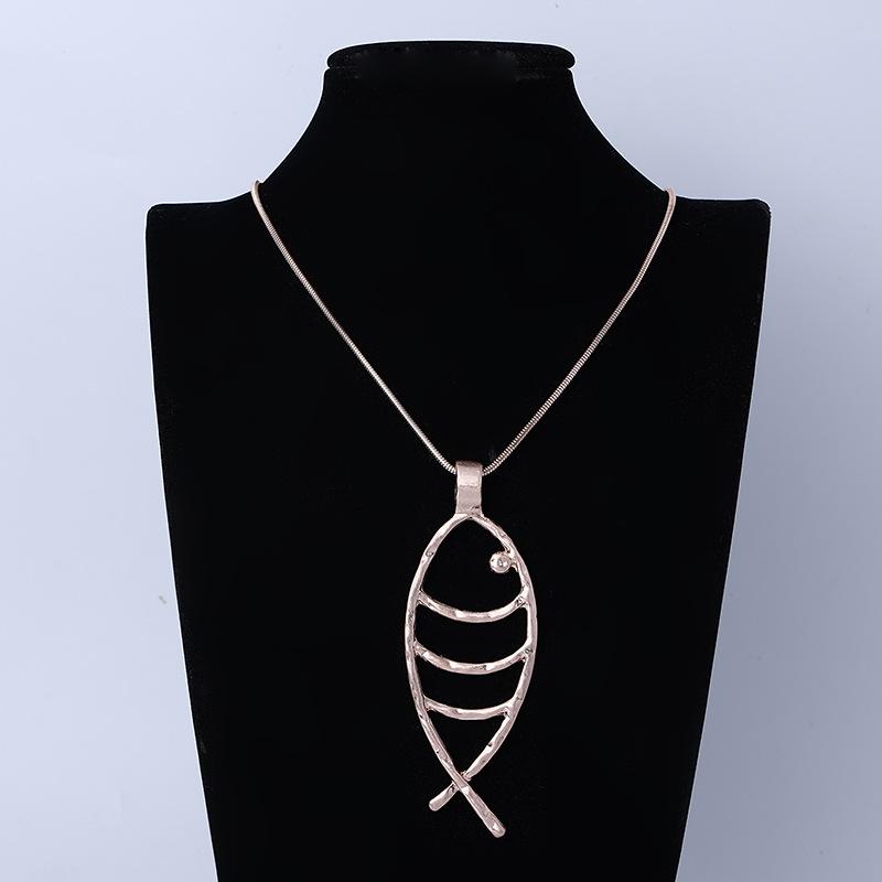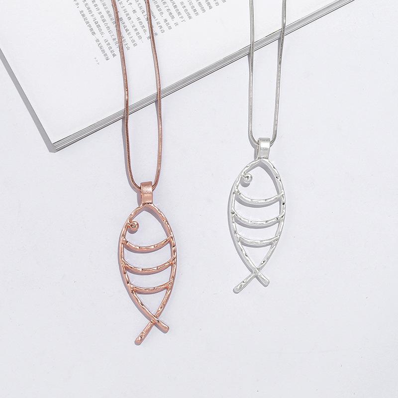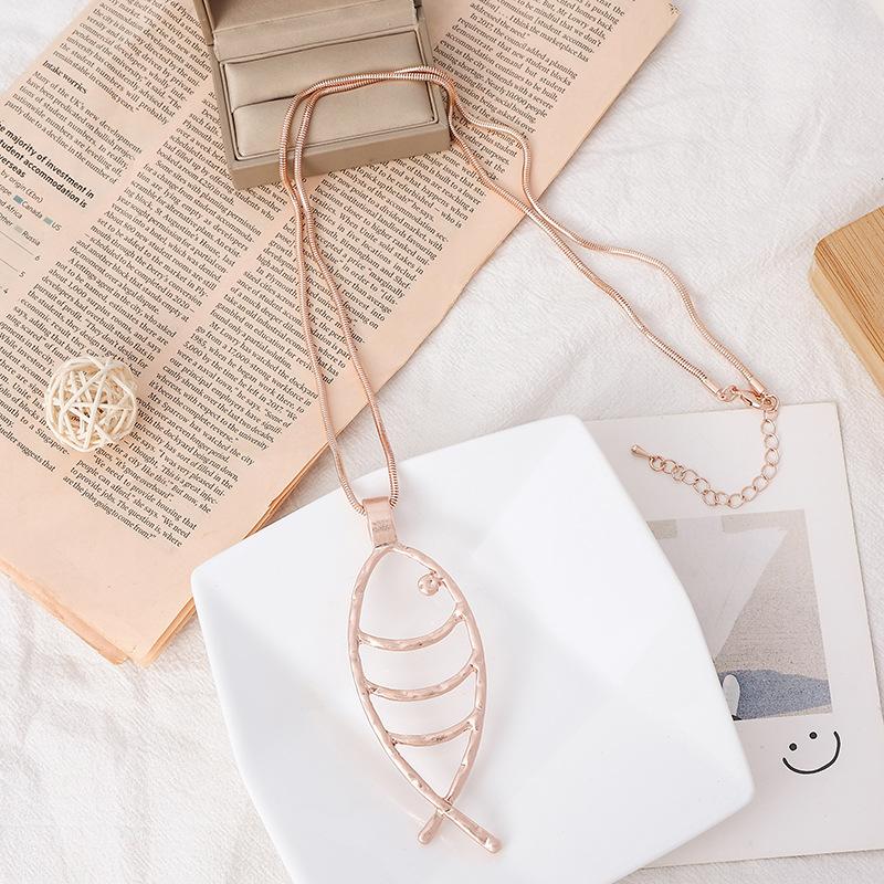 Collar de moda transfronteriza de Amazon, popular en Europa y América, con colgante de pez, cadena larga de lana metálica para mujer.