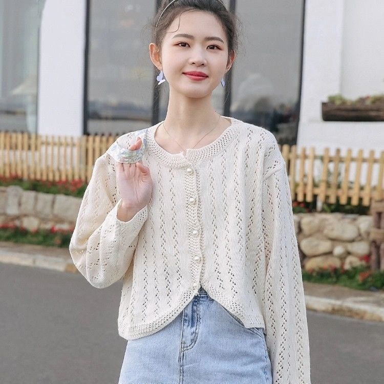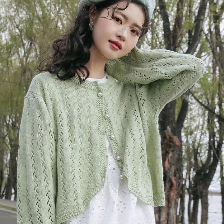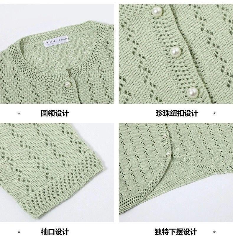 Primavera y verano temperamento suave moda todo fósforo casual punto cárdigan protector solar abrigo fino coreano todo fósforo hueco