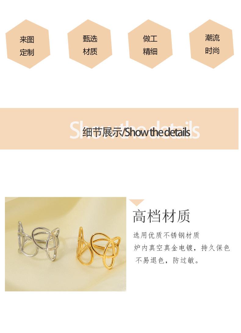 Moda Ins Acero Inoxidable Anillo Abierto Nicho Vintage Chapado en Oro de 18K Joyería de Lujo Ligero Anillo Simple Para Combinar con Todo de Acero de Titanio