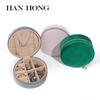 Joyero redondo de terciopelo coreano, joyero portátil, joyero para anillos, pendientes, collares y trajes.