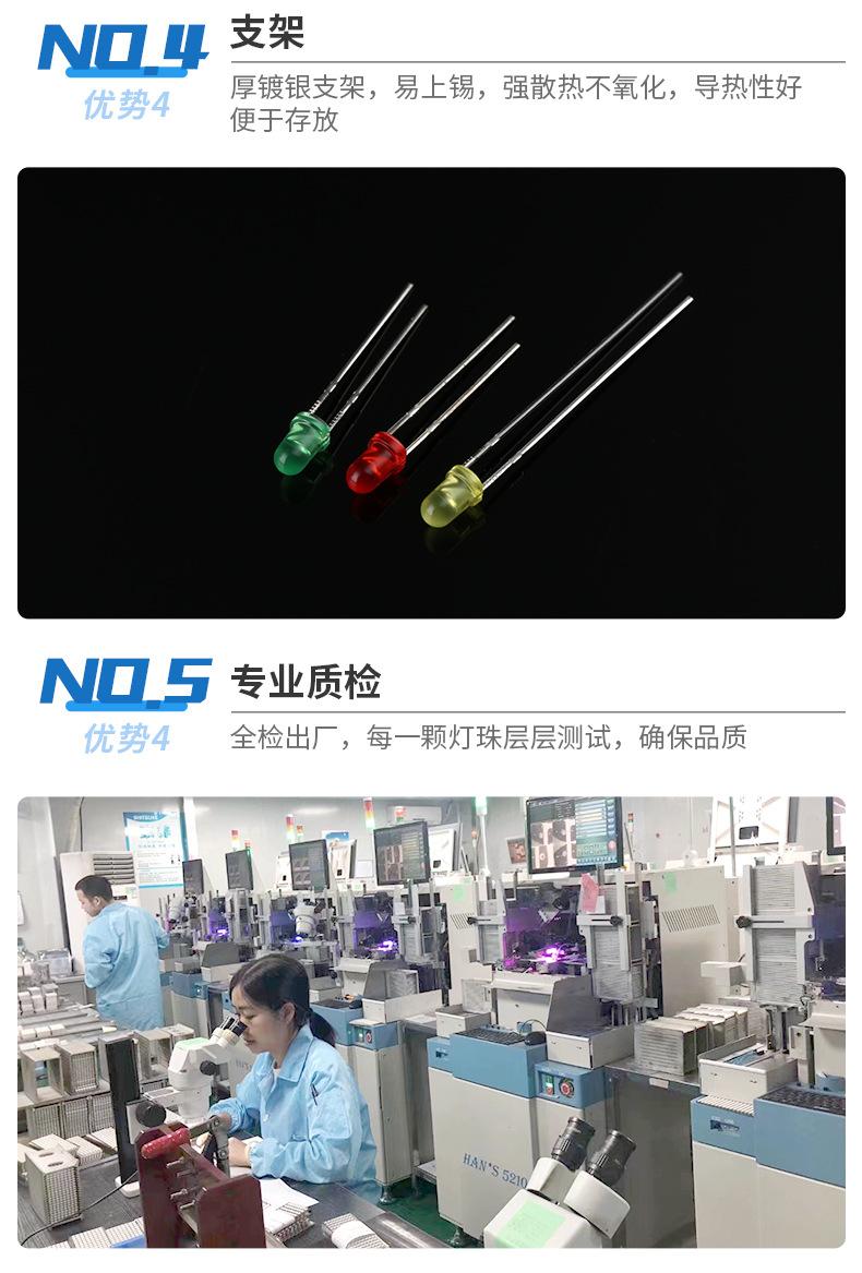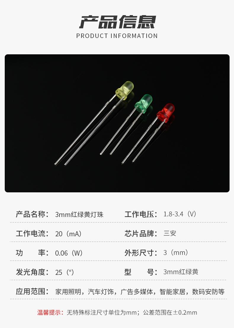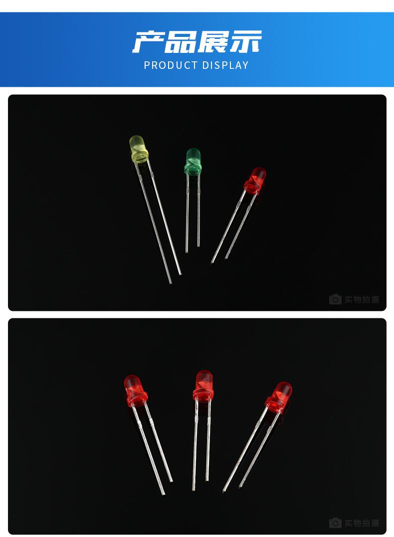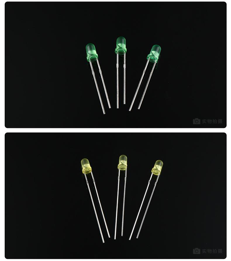Lámpara LED en línea roja de cabeza redonda f3, cuentas de 3 mm, luz indicadora roja, verde y amarilla brillante, diodo emisor de luz