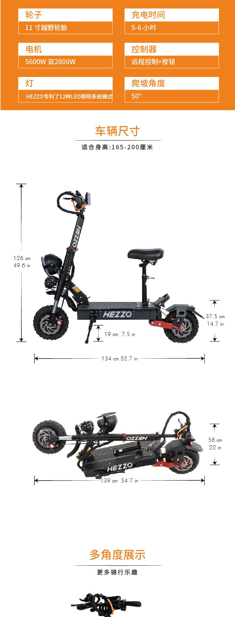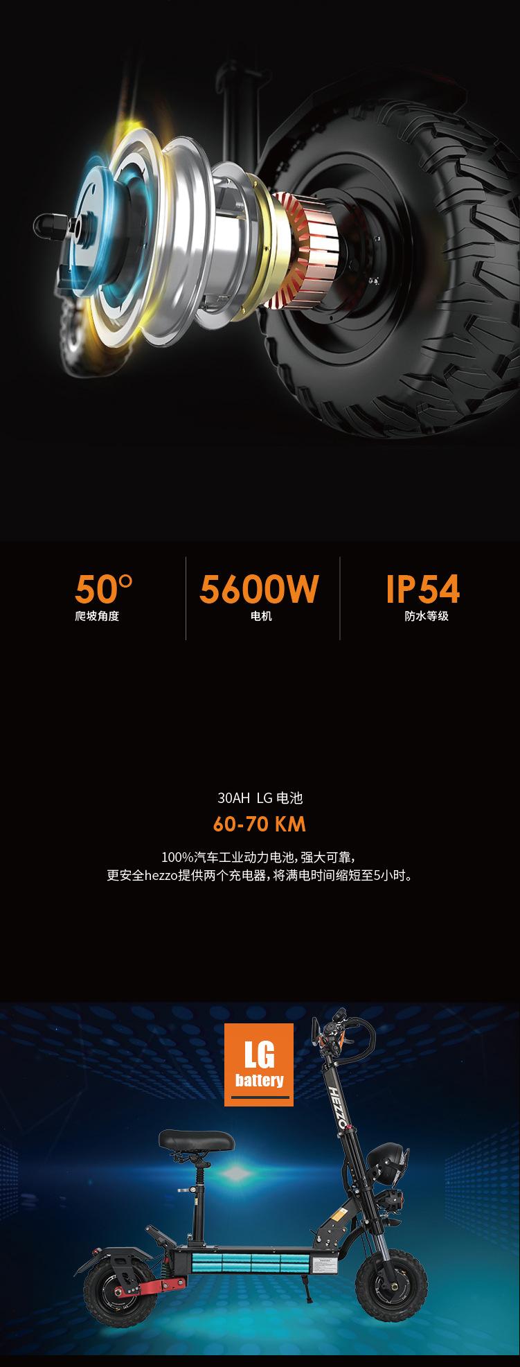 Patinete eléctrico todoterreno plegable de 11 pulgadas, 6000 W, 45 Ah, con doble motor y doble tracción para exportación transfronteriza