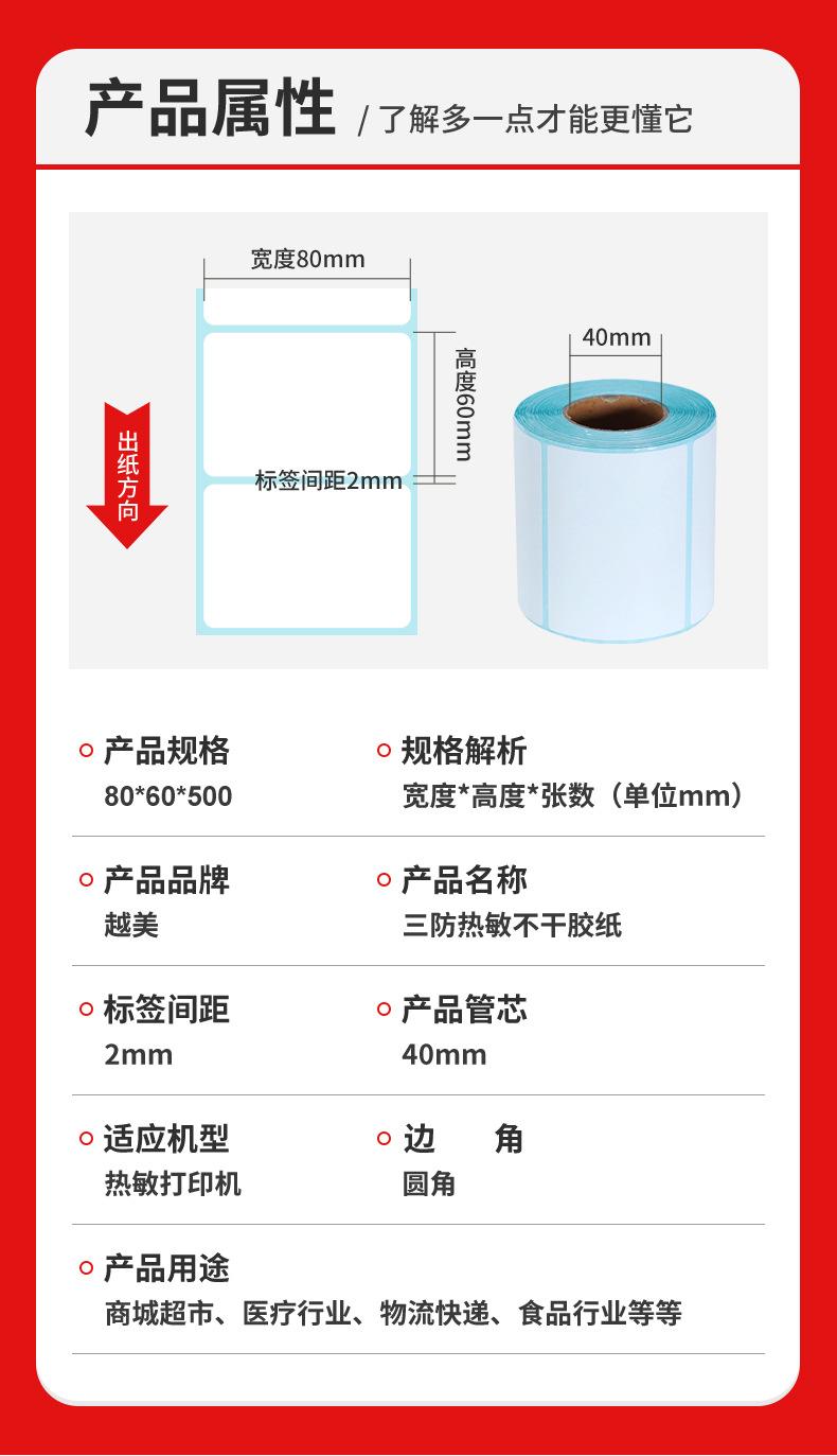 Papel de etiquetas térmicas 80x60, adhesivo para supermercado, logística transfronteriza, impresora, rollo de etiquetas adhesivas, papel térmico 80x60