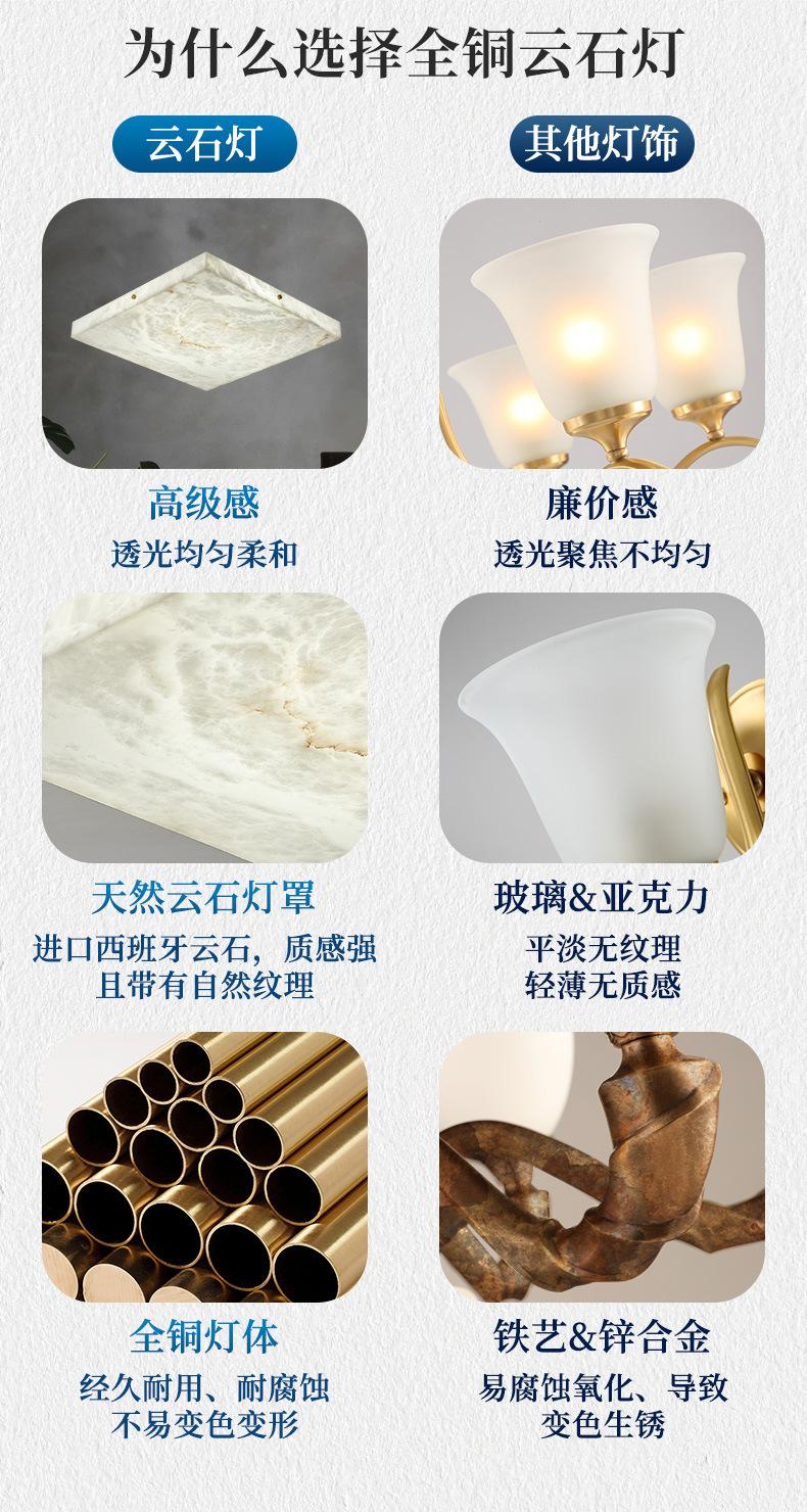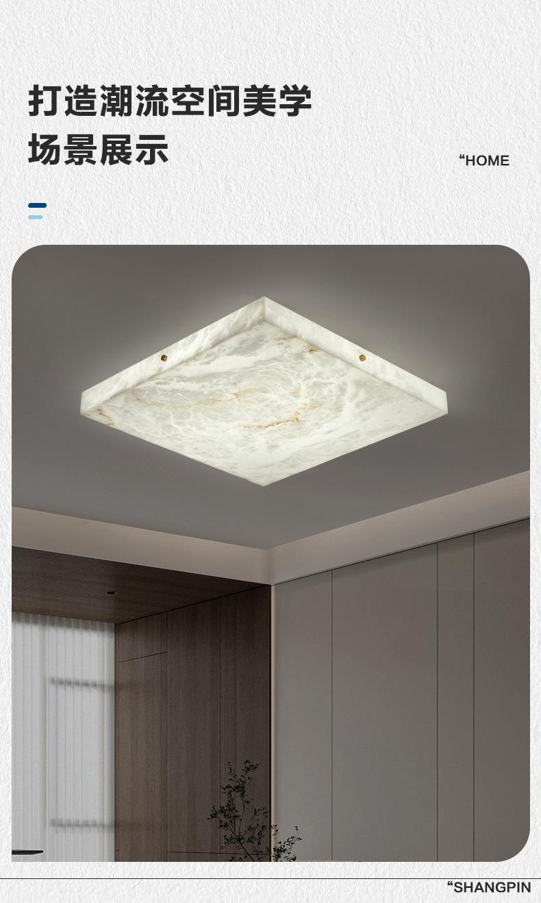 Lámpara de Techo Moderna Minimalista Transfronteriza Ultrafina Cuadrada Todo Cobre Lámpara de Mármol Lámpara Nórdica para Restaurante Dormitorio Estudio