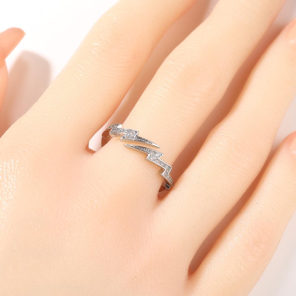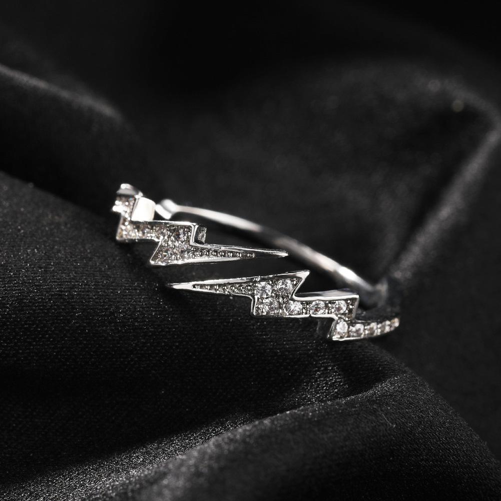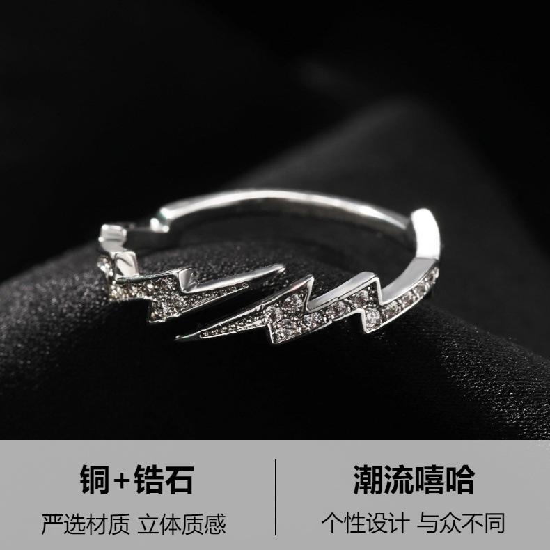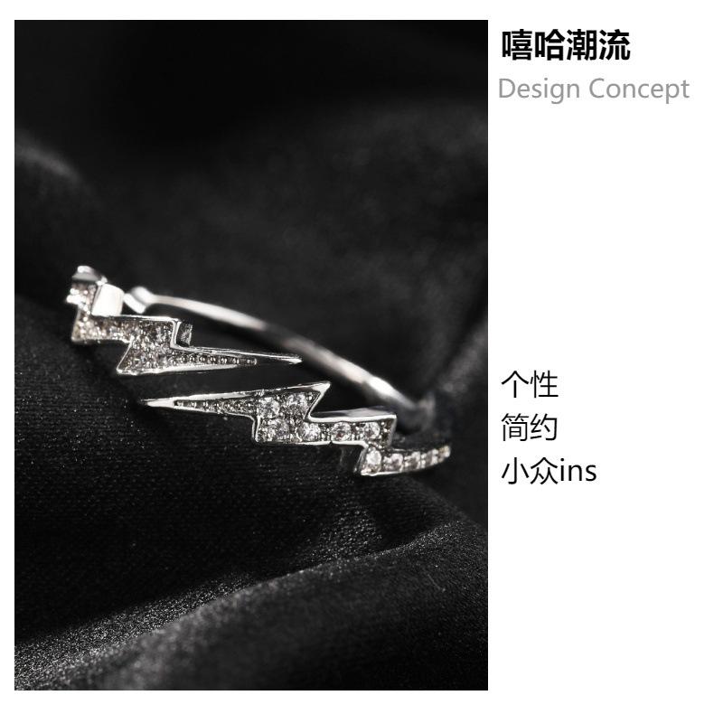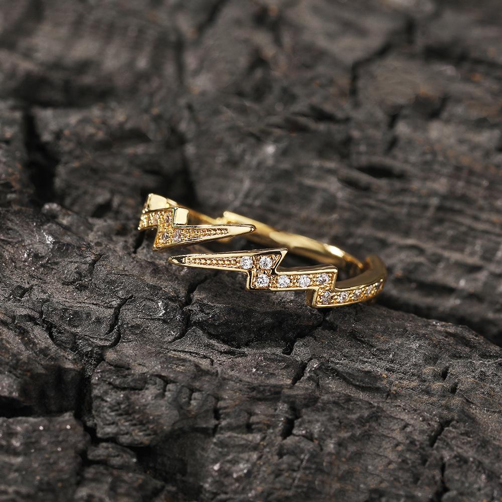 Hip-Hop Nuevo Cobre con Incrustaciones de Zircón Anillo de Rayo Cool Personalidad Creativa Diseño Nicho Anillo Abierto Accesorios de Mano de Moda