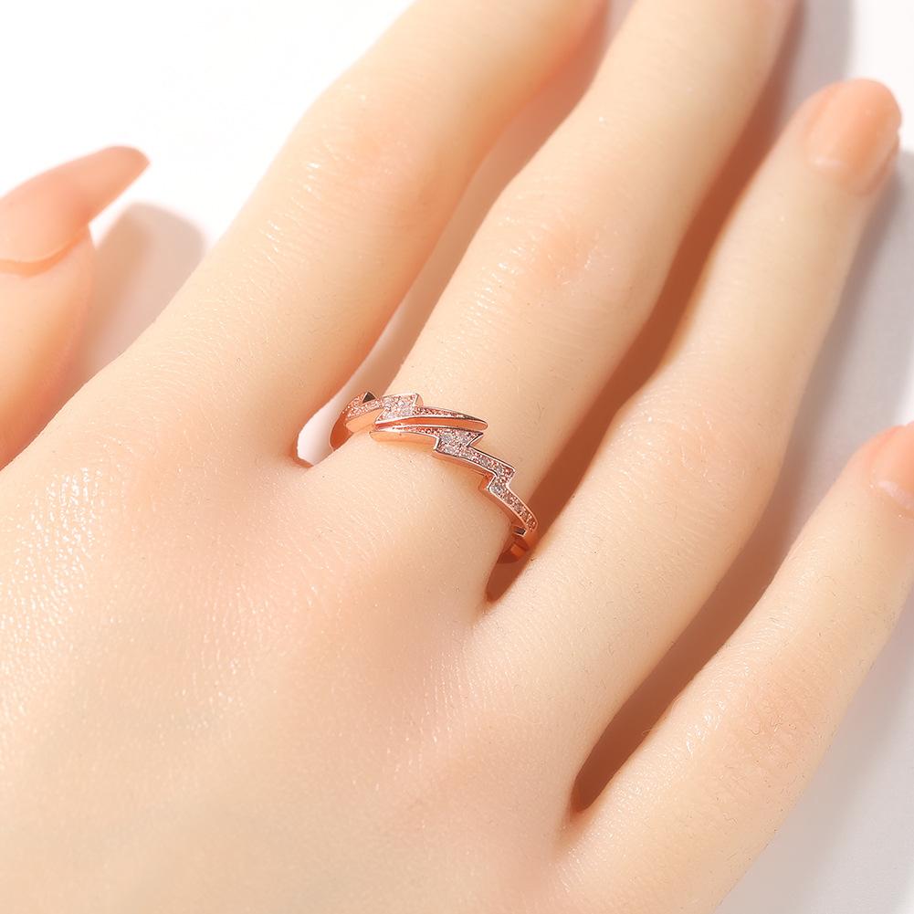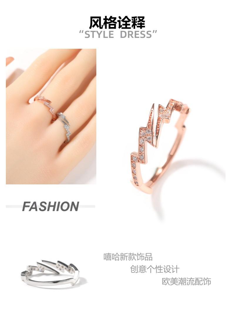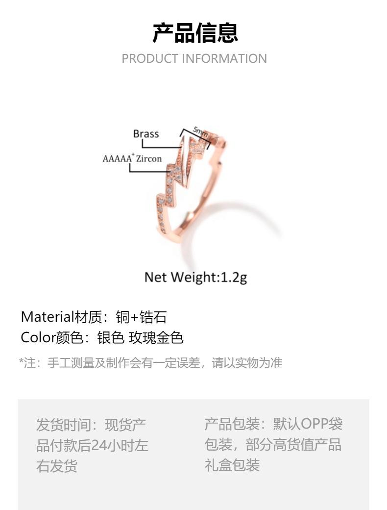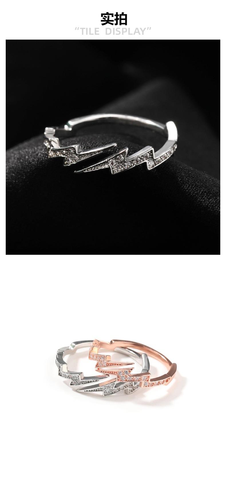 Hip-Hop Nuevo Cobre con Incrustaciones de Zircón Anillo de Rayo Cool Personalidad Creativa Diseño Nicho Anillo Abierto Accesorios de Mano de Moda