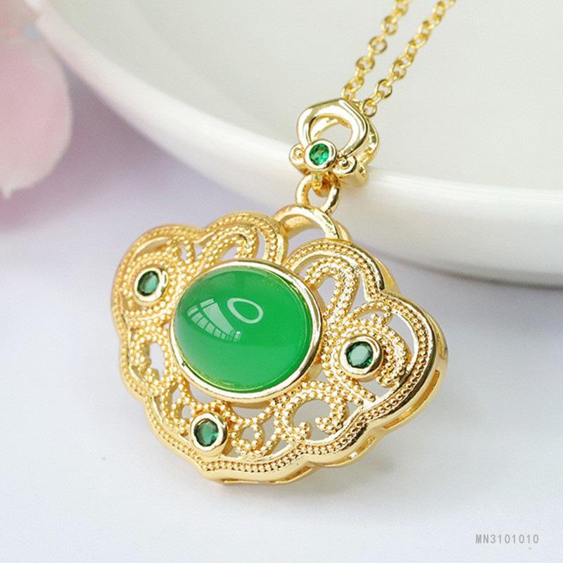 Colgante de ágata verde Yuyu, ruyi, polvo de calcedonia, collar, fábrica de viento del palacio, venta al por mayor, generación MN3101010