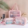 Neceser de viaje transparente para cosméticos, bolsa de baño de PVC de gran capacidad, bolsa de almacenamiento portátil esmerilada, conjunto de tres piezas para mujer