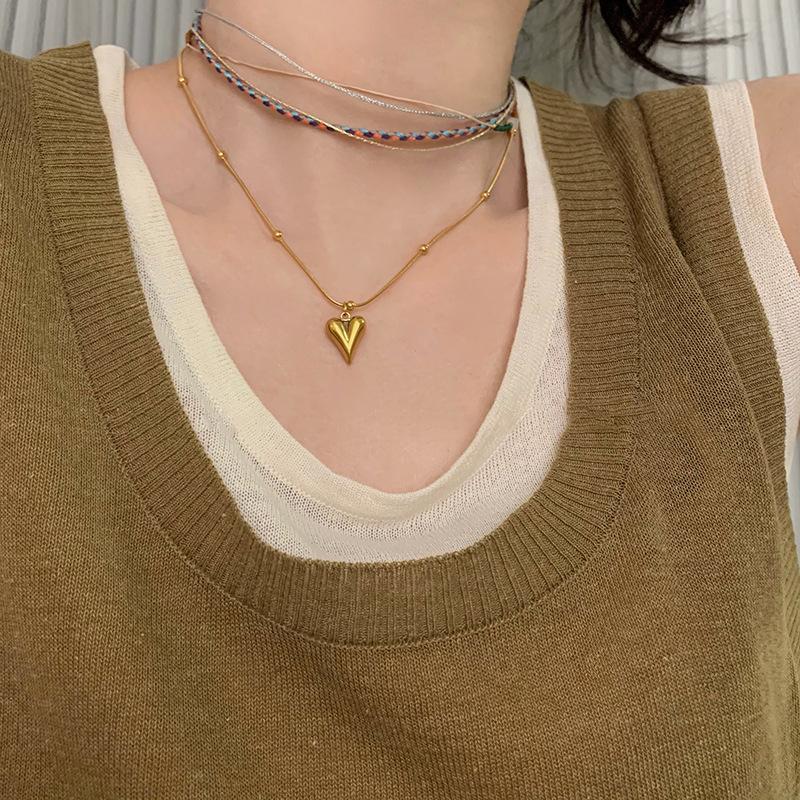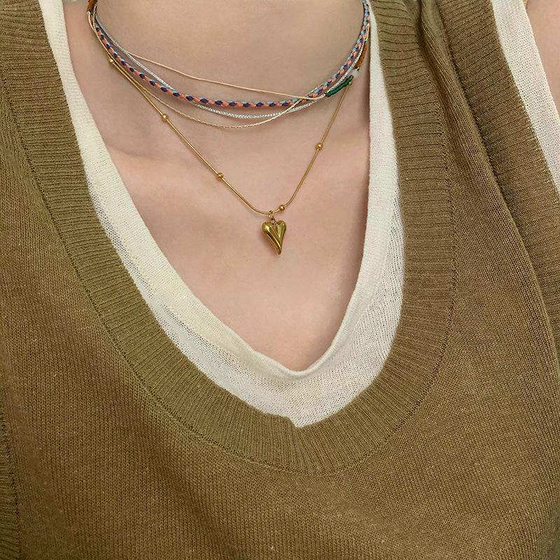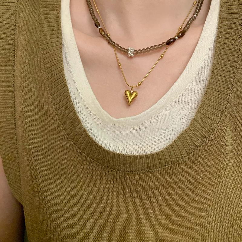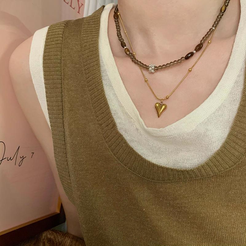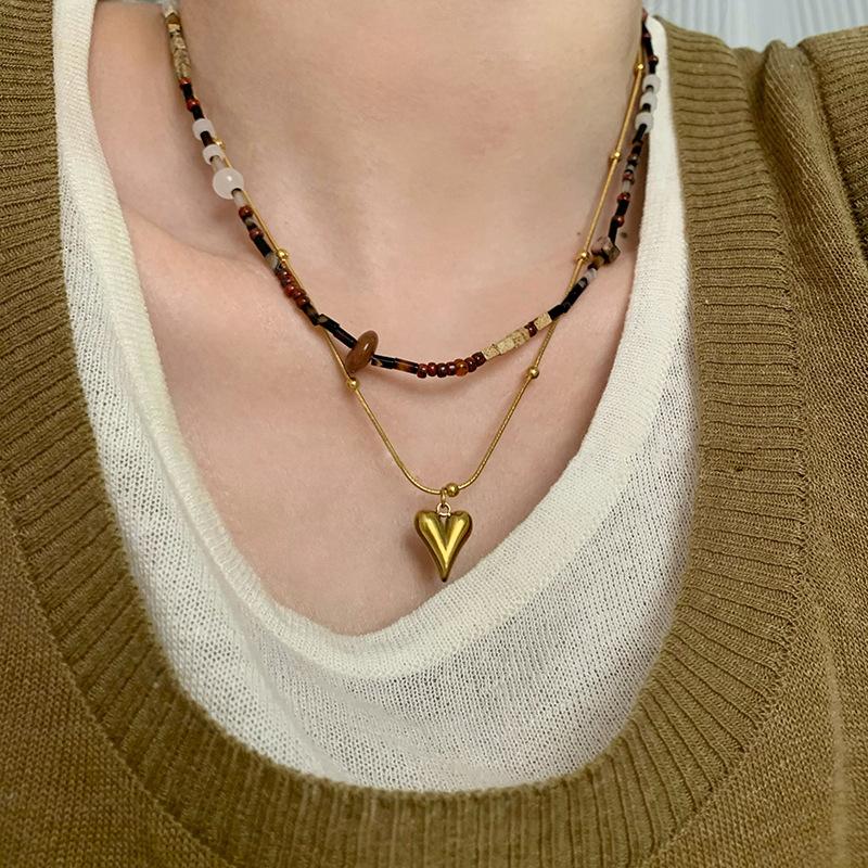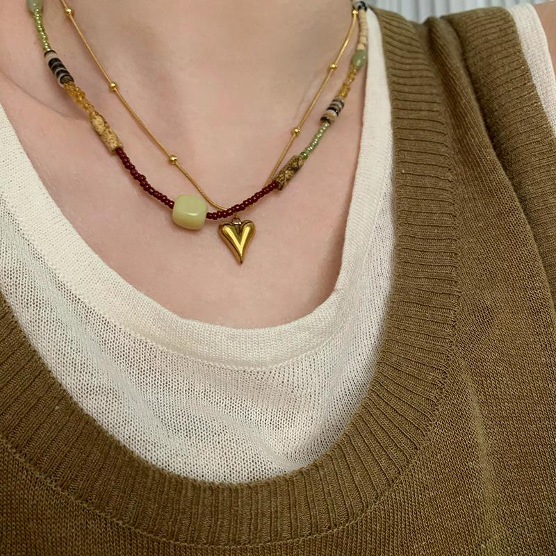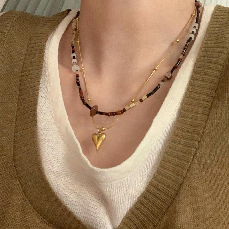 Colección de collares de cuentas vintage, collar con colgante de amor, elegante cadena de clavícula apilada para mujer, nuevo estilo 2023