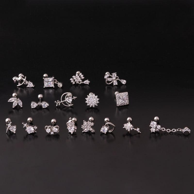 | nombre del producto | Acero inoxidable 20G varilla delgada circonita uña para hueso de la oreja bola de rosca uña para oreja moda popular europea y americana aretes piercing de comercio exterior |