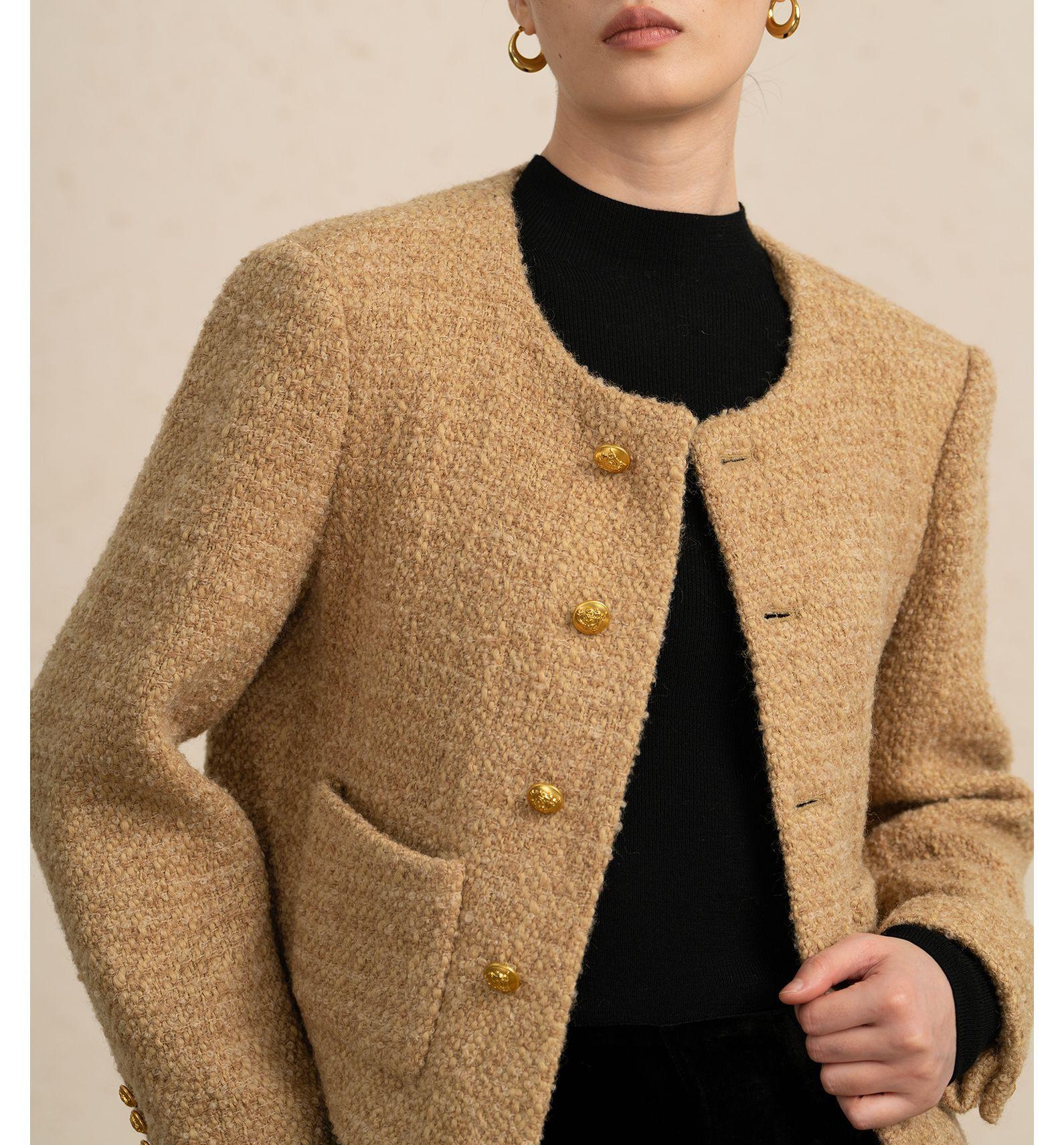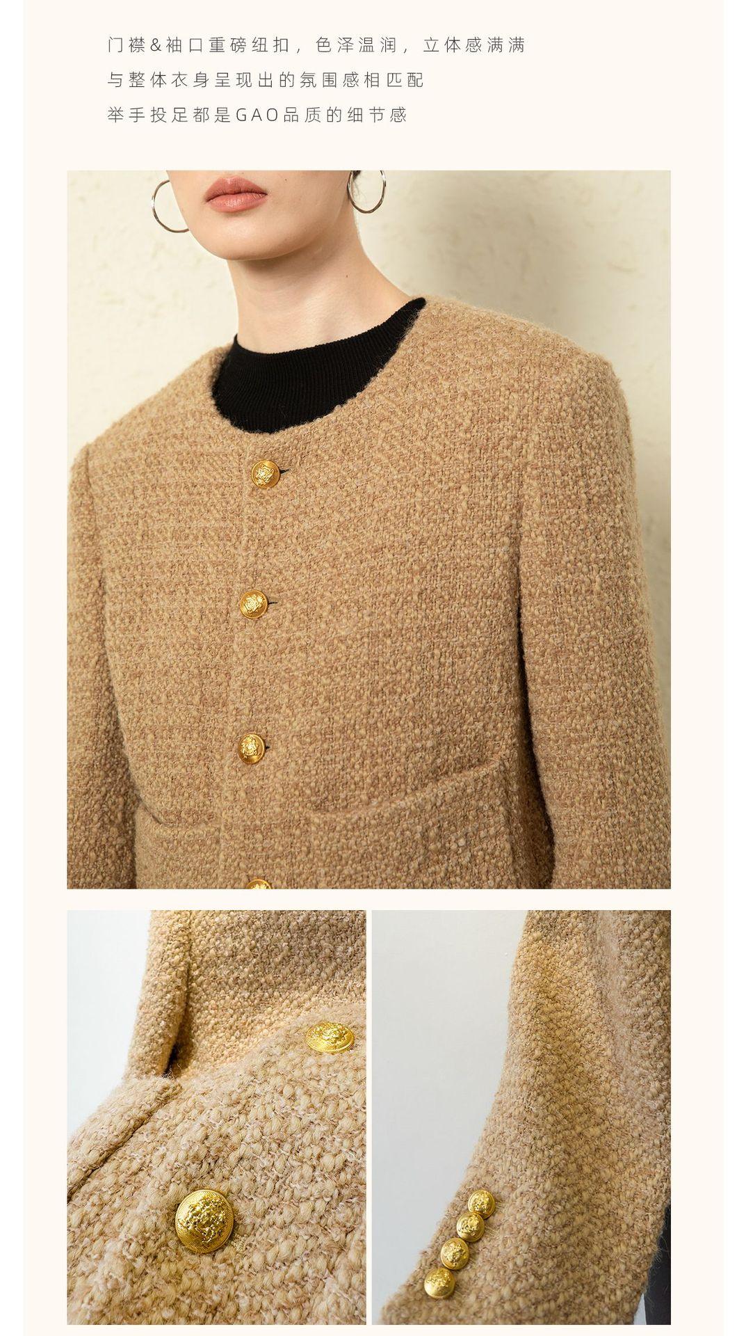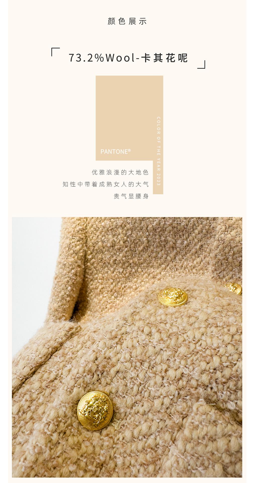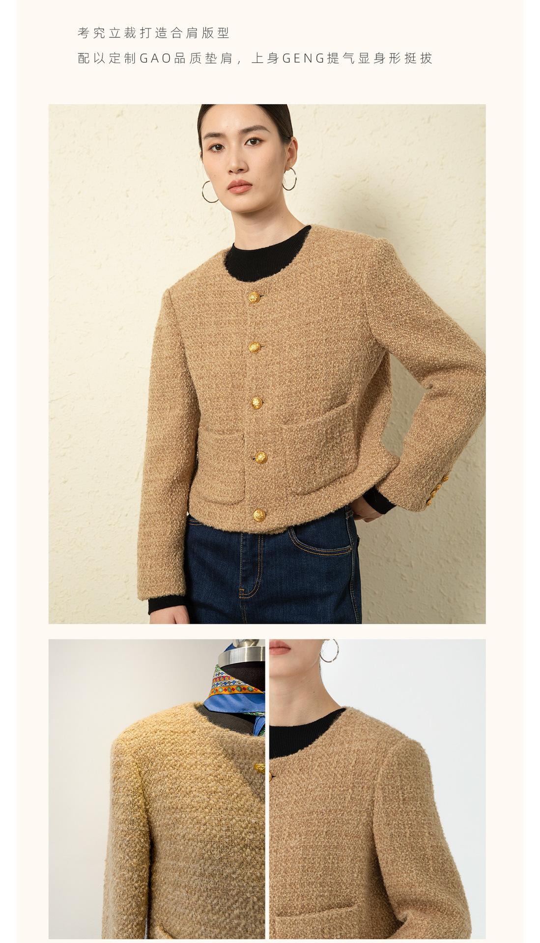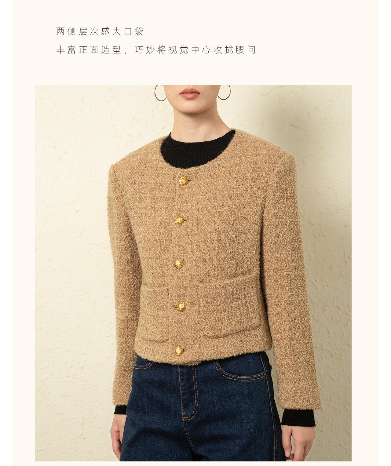Chaqueta de Tweed de Lana Estilo Francés de Otoño Temprano de Cuello Redondo Corto Estilo Holgado Simple de Un Botón para Mujer