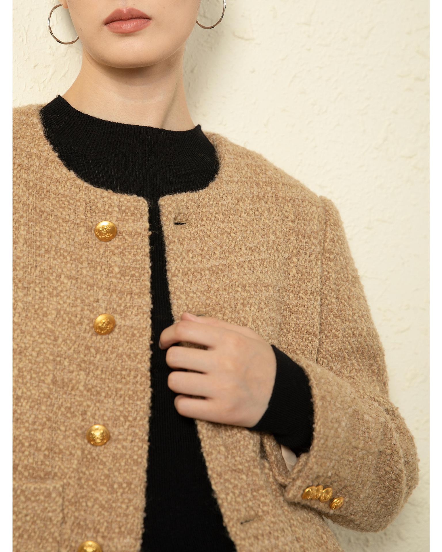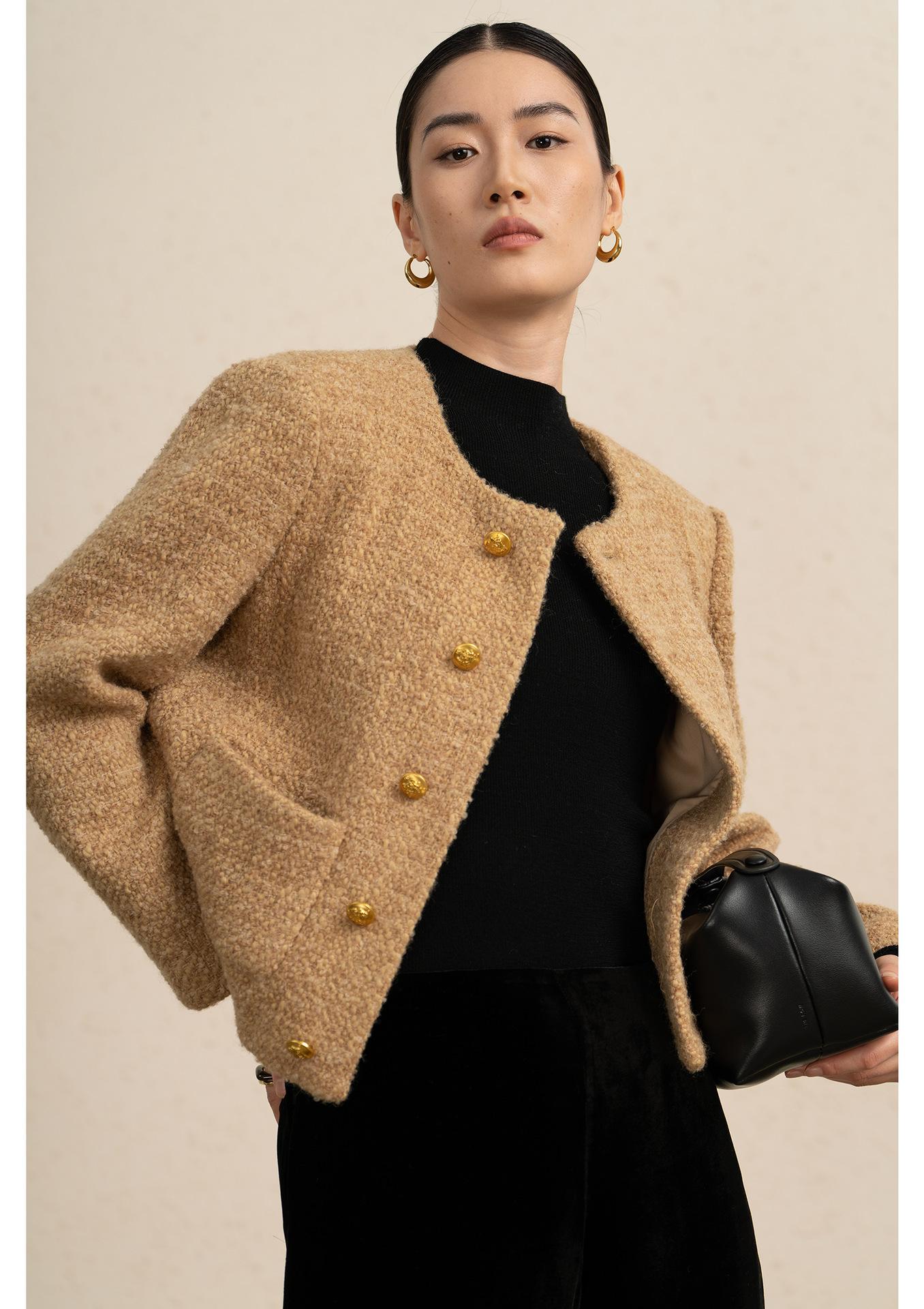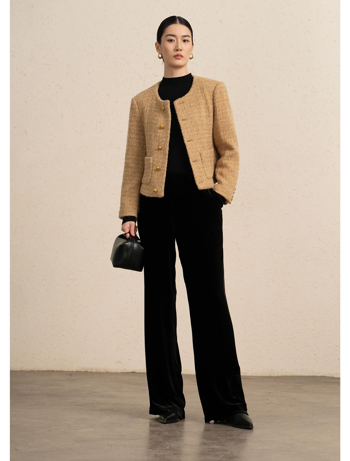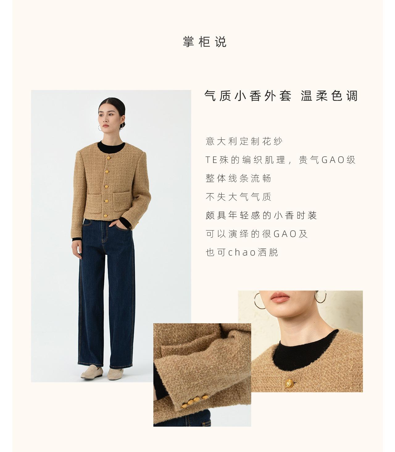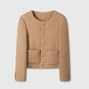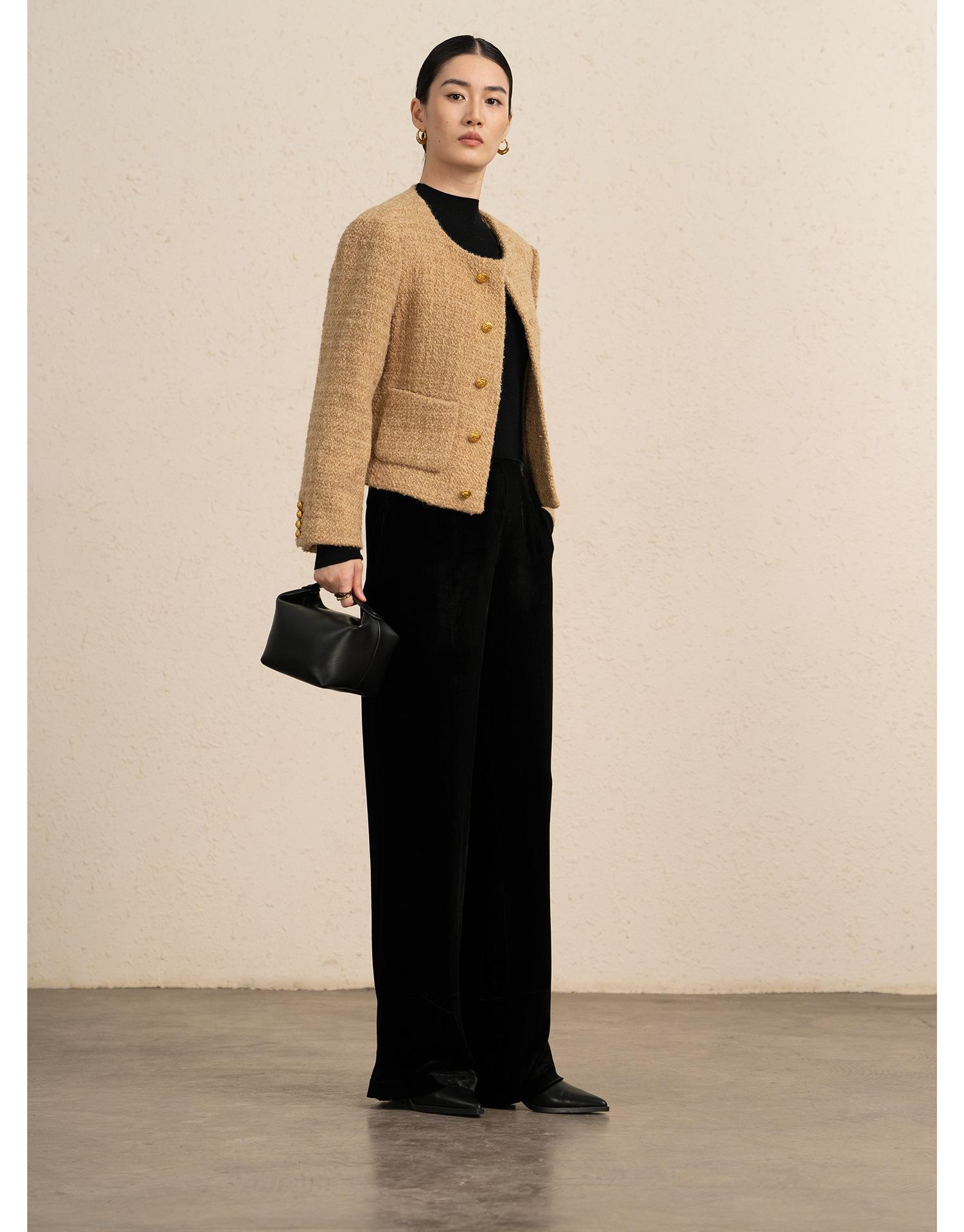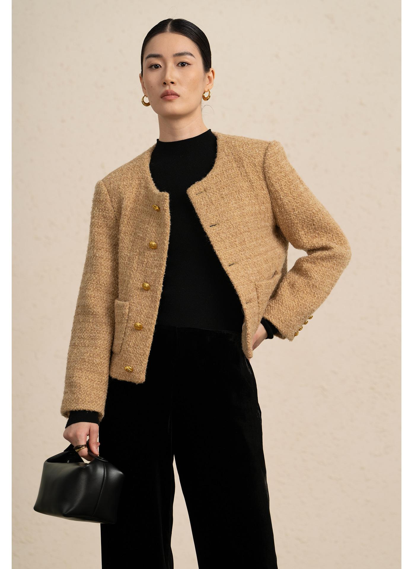Chaqueta de Tweed de Lana Estilo Francés de Otoño Temprano de Cuello Redondo Corto Estilo Holgado Simple de Un Botón para Mujer