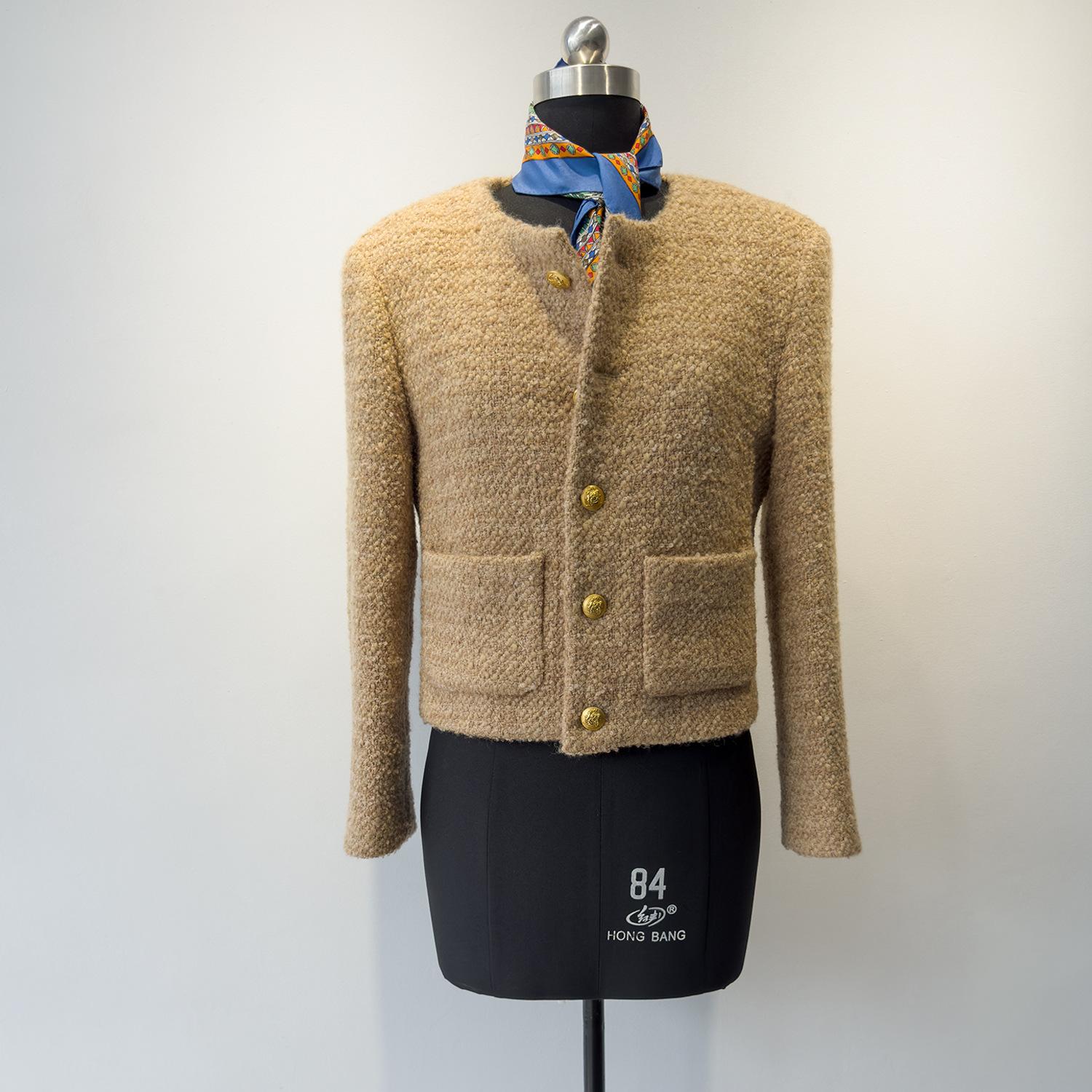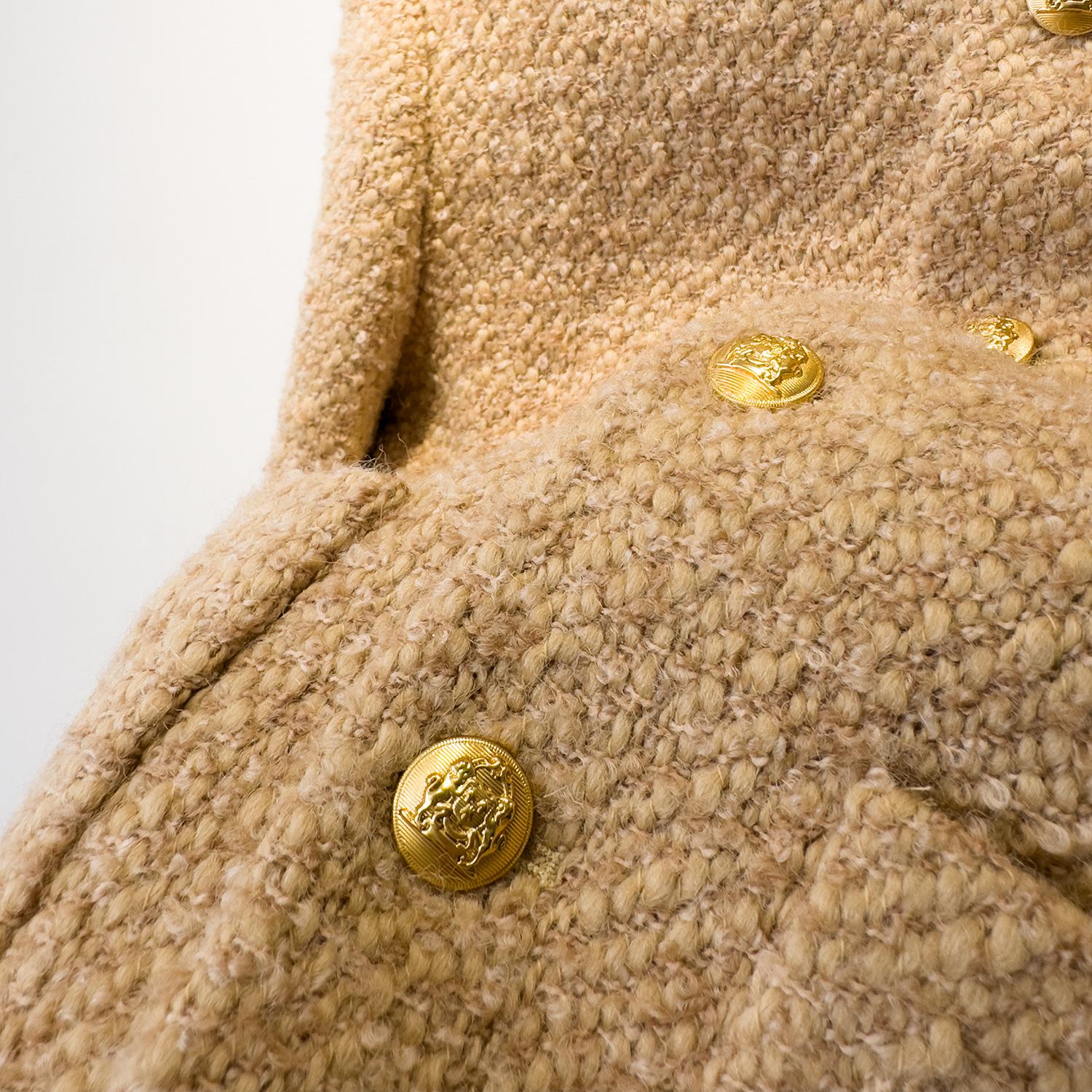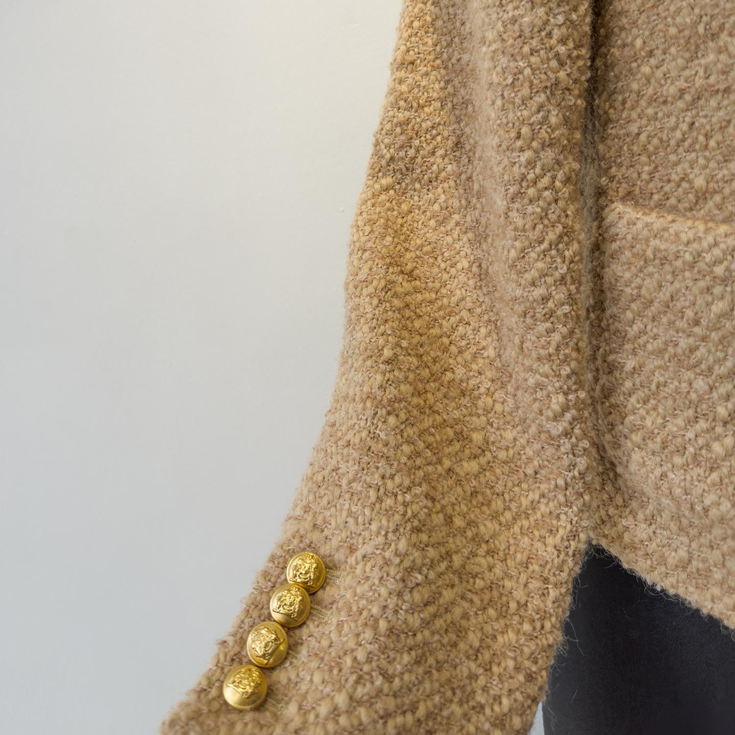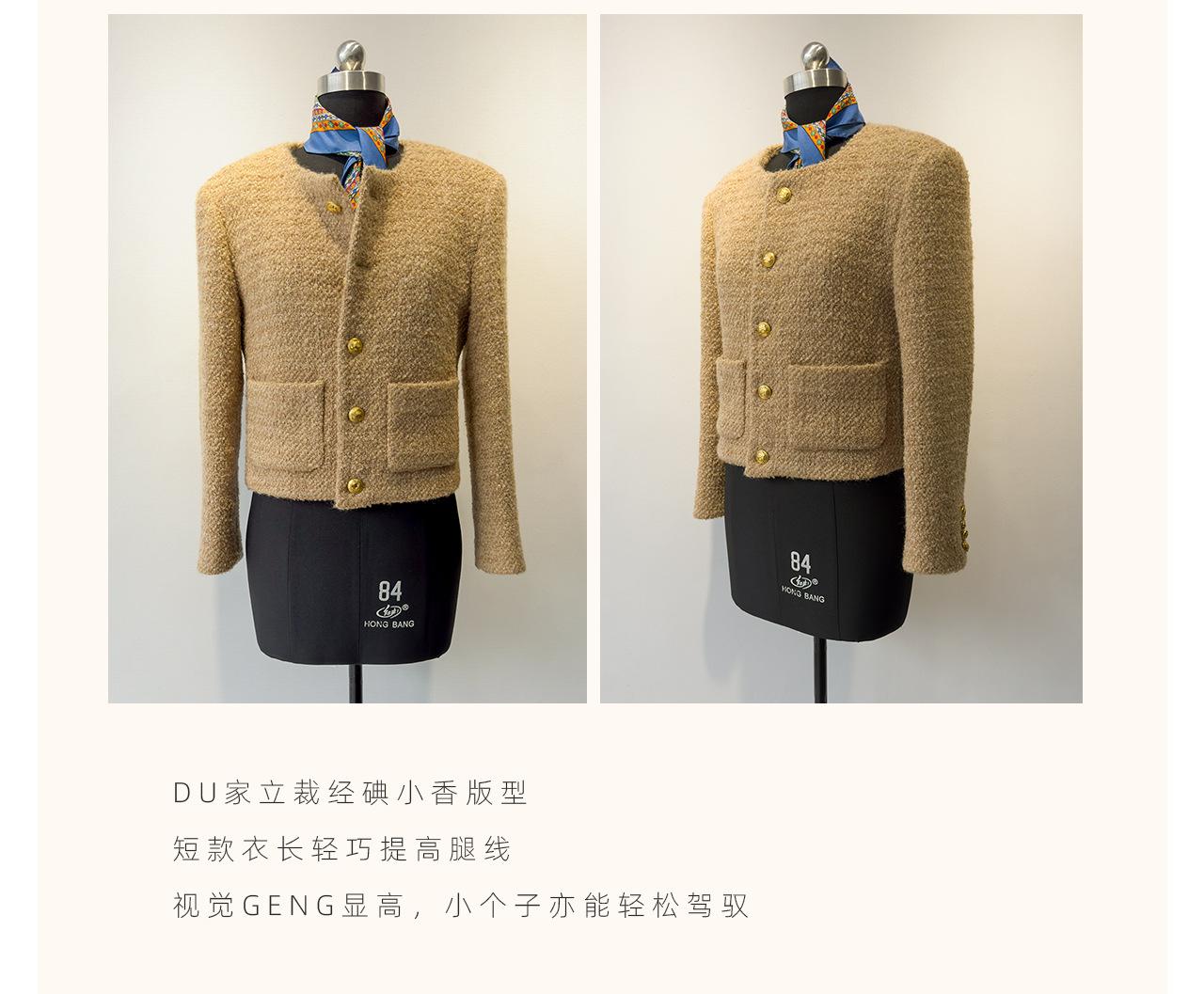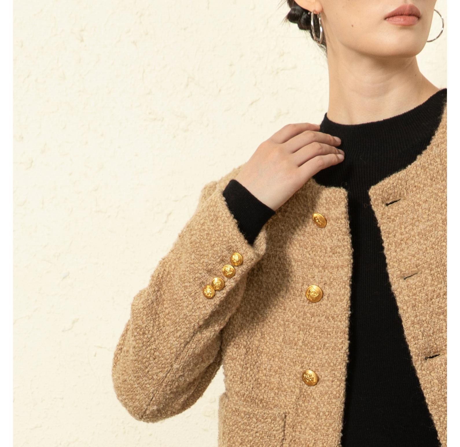 Chaqueta de Tweed de Lana Estilo Francés de Otoño Temprano de Cuello Redondo Corto Estilo Holgado Simple de Un Botón para Mujer