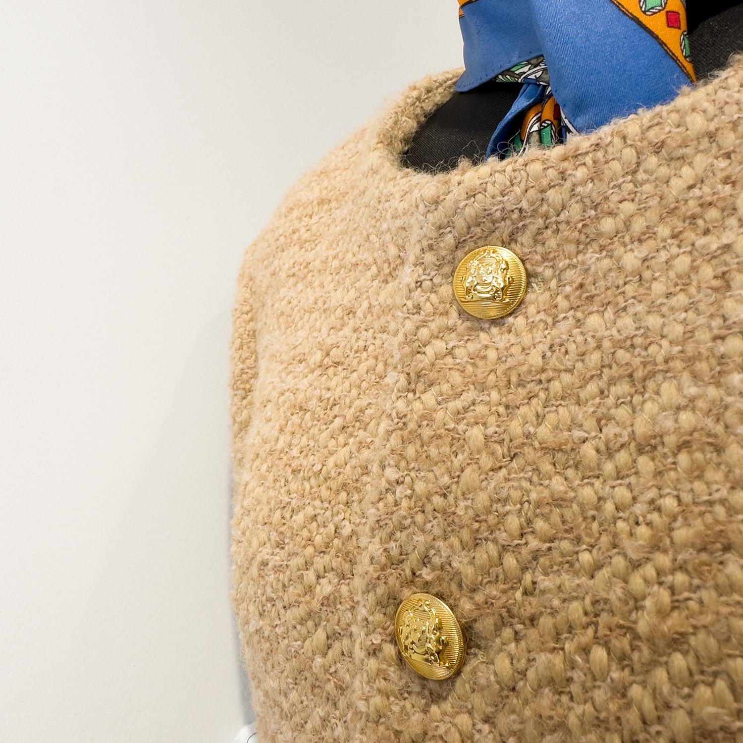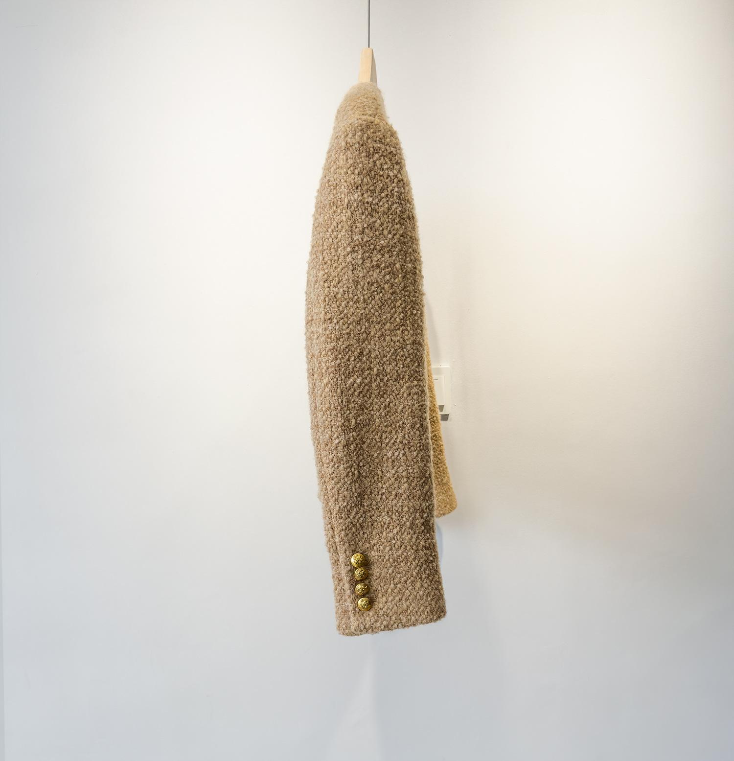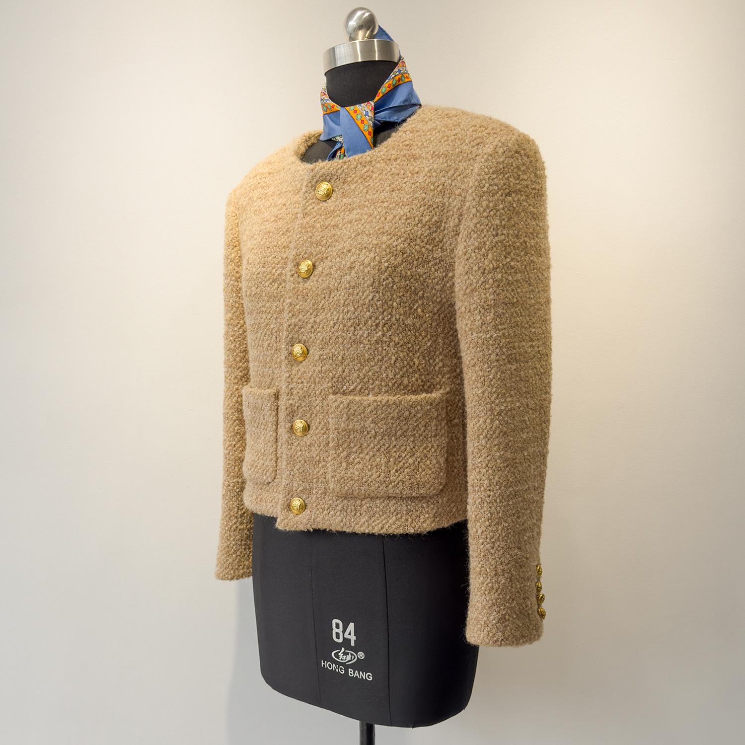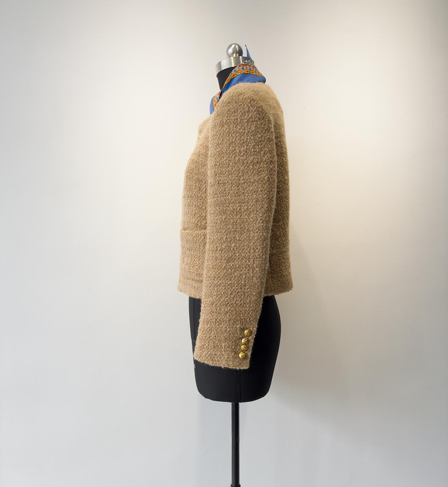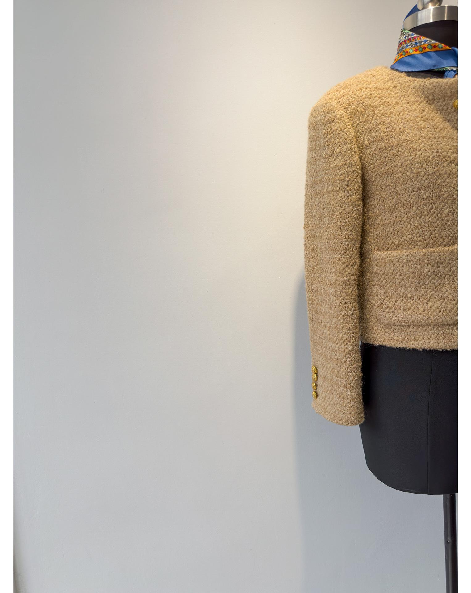 Chaqueta de Tweed de Lana Estilo Francés de Otoño Temprano de Cuello Redondo Corto Estilo Holgado Simple de Un Botón para Mujer