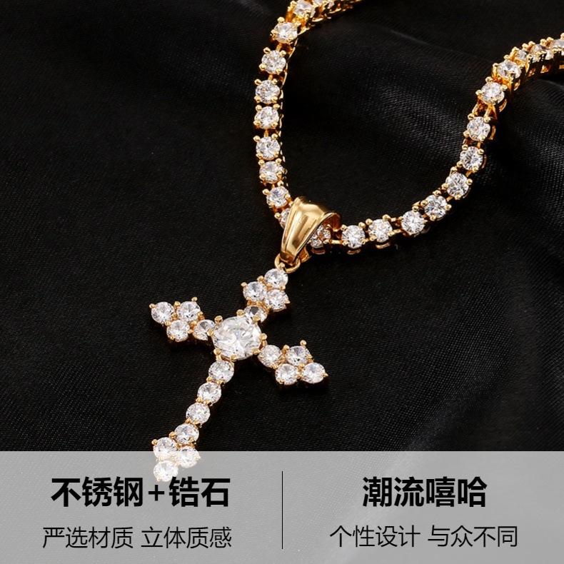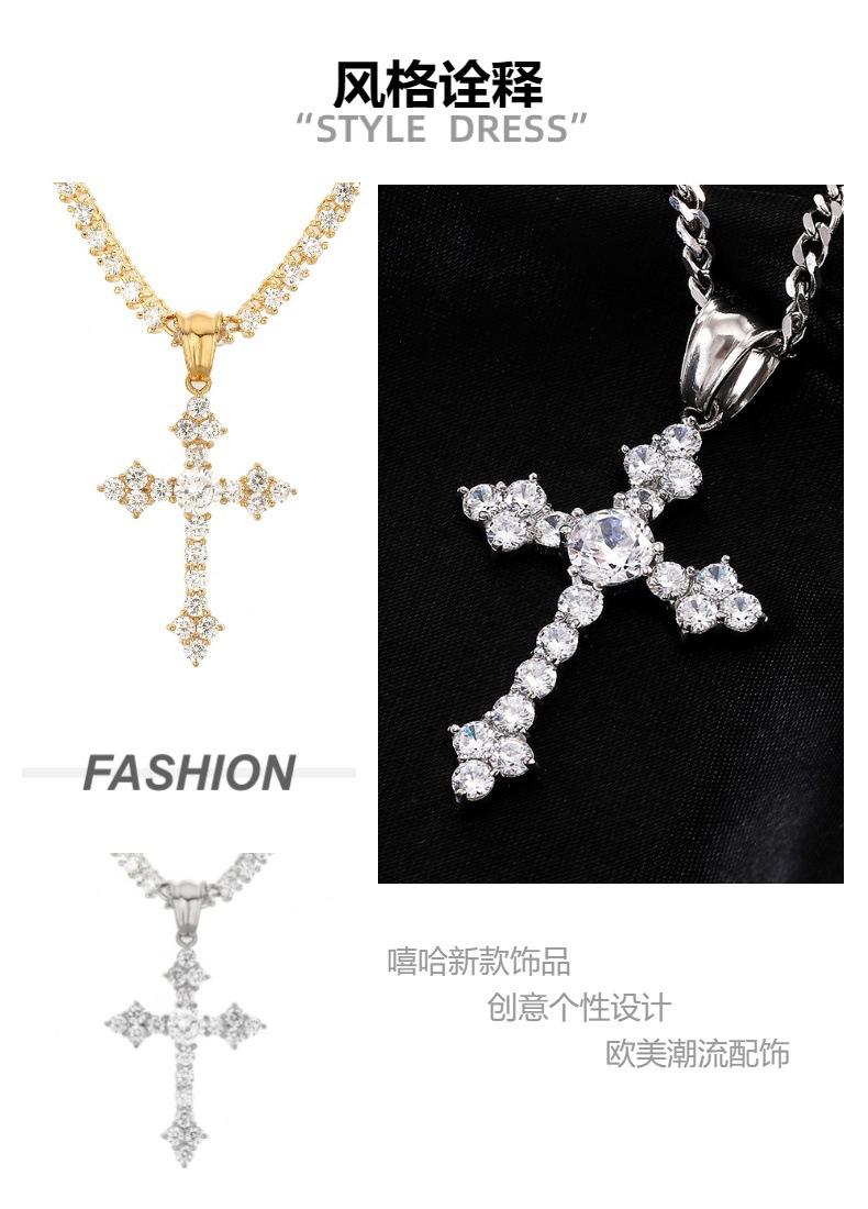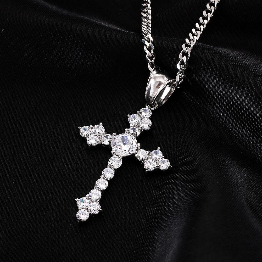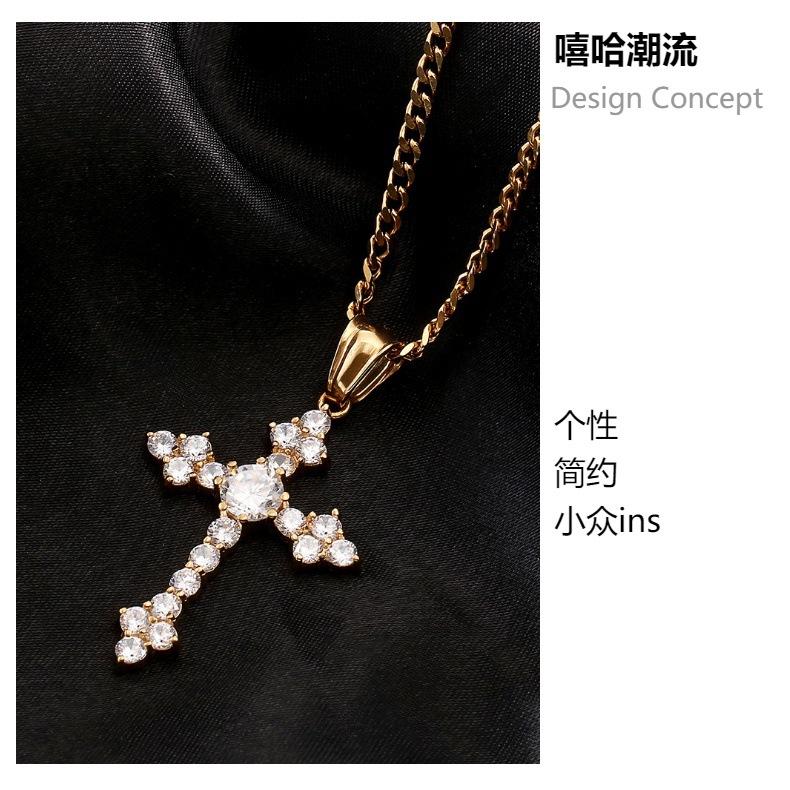 Moda Europea y Americana Collar de Cruz de Acero Inoxidable Retro Nicho Colgante de Zircón Aaa para Hombre Estilo Hip-Hop