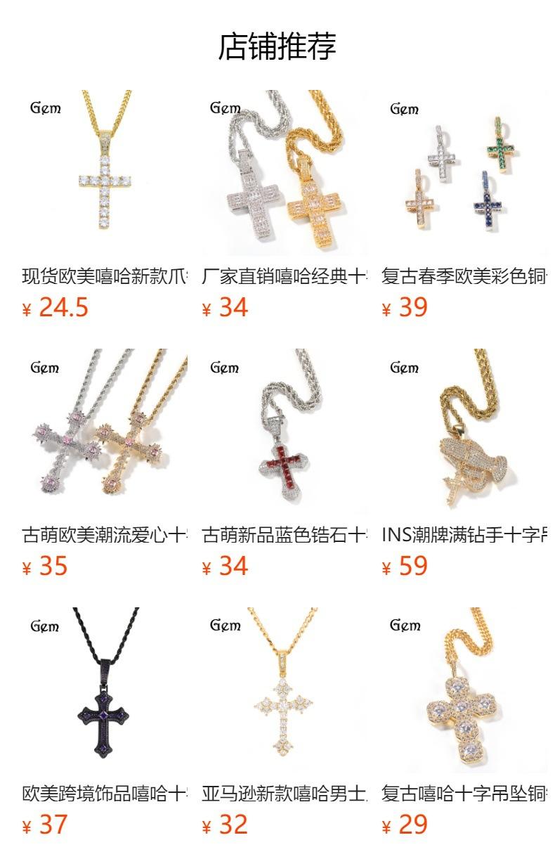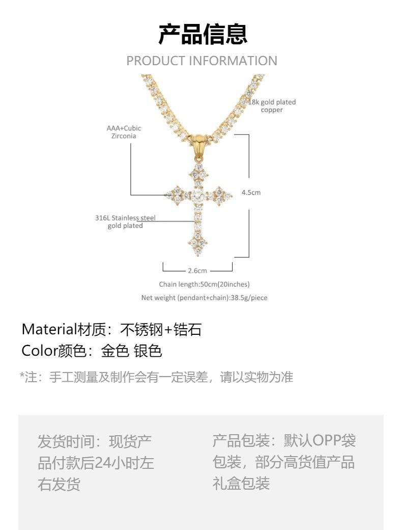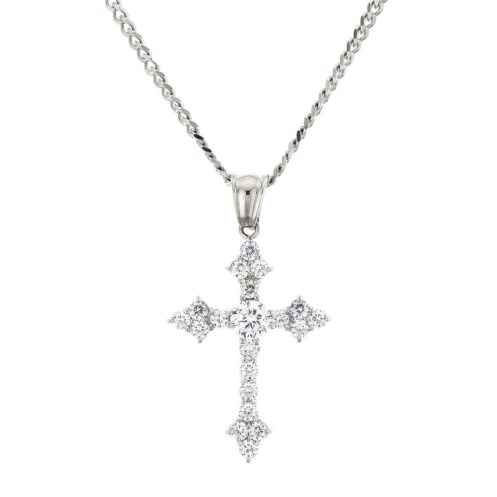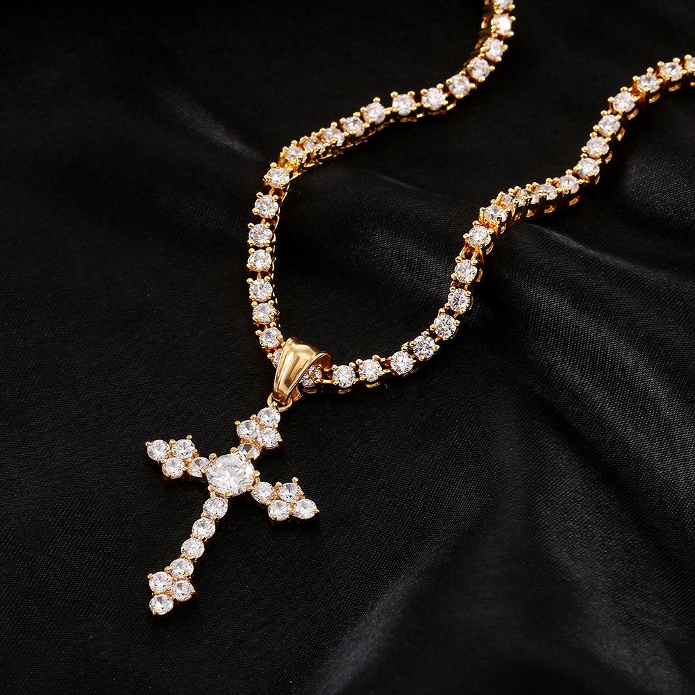 Moda Europea y Americana Collar de Cruz de Acero Inoxidable Retro Nicho Colgante de Zircón Aaa para Hombre Estilo Hip-Hop