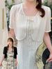 Abrigo de Manga Corta de Talla Grande con Chal, Cárdigan Tejido Fino de Seda de Hielo, Blusa de Protección Solar de Manga Media 62663