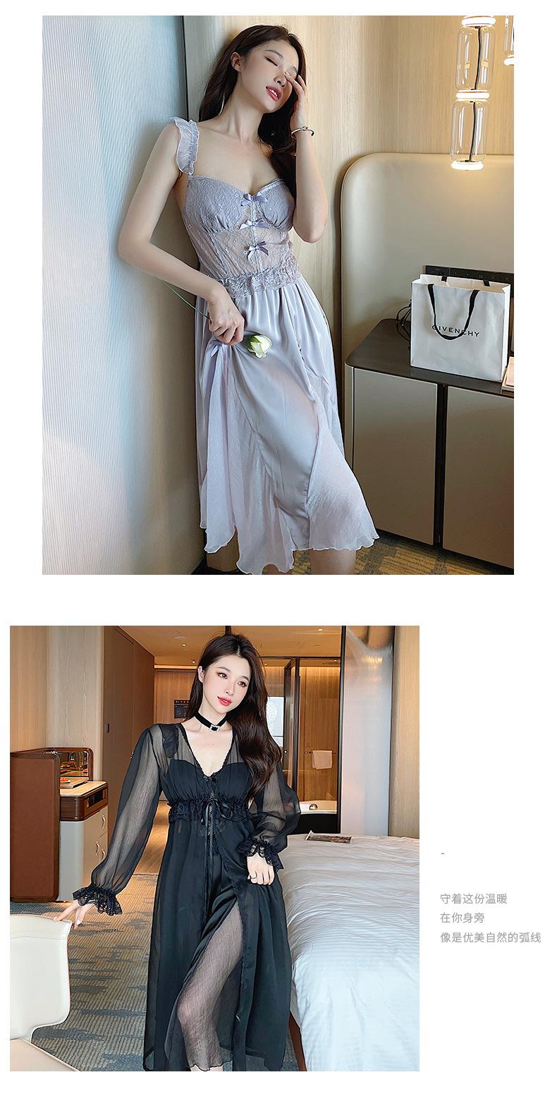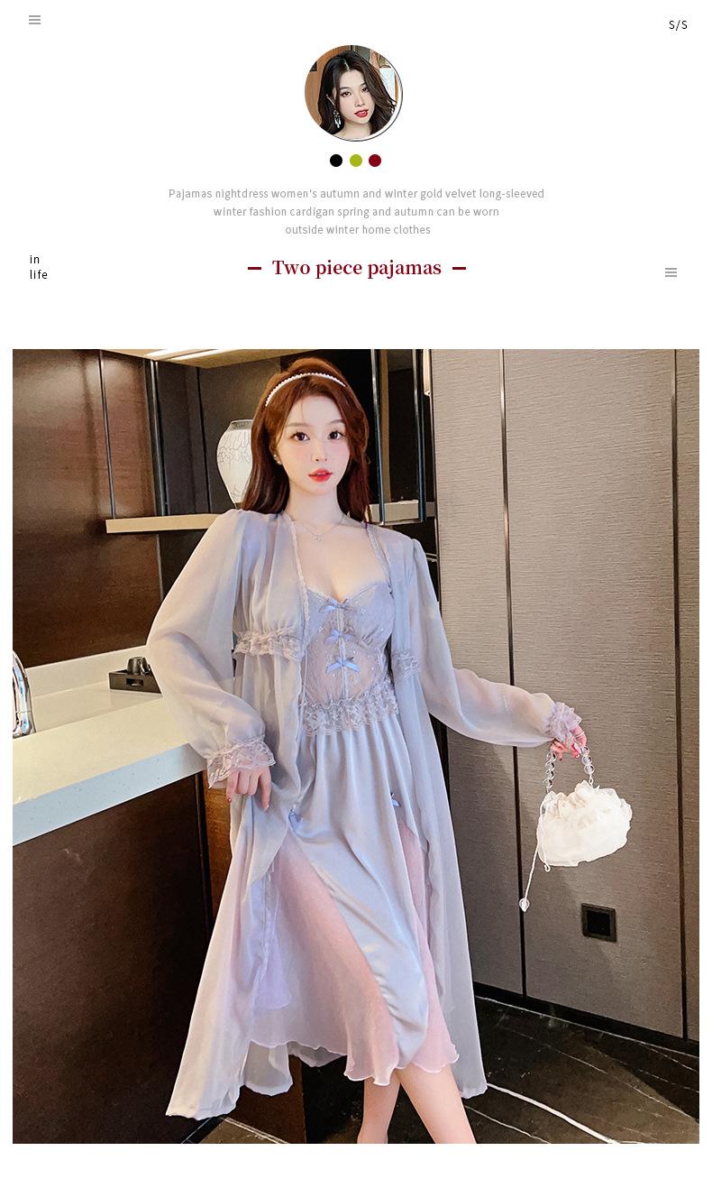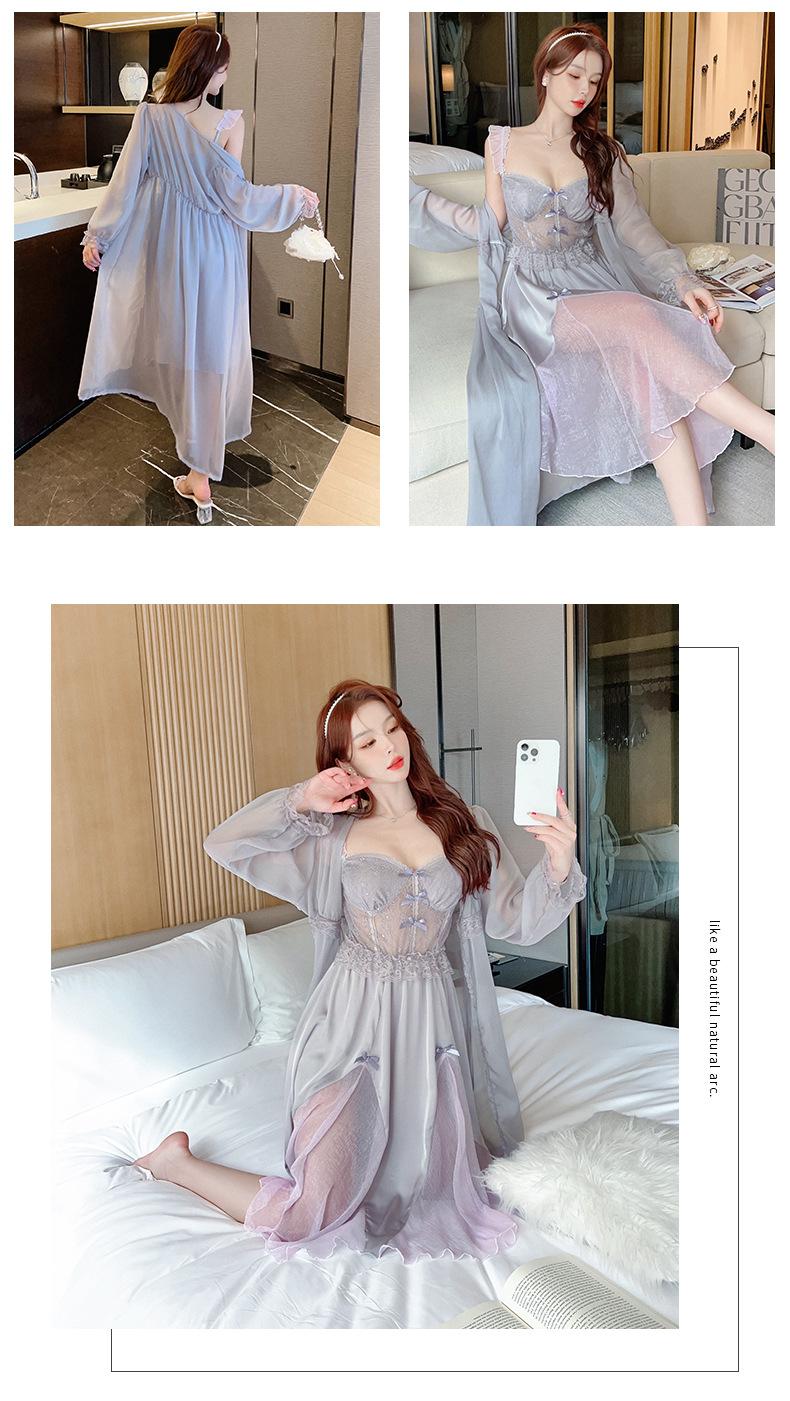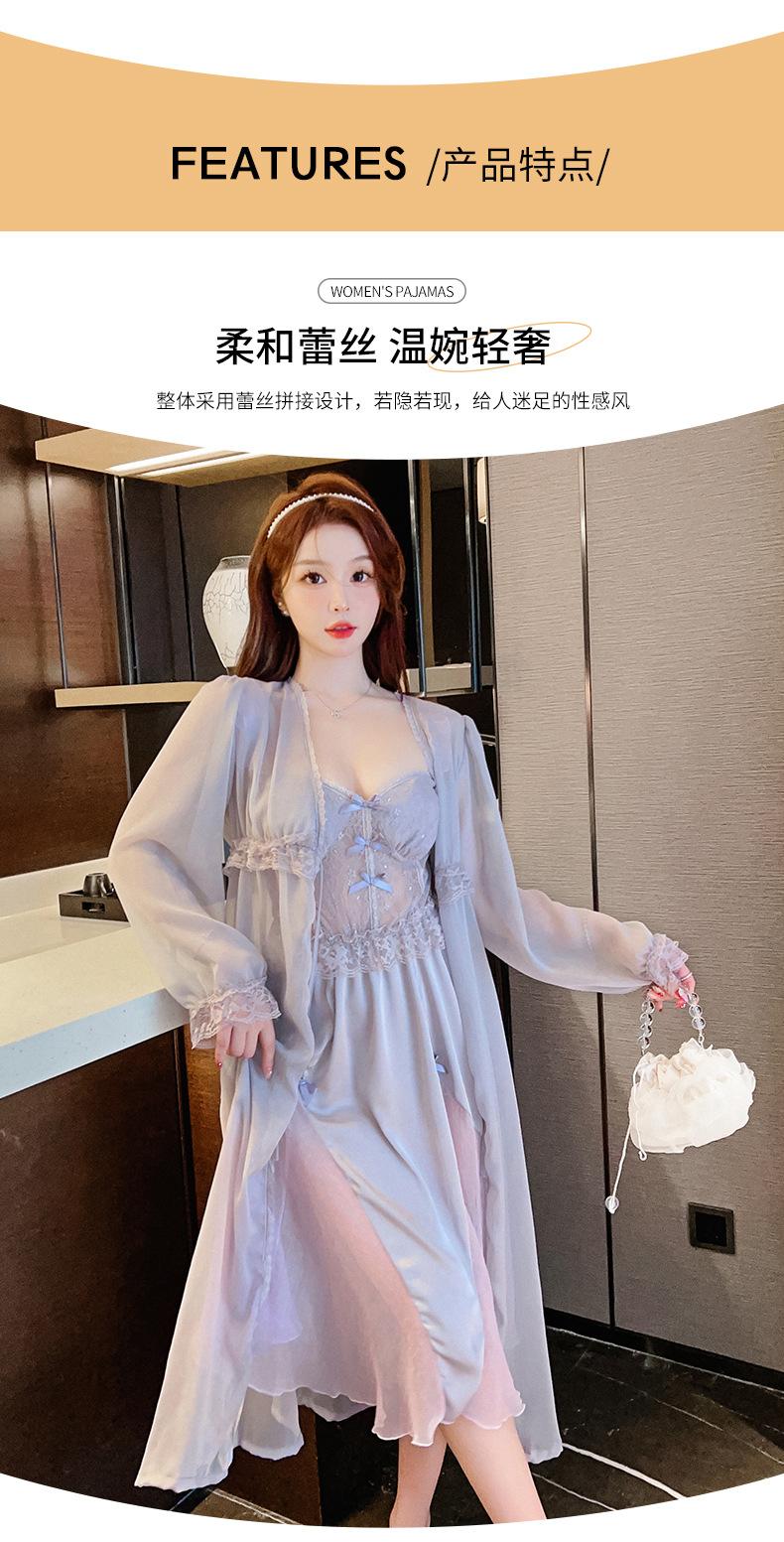 Pijamas de Mujer Ropa Casual para el Hogar Elegante y Elegante Vestido Largo de Dos Piezas de Satén y Gasa con Escote Bajo Camisón